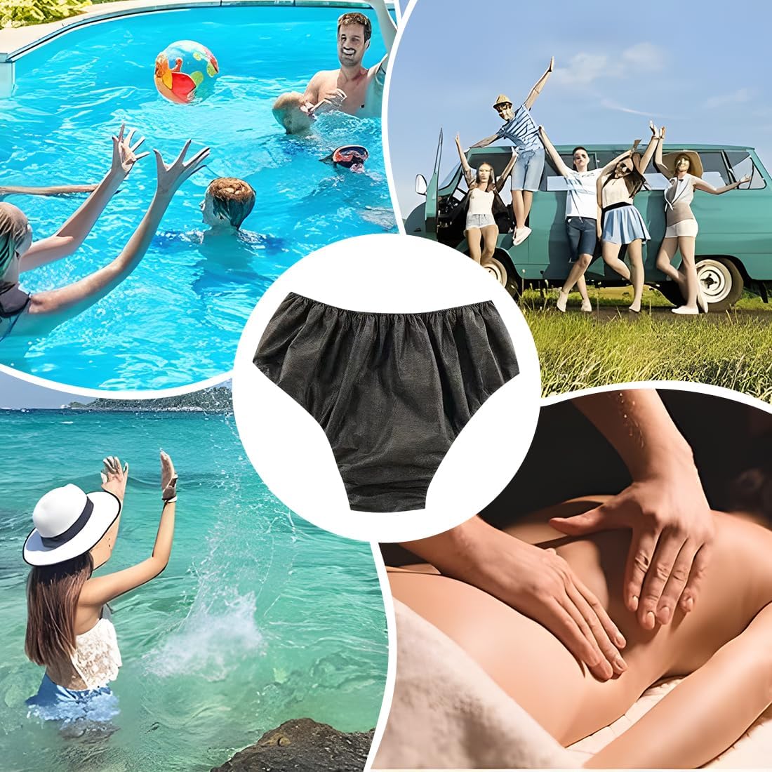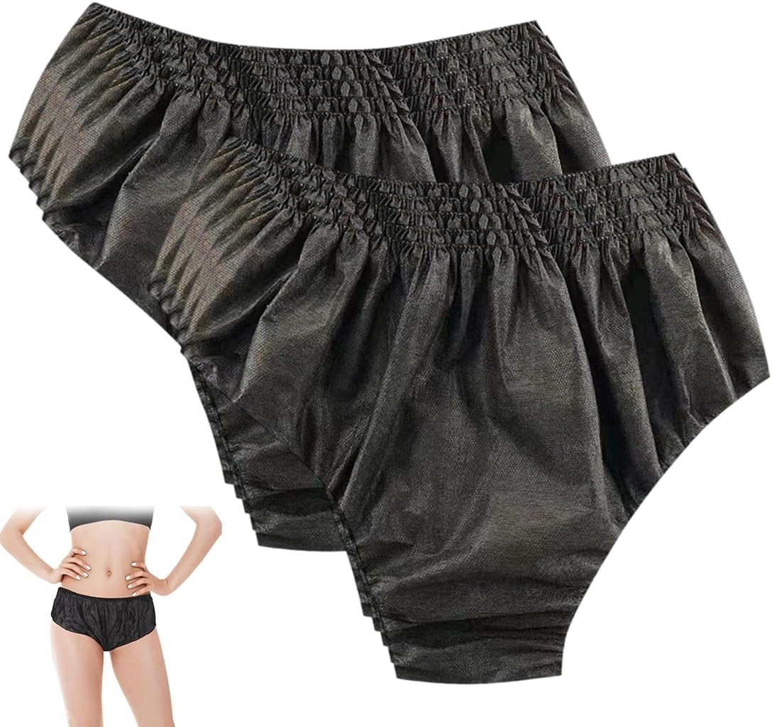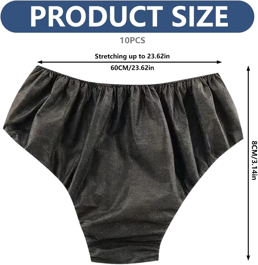 10 Pieces Unisex Disposable Non-Woven Fabric Underwear for Travel, Camping, Spa (Black)