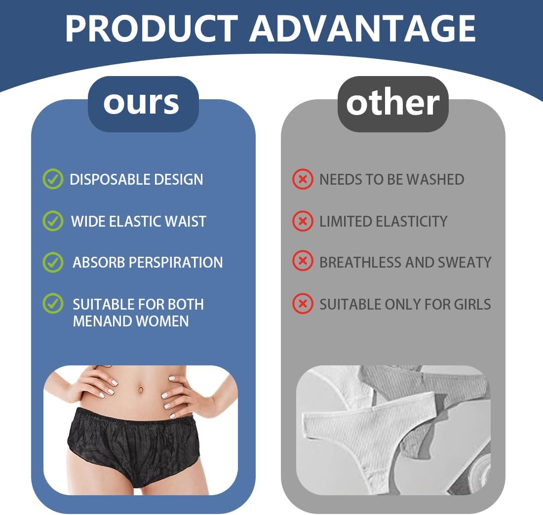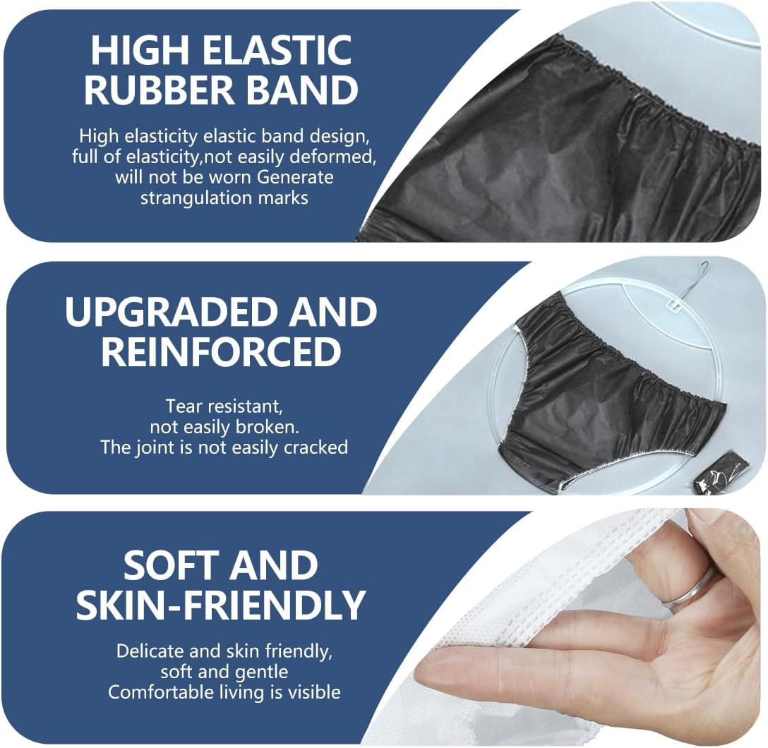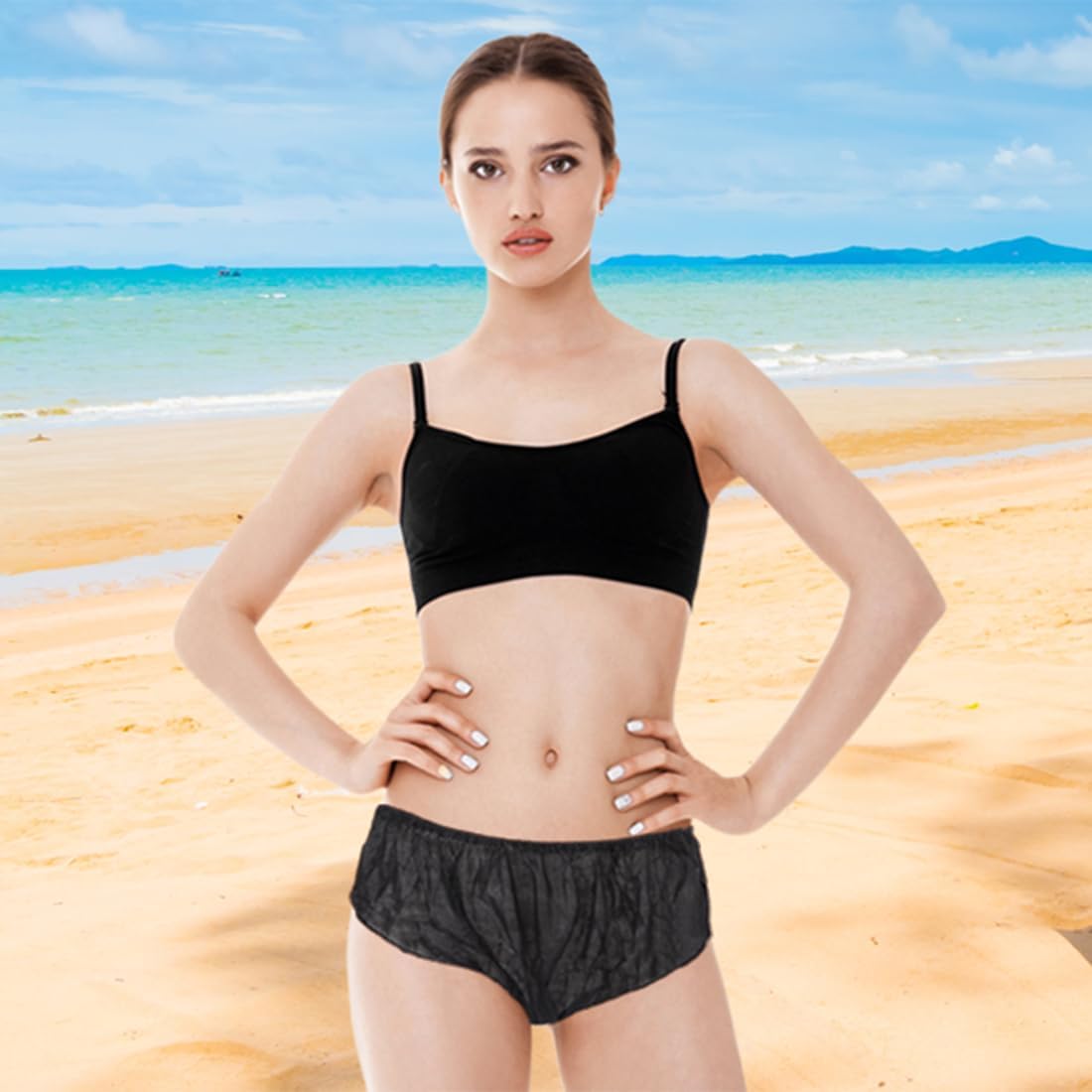 10 Pieces Unisex Disposable Non-Woven Fabric Underwear for Travel, Camping, Spa (Black)