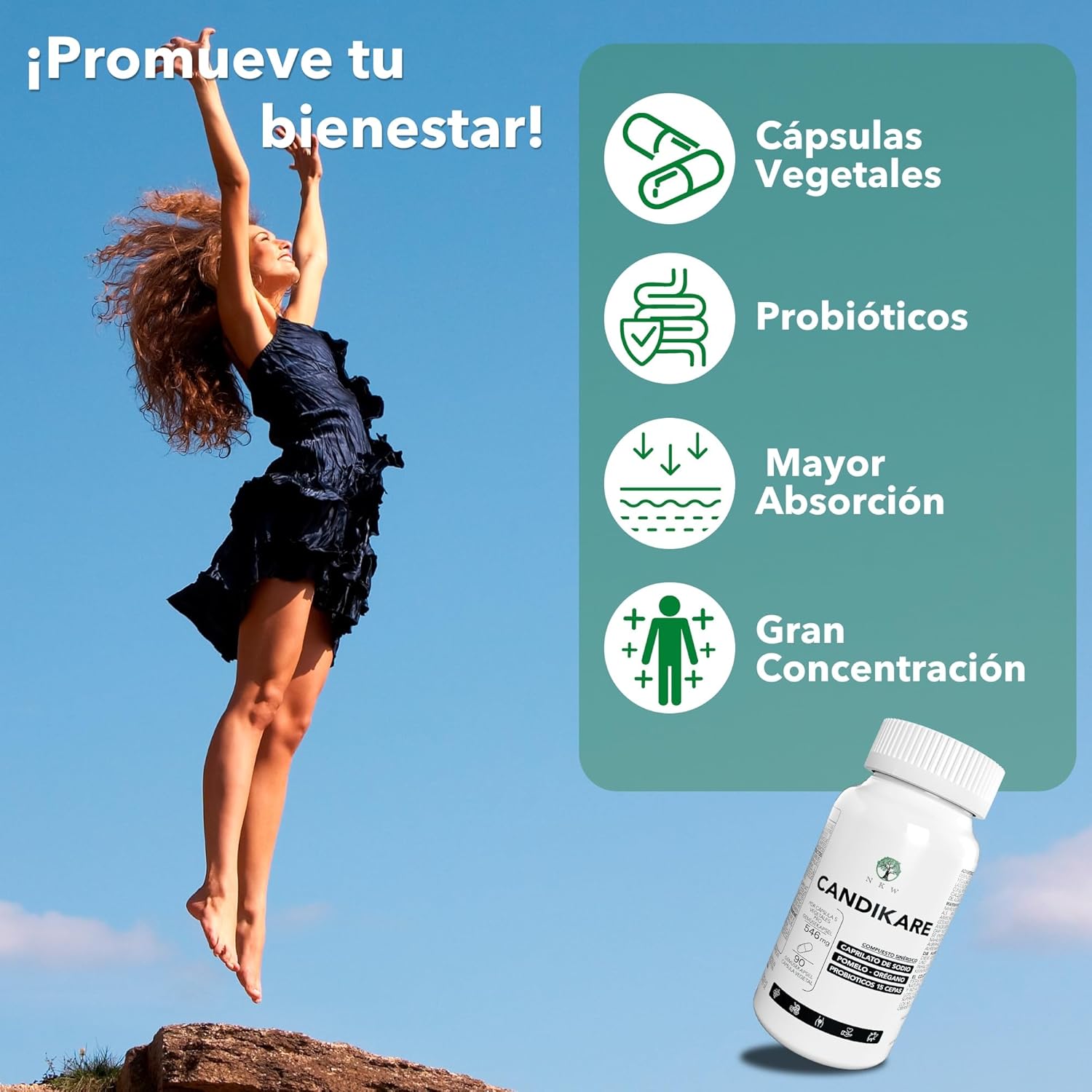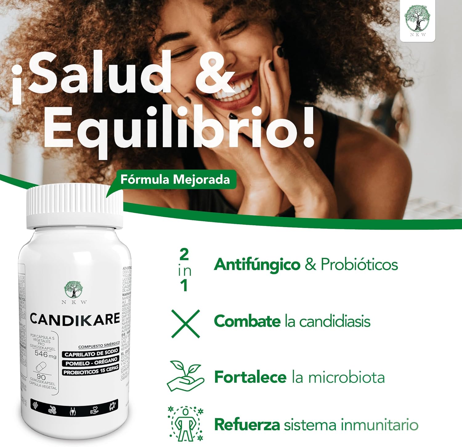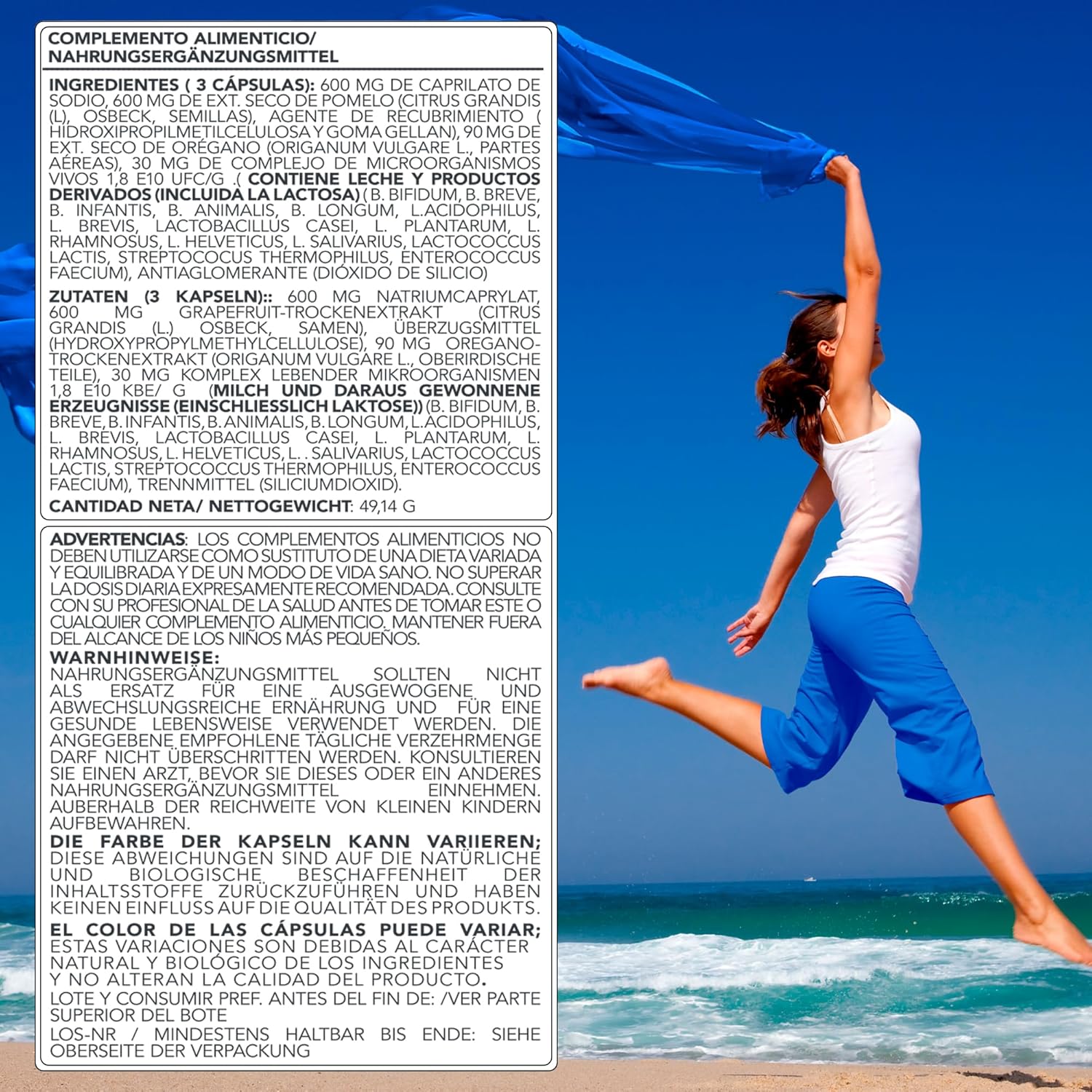 Este producto combina probióticos y un antifúngico para ayudar en el tratamiento de la candidiasis. Su fórmula incluye 15 cepas de probióticos, así como ingredientes naturales como el sodio caprilato, pomelo y orégano, que pueden contribuir a mejorar la microbiota y la flora íntima. Es adecuado tanto para mujeres como para hombres y está diseñado para combatir el hongo Candida. A continuación, algunos detalles clave: