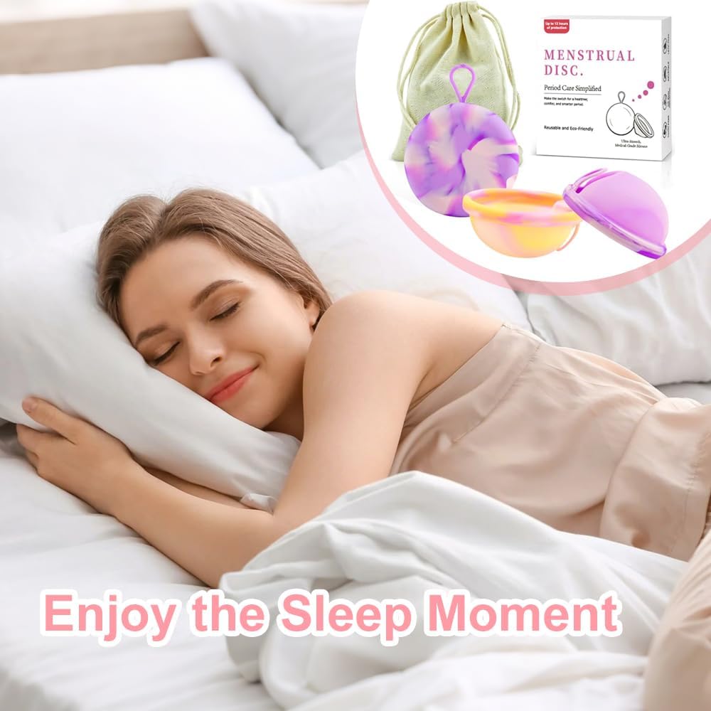 2 Pieces Menstrual Disc, Reusable Menstrual Cup, Mens-trual Silicone Cup for Sports and Swimming (S+L)