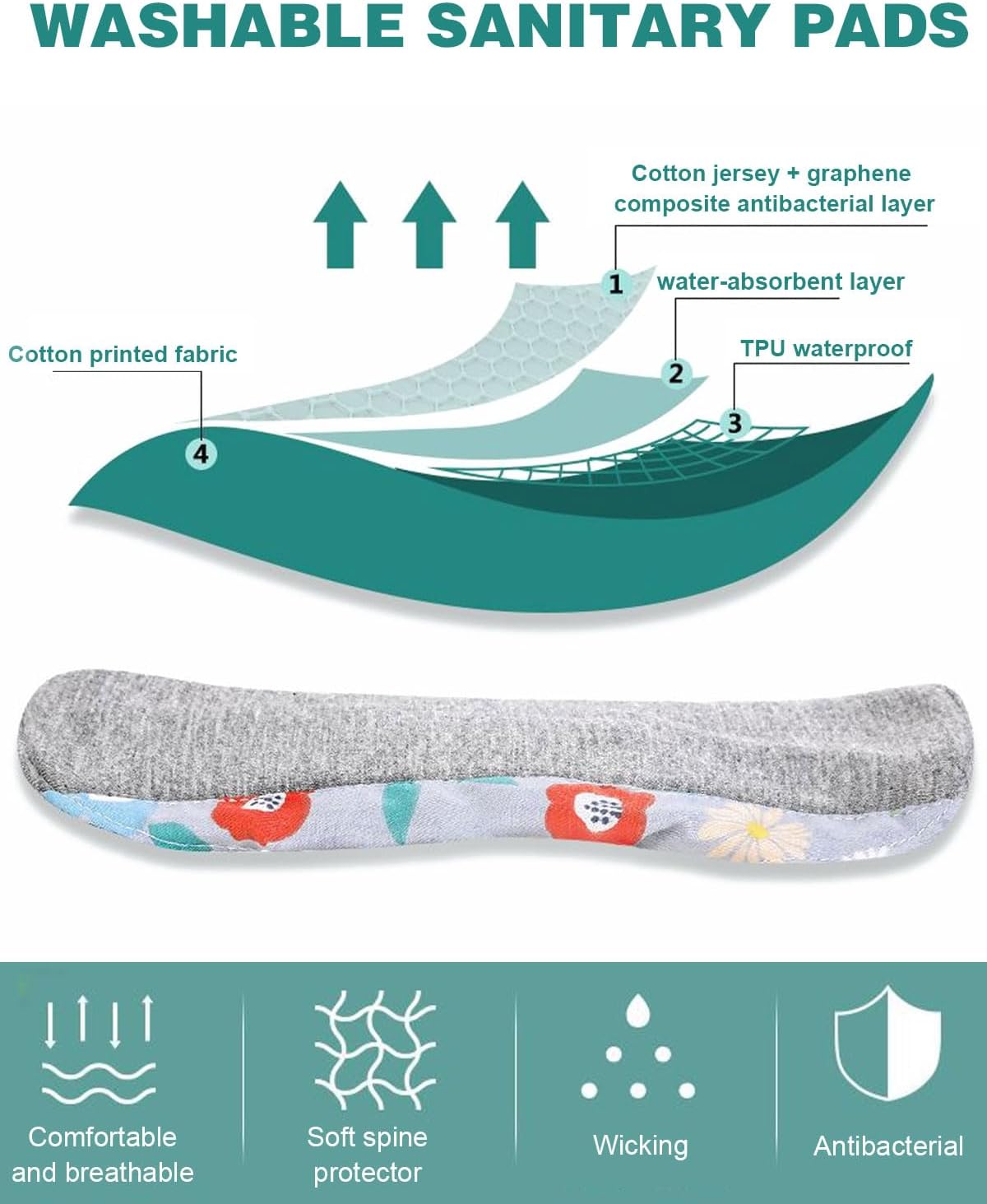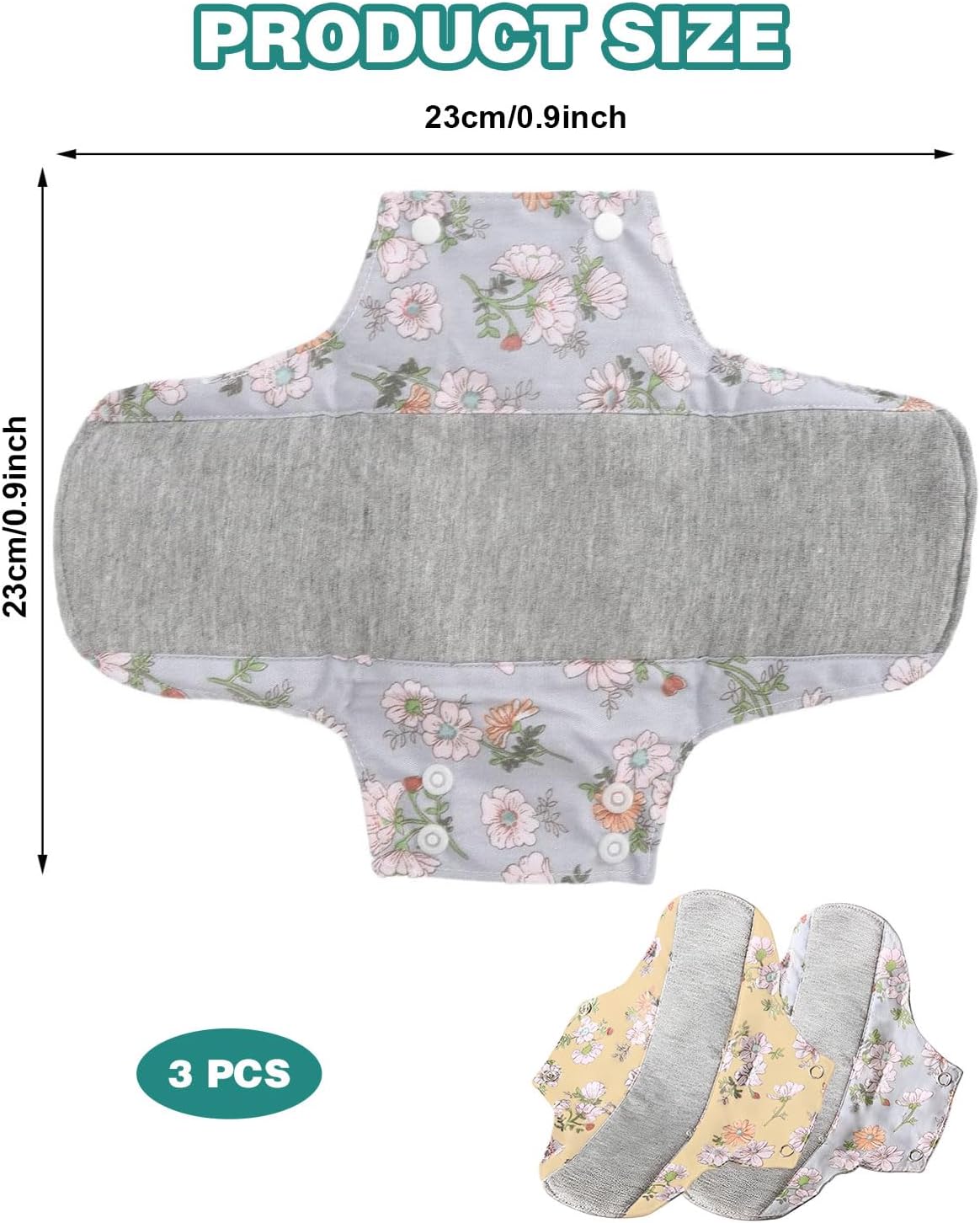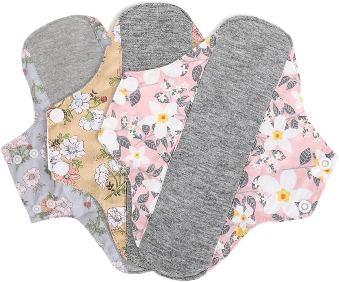 3 Pieces Reusable Pads, Cotton Liners, Antibacterial Bamboo Panty Liners, Washable Night Pads for Abundant Menstrual Flow, 23 cm