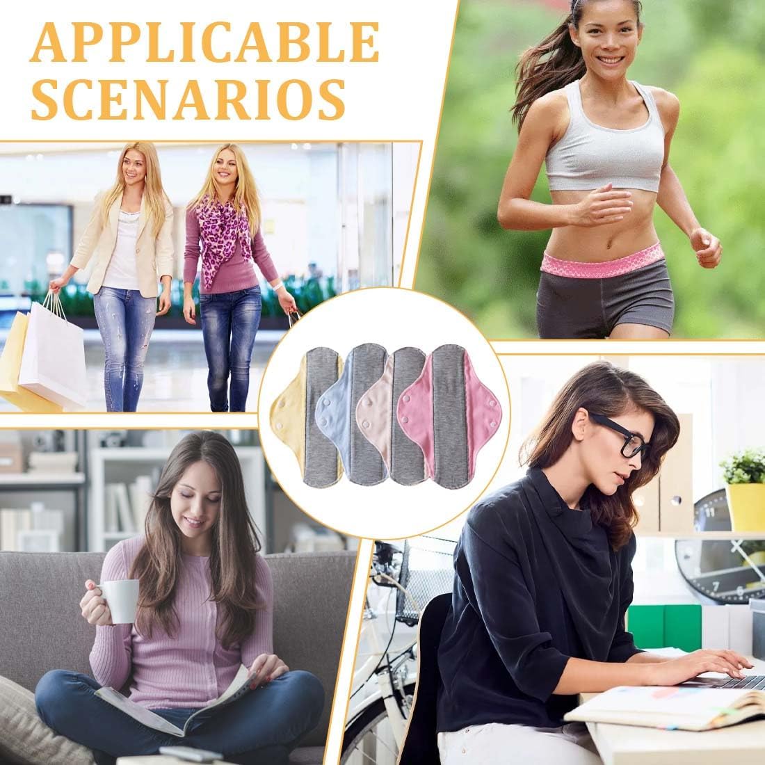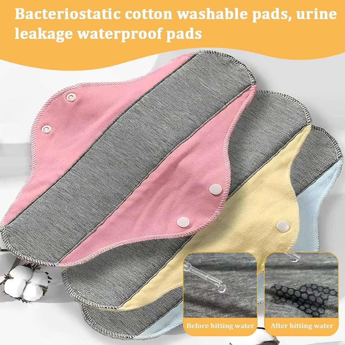 4 Reusable Sanitary Pads, Antibacterial Cotton, Graphene Cotton, Washable Nighttime Heavy Flow Menstrual Sanitary Pads