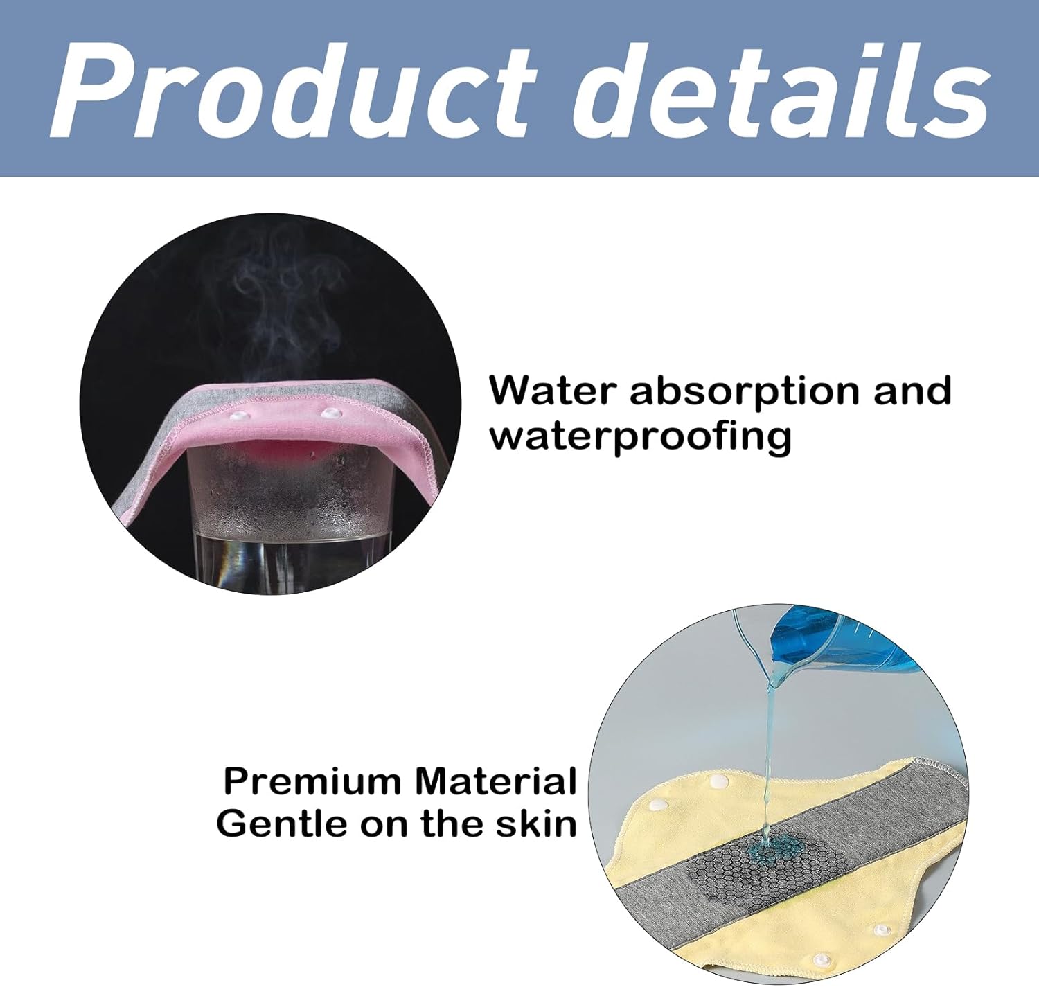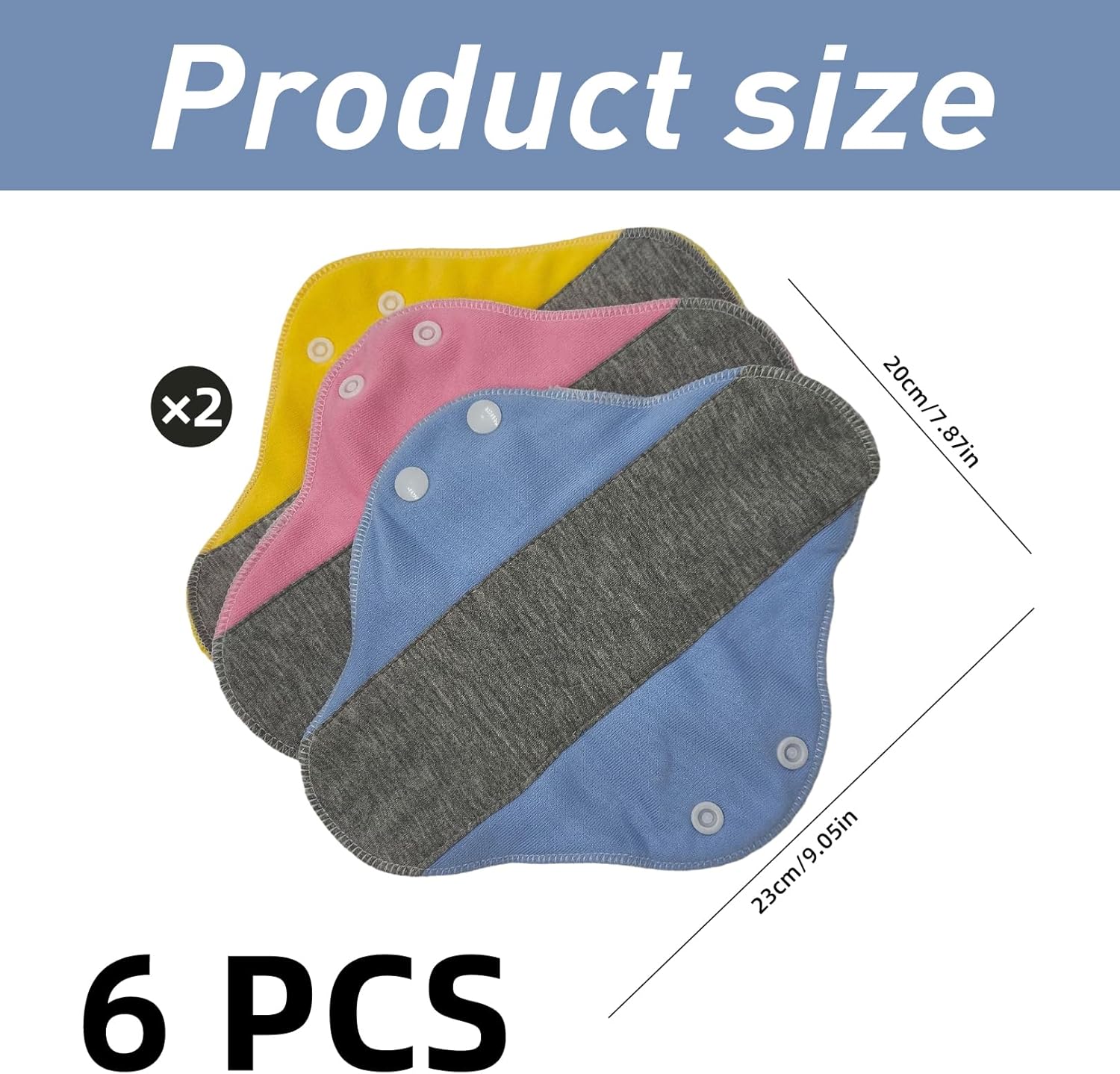 6 Pack Washable Sanitary Pads Reusable Cotton Cloth Pads for All Women