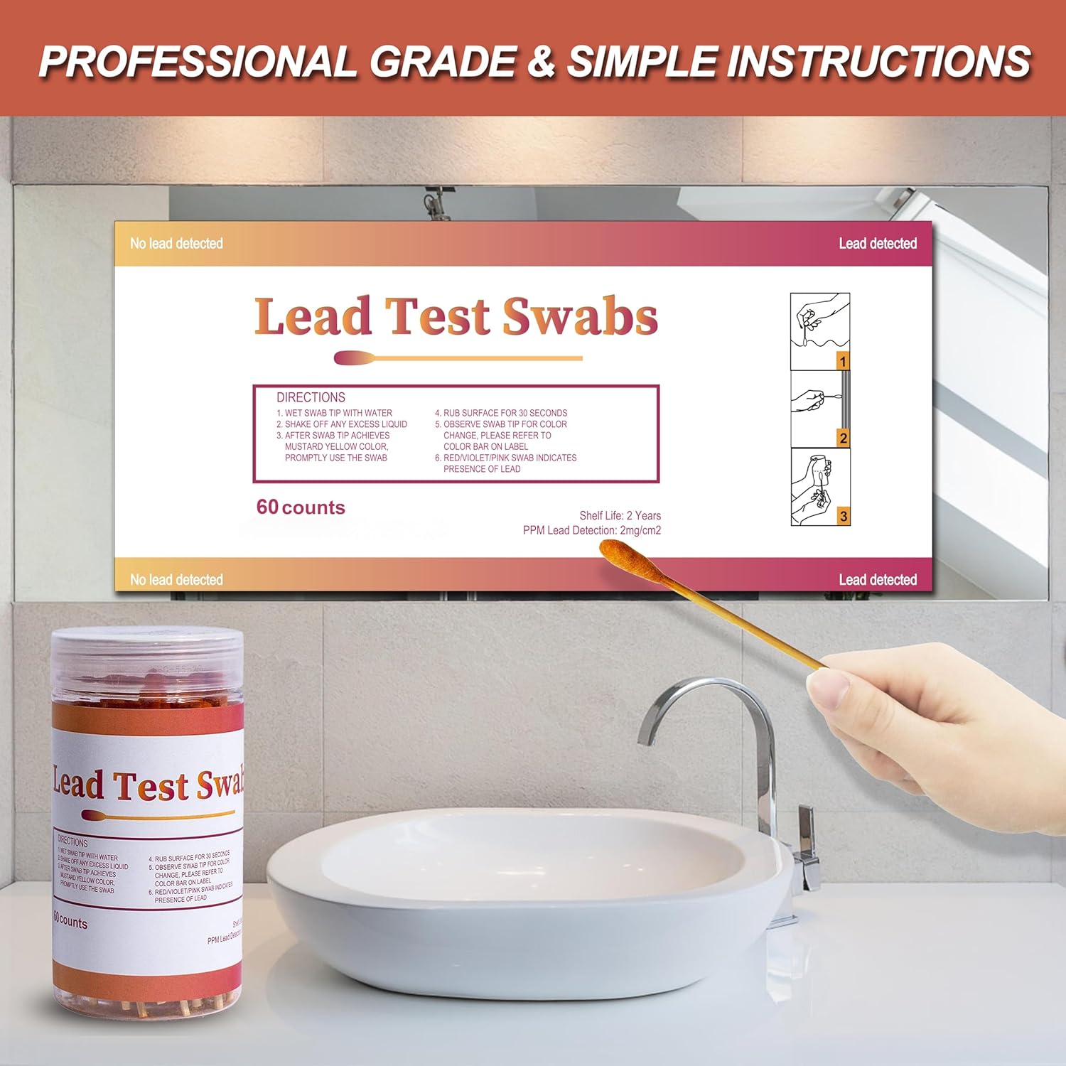 AAwipes Lead Test Kit (60 Rapid Test Swabs) 30 Second Results Using Only Household Water for All Surfaces: Painted, Plates, Toys, Jewelry, Metal,