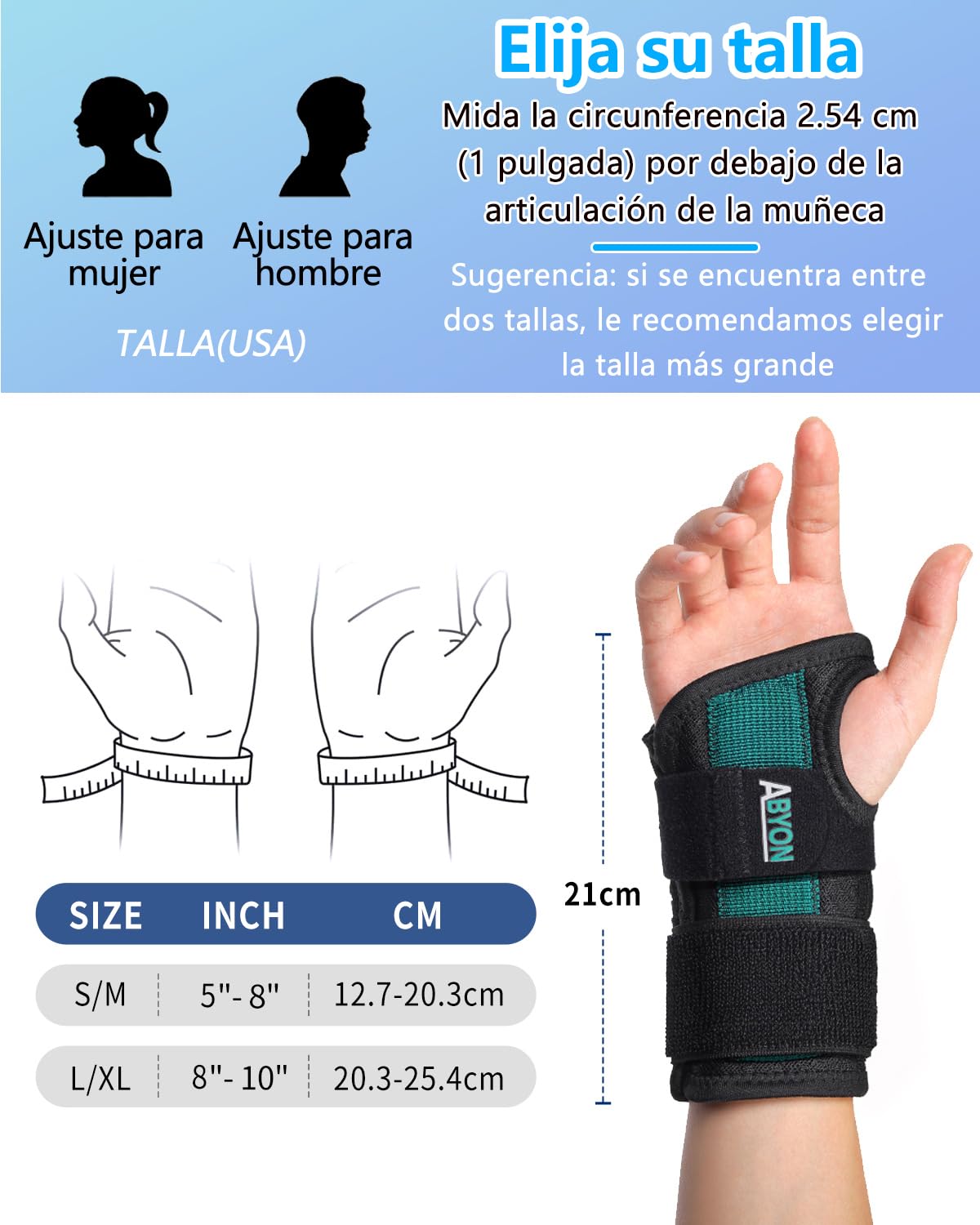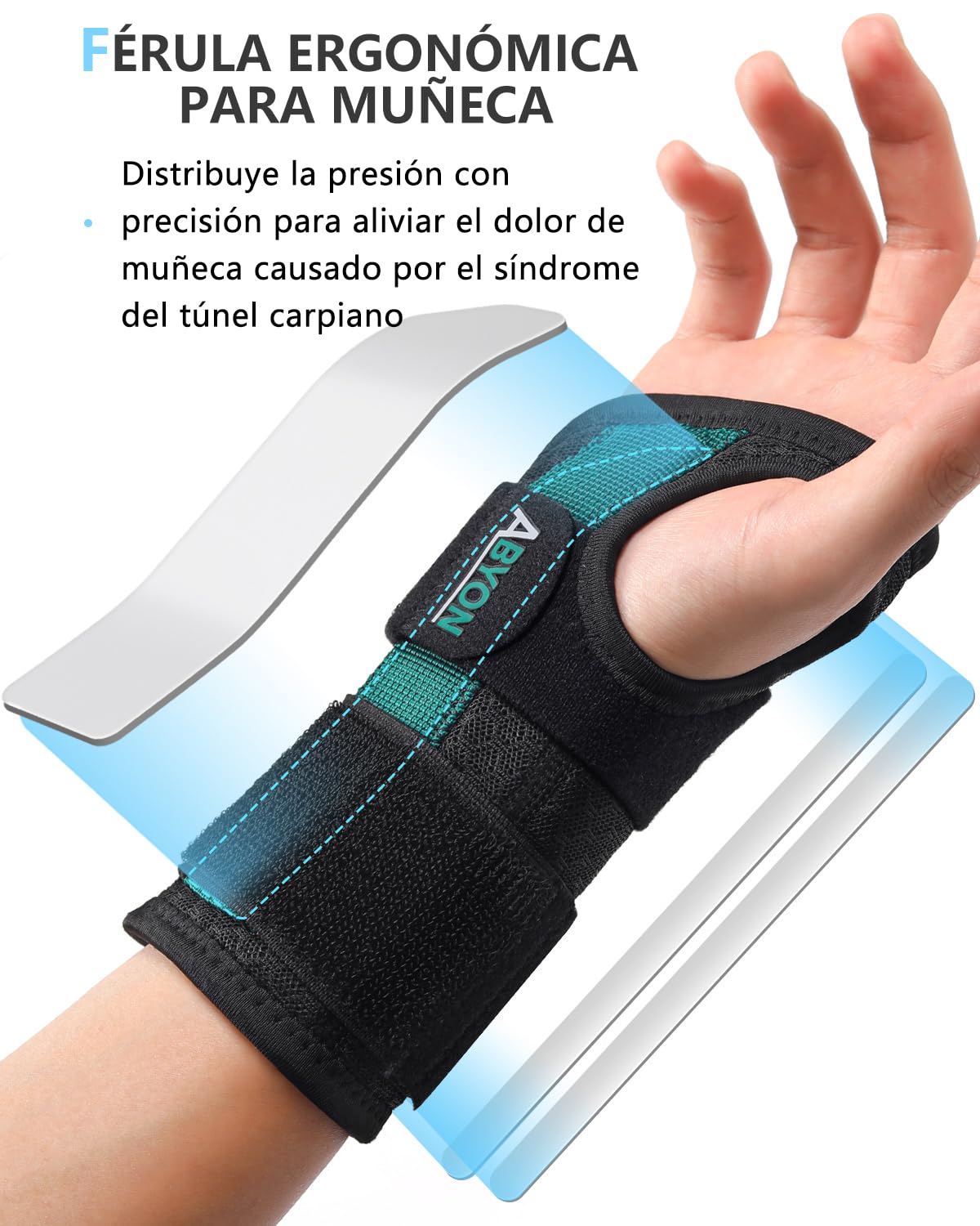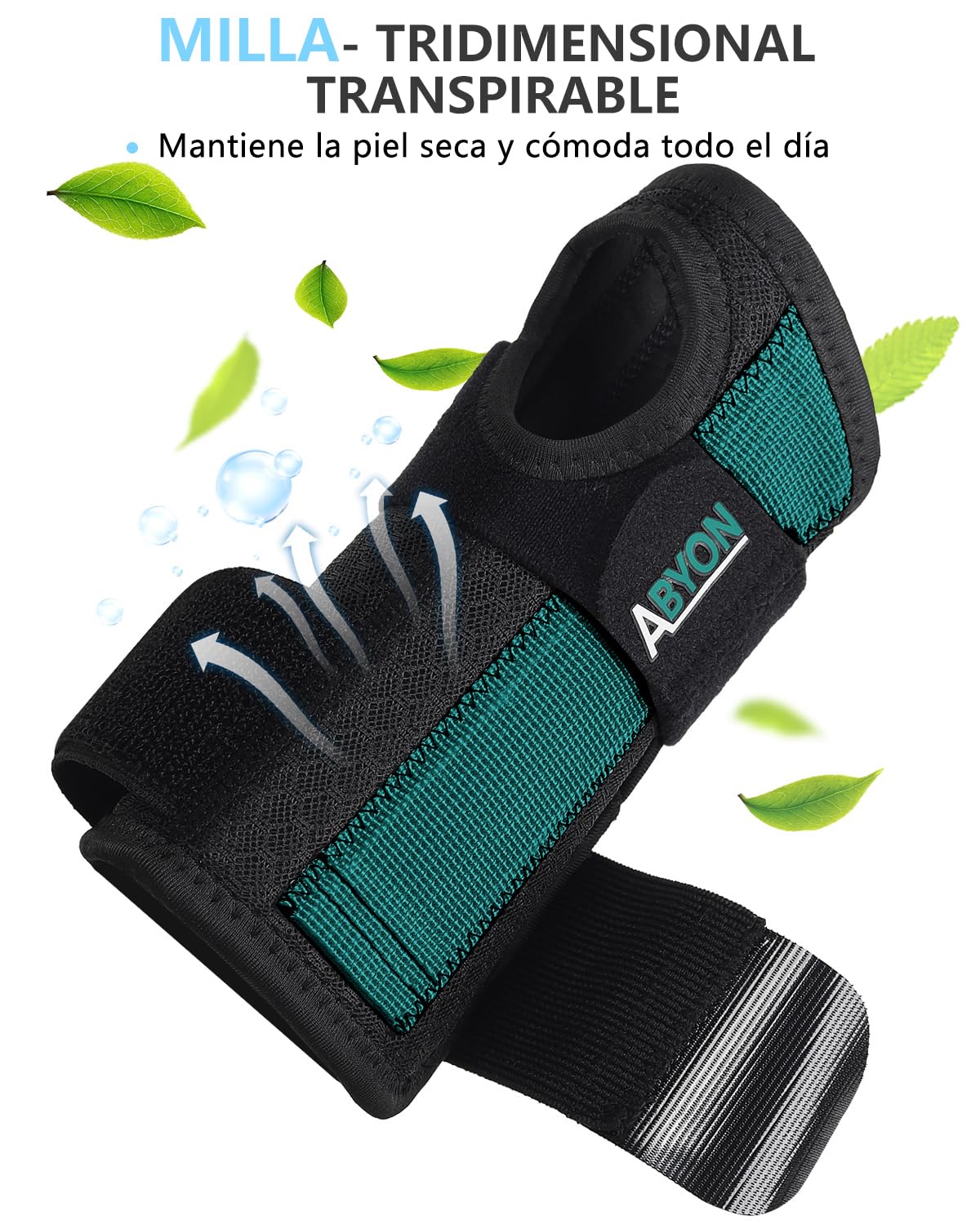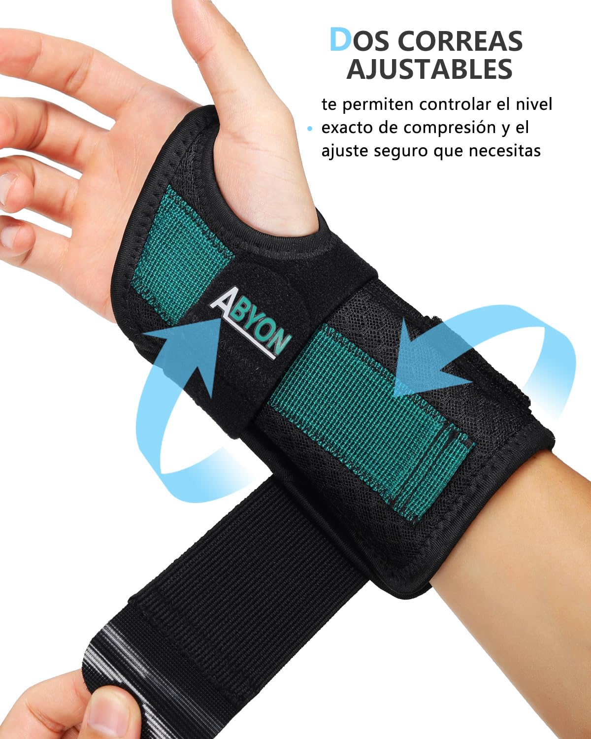 El soporte de muñeca ABYON está diseñado para proporcionar alivio del dolor en condiciones como el síndrome del túnel carpiano, tendinitis, esguinces y artritis. Su diseño ligero y ajustable lo hace adecuado tanto para dormir como para trabajar. Este soporte es versátil, ya que se puede usar en la mano izquierda o derecha. Características principales: