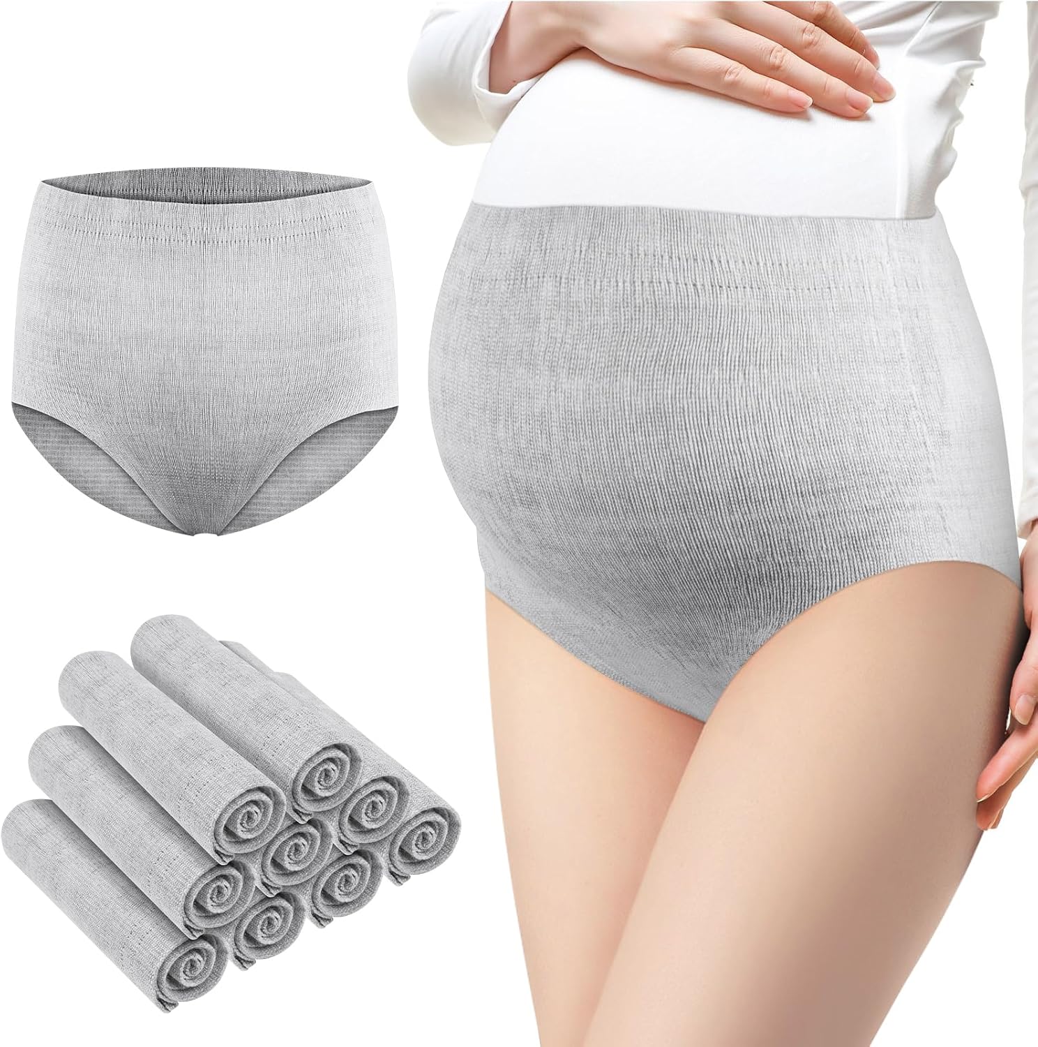 ACWOO Disposable High Waist Postpartum Underwear for Caesarean Section, 9 PCS Seamless Pregnant Panties, Caesarean Postpartum Brief, Super Stretchy, Breathable, Absorbent