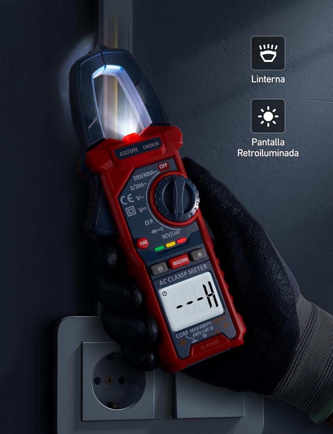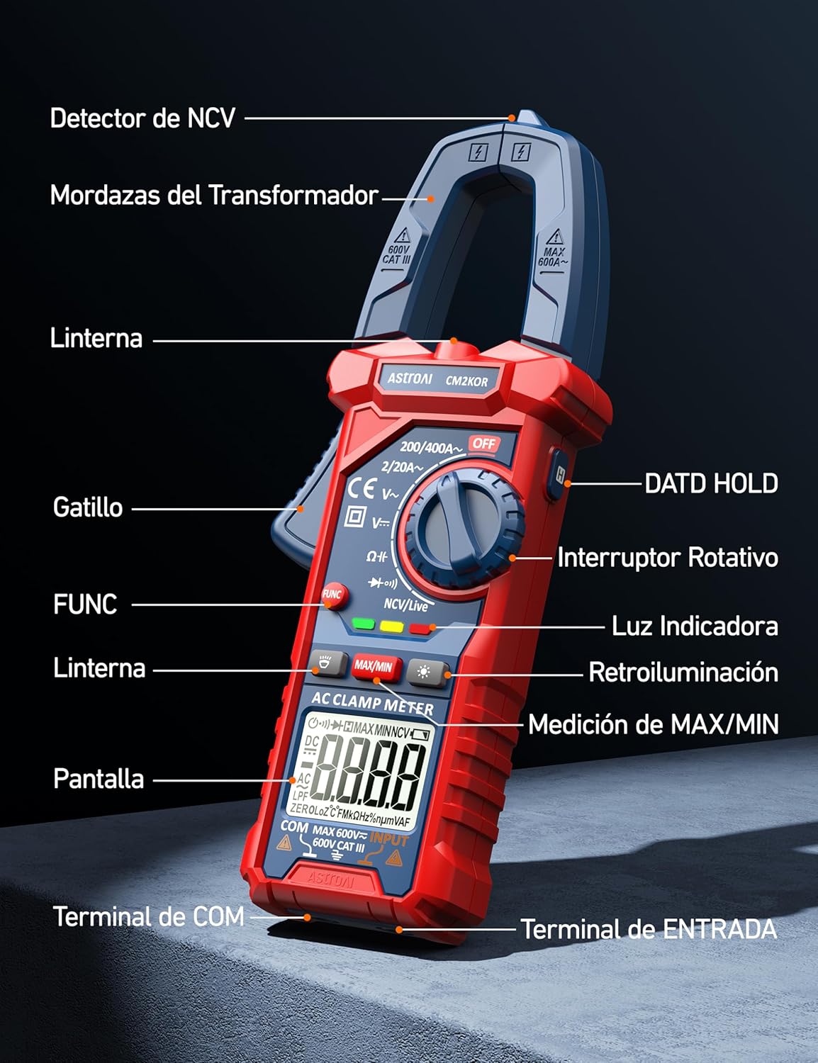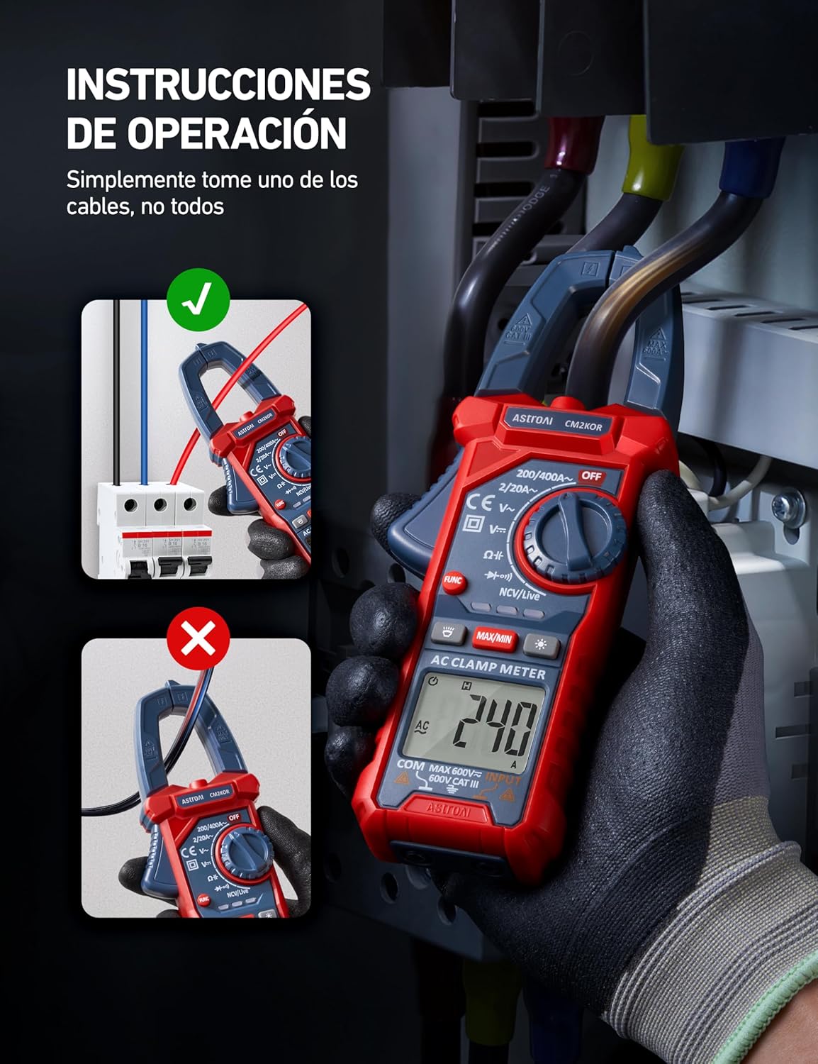 El AstroAI Clamp Amperimeter es un multímetro digital profesional que ofrece una variedad de funciones esenciales para medir corrientes y voltajes. Este dispositivo es ideal para quienes necesitan realizar pruebas eléctricas de manera precisa y eficiente. Sus características incluyen: