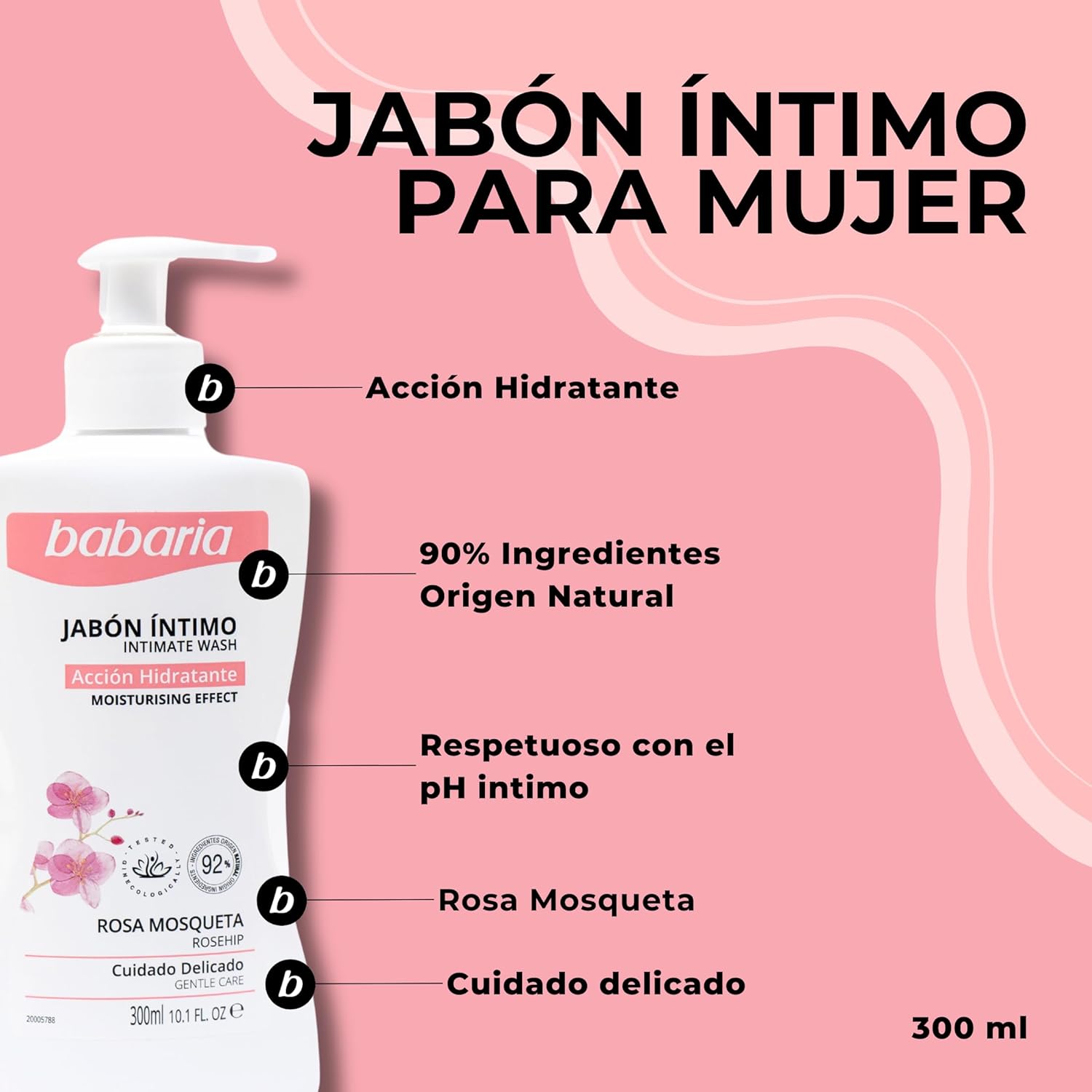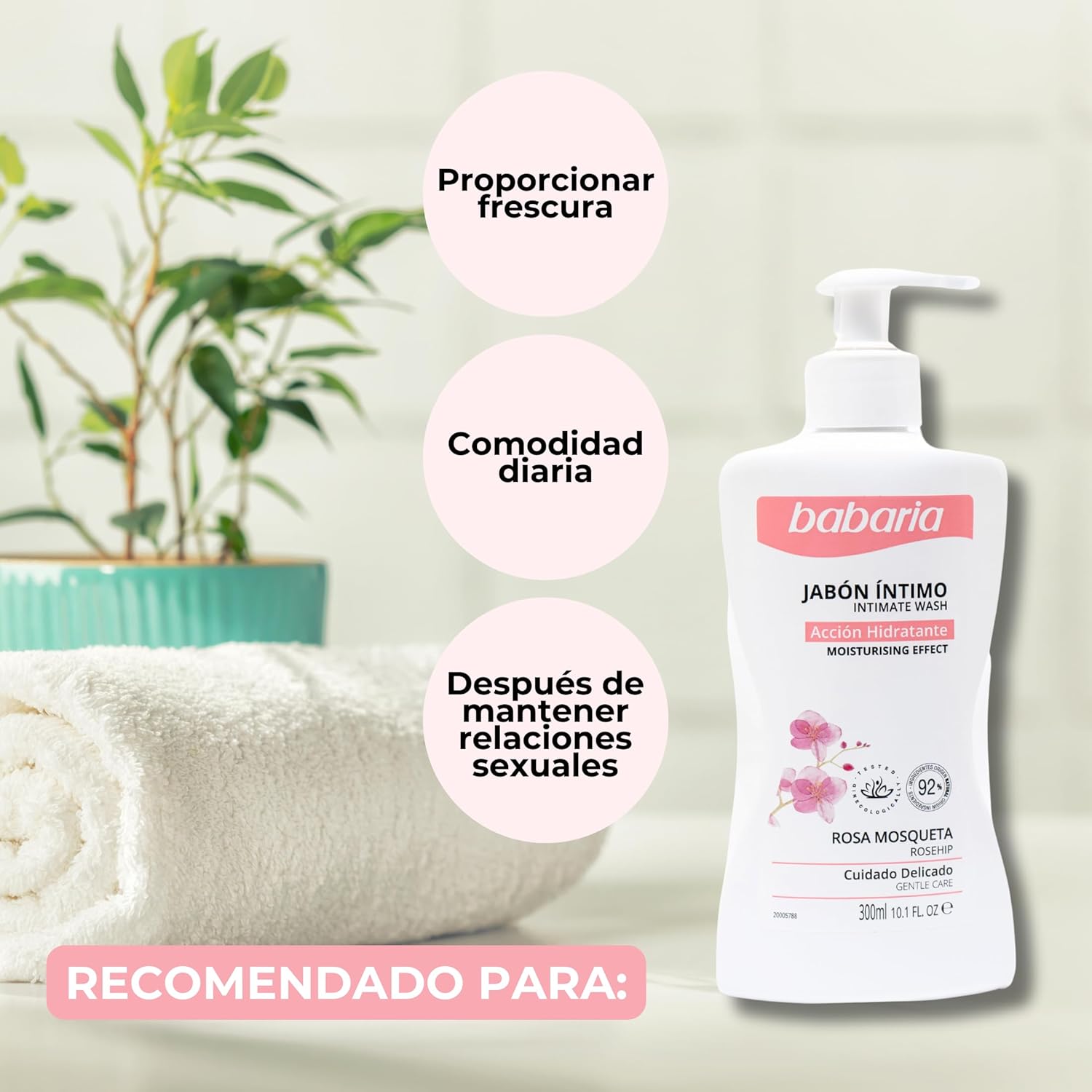 Babaria - Gel Intimo de Rosa Mosqueta y Ácido Láctico es un producto diseñado para el cuidado de la zona íntima de la mujer. Este gel íntimo ofrece una acción hidratante, limpiando suavemente sin alterar el equilibrio natural de la piel. Es importante elegir productos de calidad para esta área tan delicada. Aquí te presentamos algunas características clave: