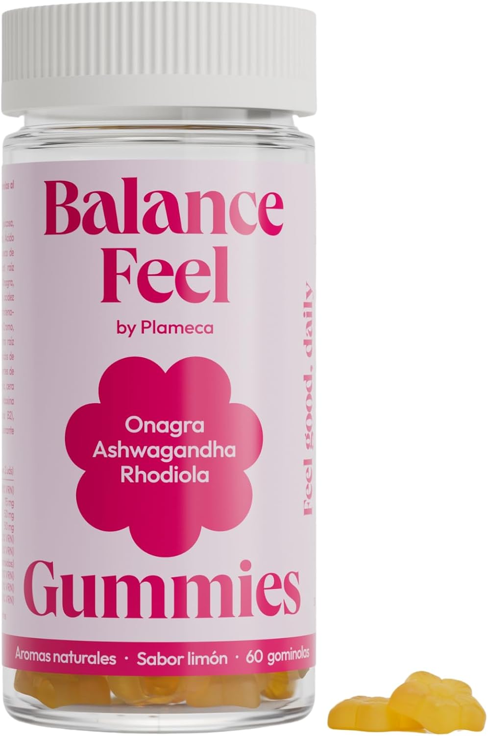 Balance Feel es una fórmula completa diseñada para el bienestar femenino. Con ingredientes como Ashwagandha, Evening Primrose y Rhodiola, este producto busca ayudar a mantener un equilibrio natural y promover el bienestar integral. Cada gomita de sabor limón está formulada para apoyar el equilibrio y regular la actividad hormonal de manera natural.