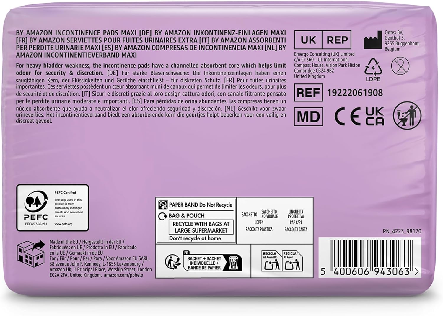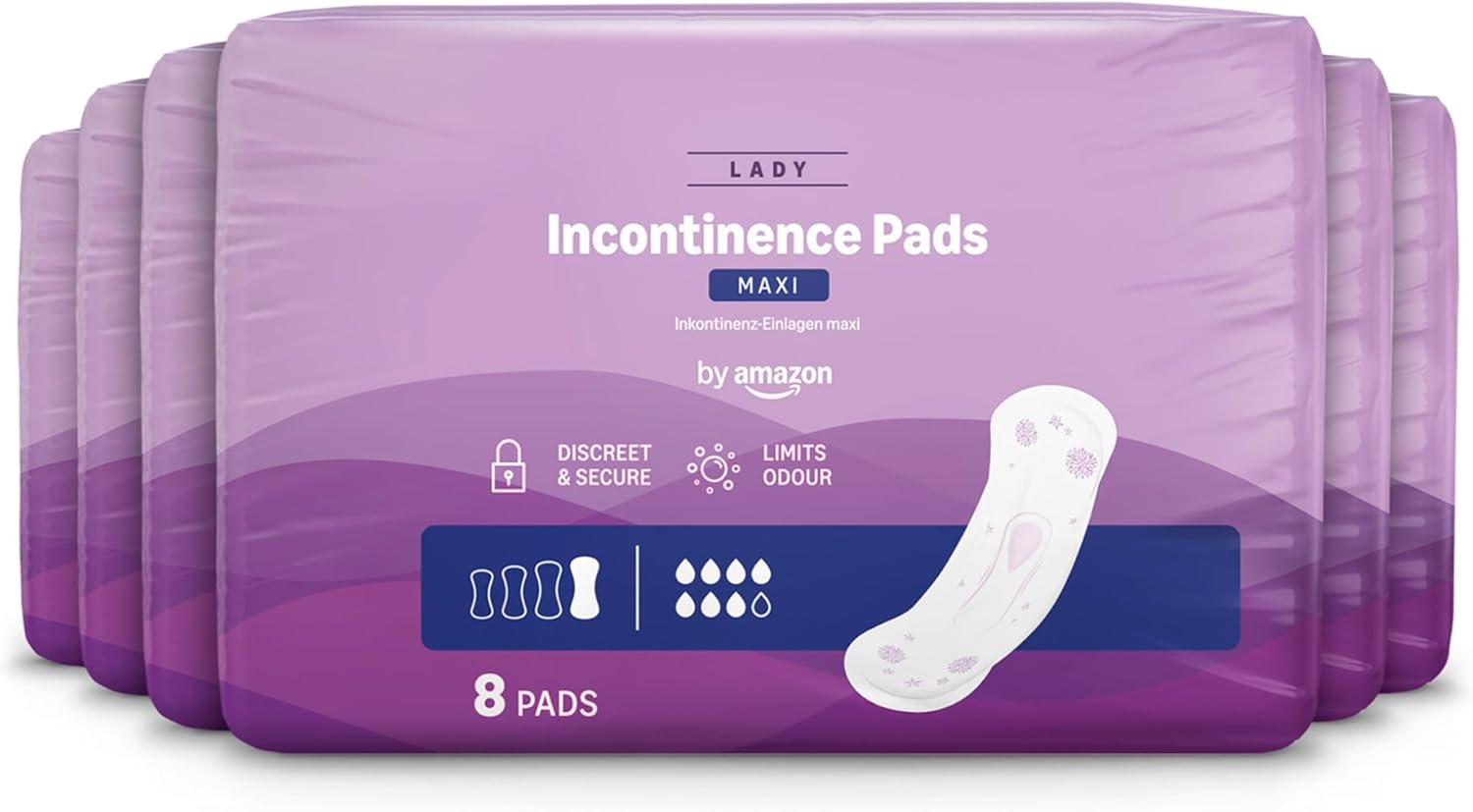 by Amazon Maxi Incontinence Pads, Fragrance Free – 48 Count (6 Packs of 8), (Formerly an Amazon Basic Care Brand, Packaging May Vary)