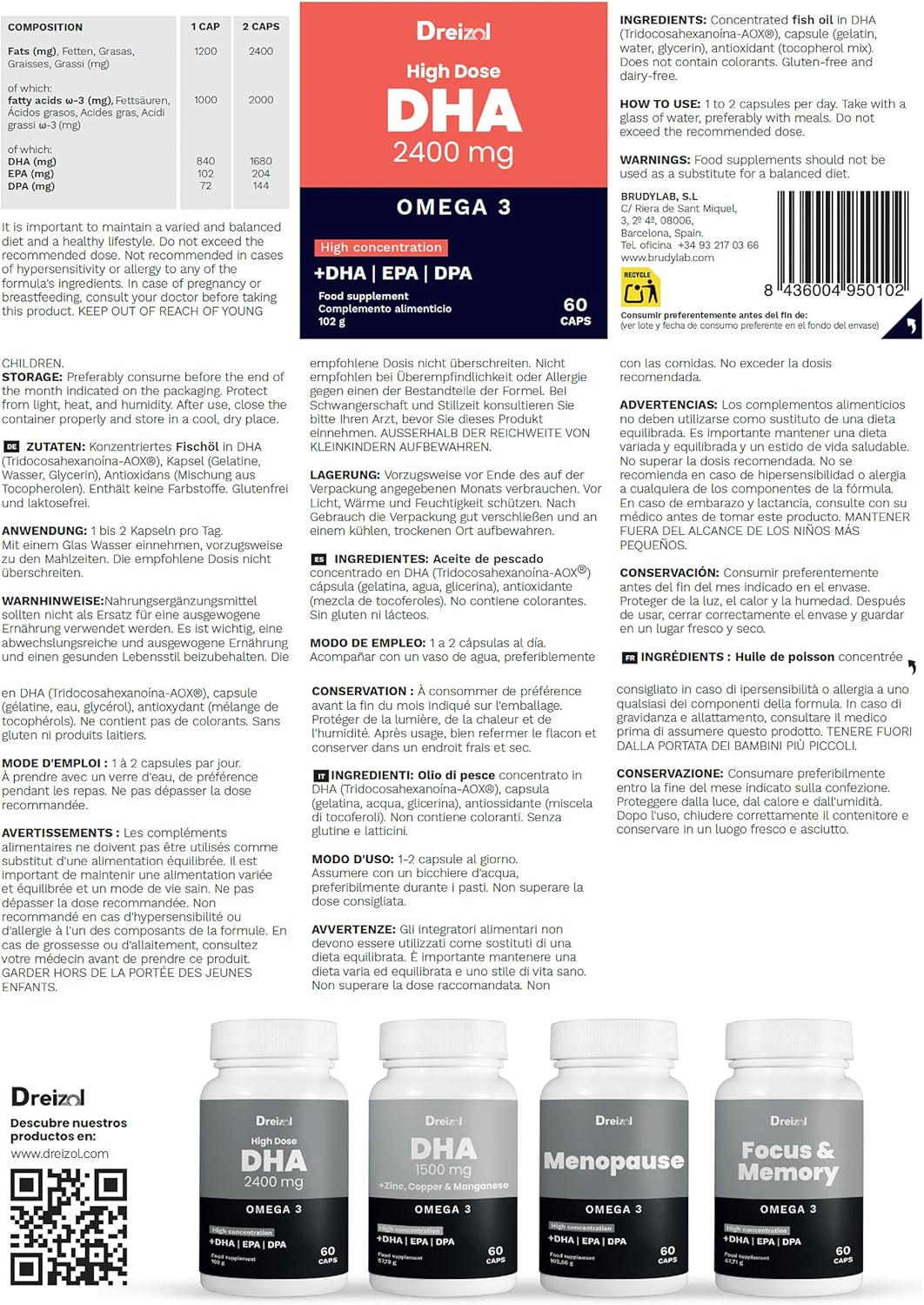 by Brudy Lab Omega 3 2400 mg DHA High Dose Capsules with DHA, EPA and DPA in Triglycerides – Fish Oil Concentrate – 60 Capsules