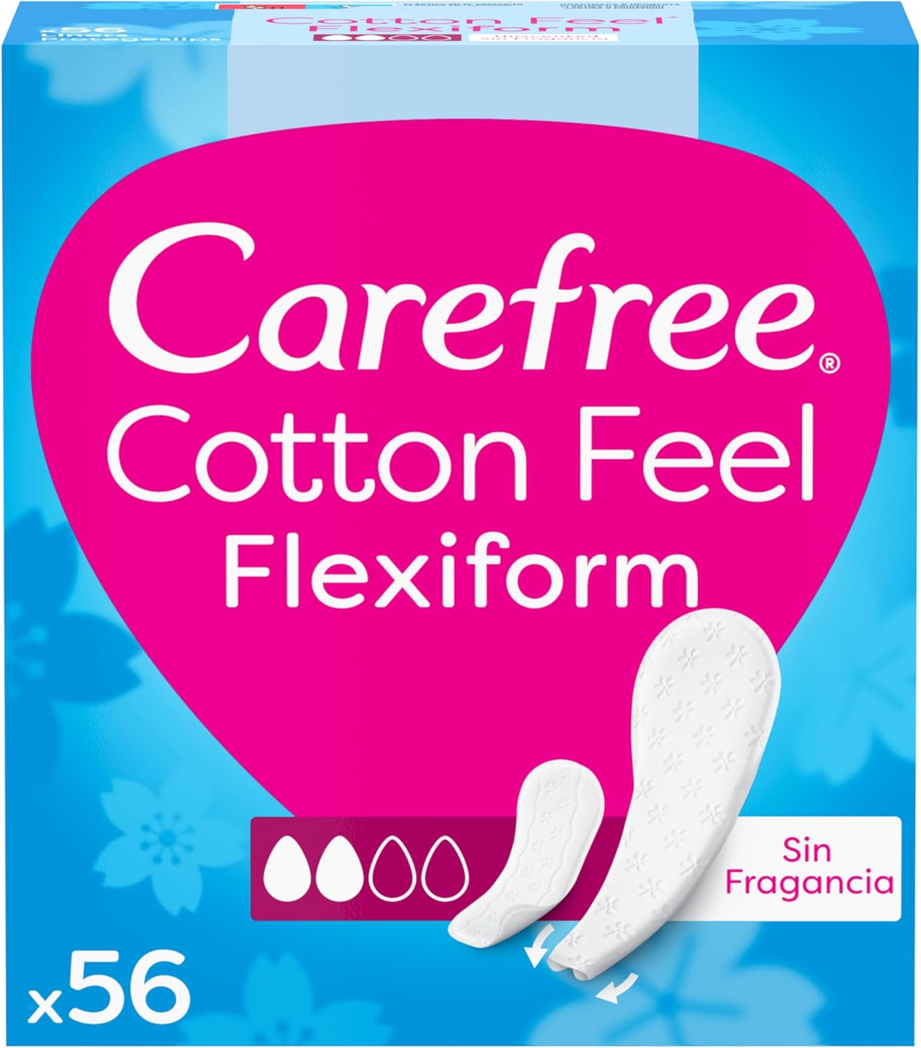 Carefree Cotton Feel Flexiform Fragrance-Free Panty Liners (56 Pack), Normal Absorbency and Breathable Daily Use Fragrance Free Panty Protectant for All Knickers