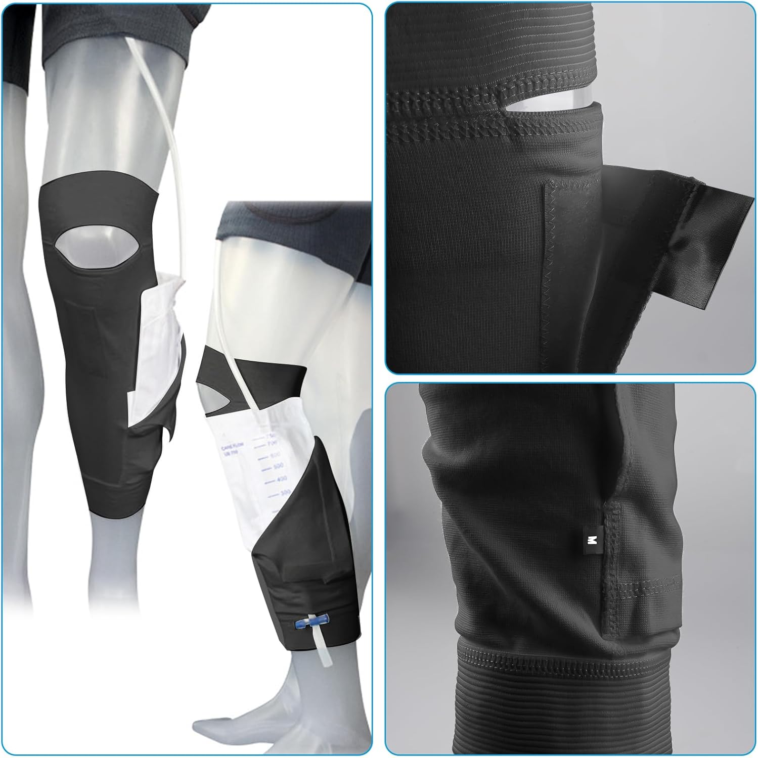 Catheter Leg Bag Holder, Black Extendable Leg Bag Support for Urinary Incontinence Catheter Accessories, Catheter Bag, Attaching Catheter Sleeves for Draining Catheter