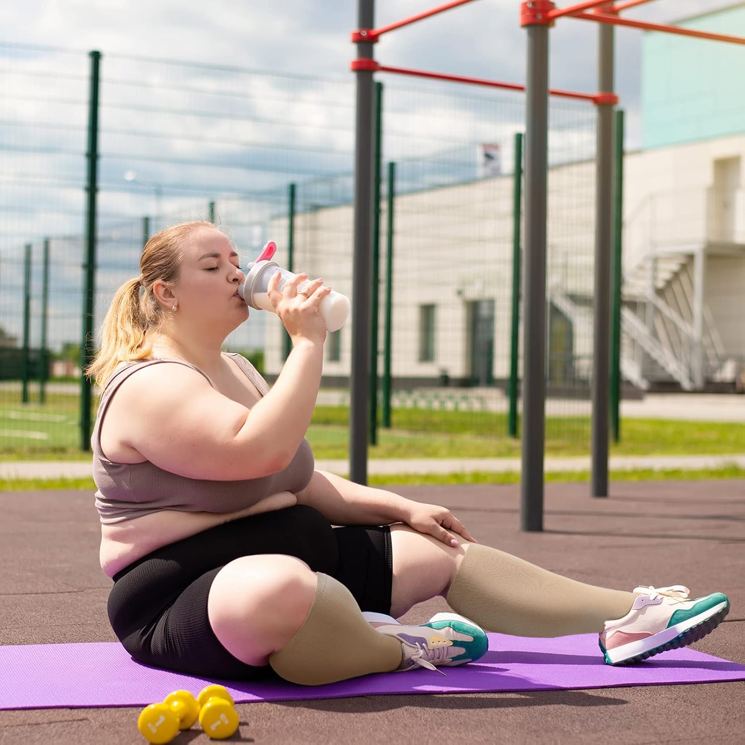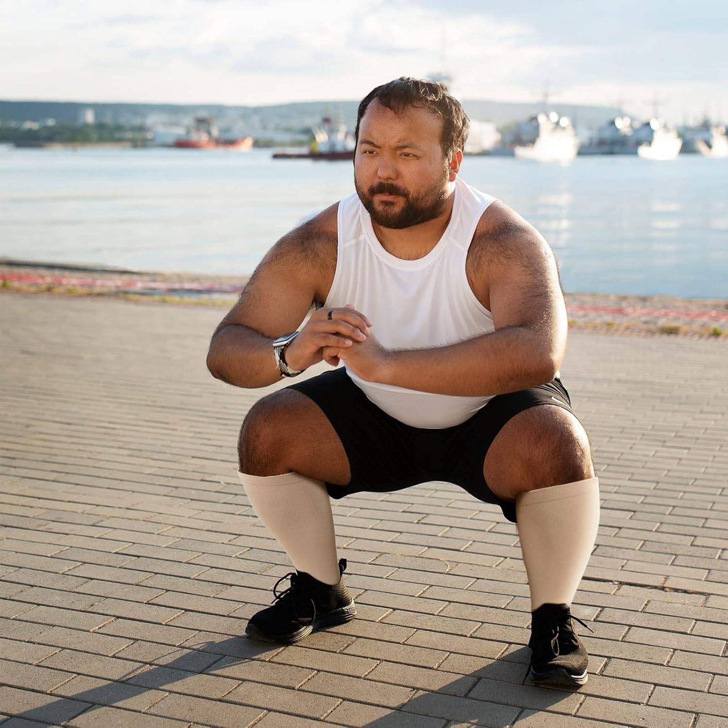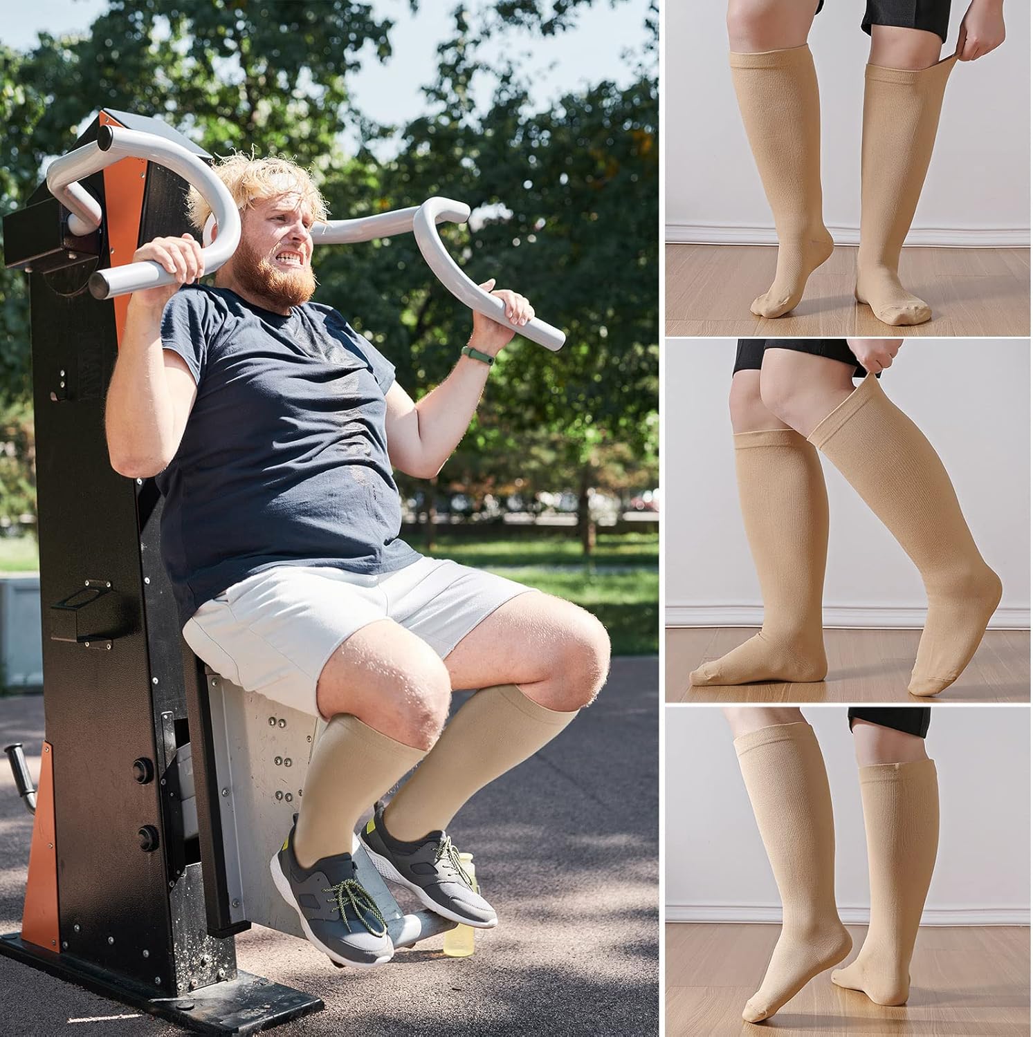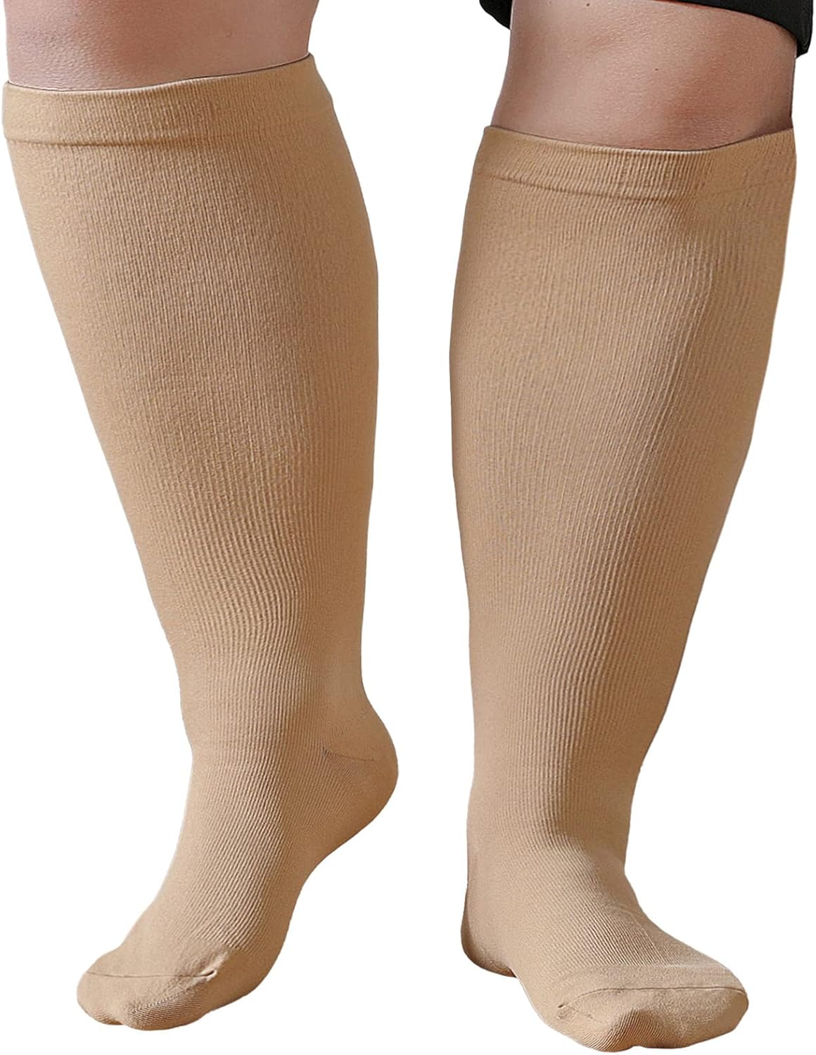 Compression Socks Woman Man: Compression Stockings Plus Size Wide Calf 20-30 mmHg for Obese Pregnant Varicose Veins Sports Travel Flight XXL-7XL Black Beige 1 Pair