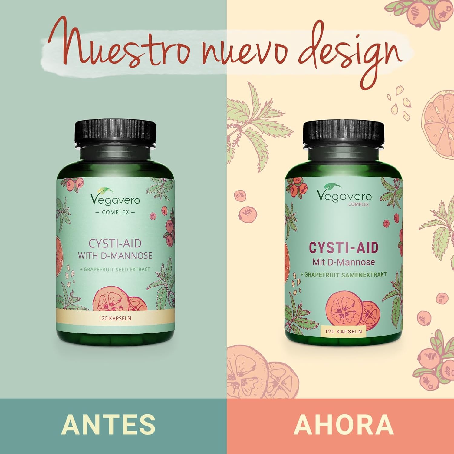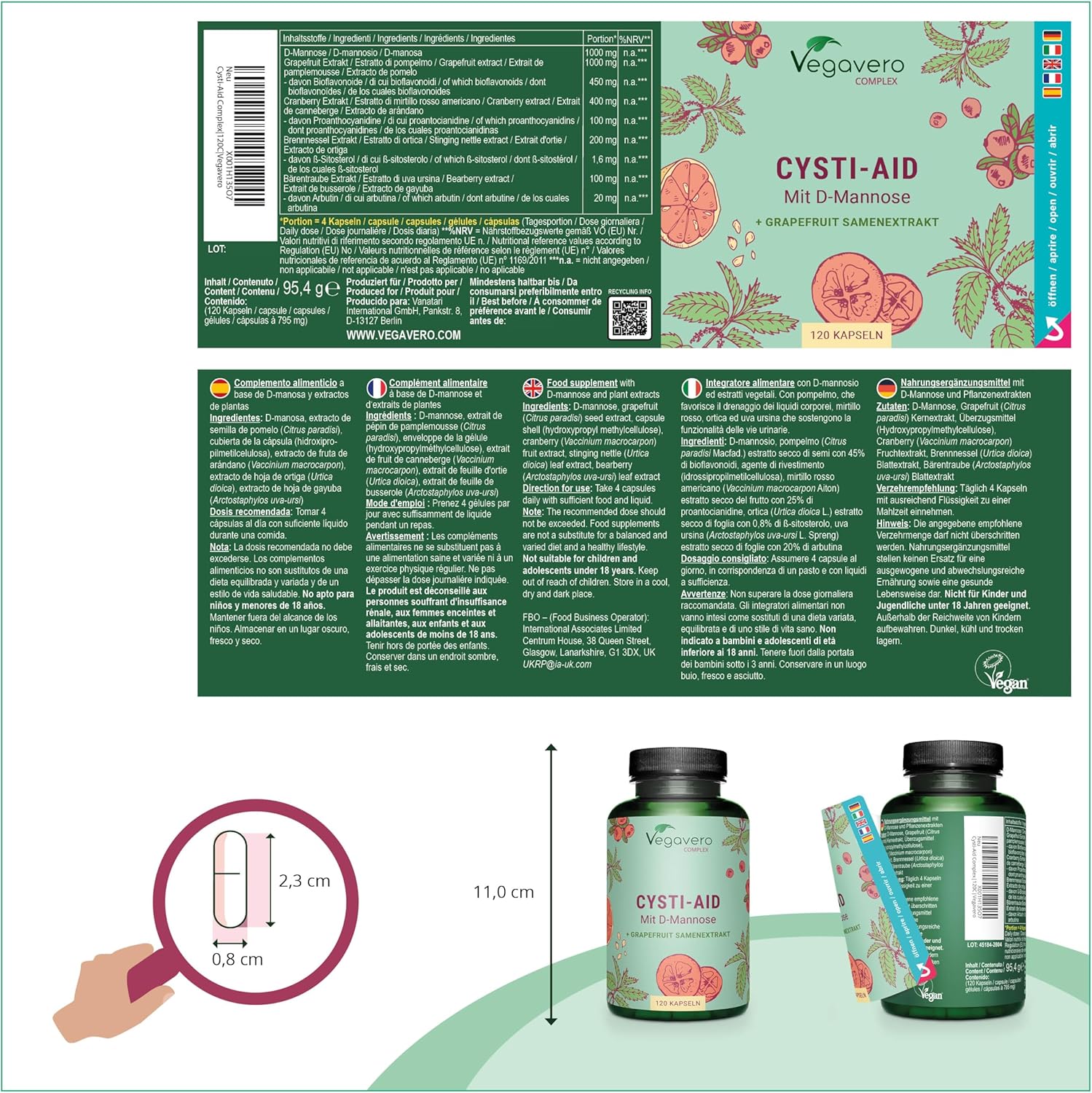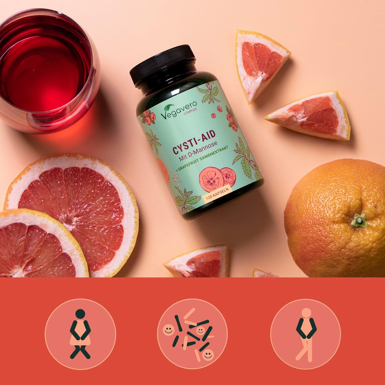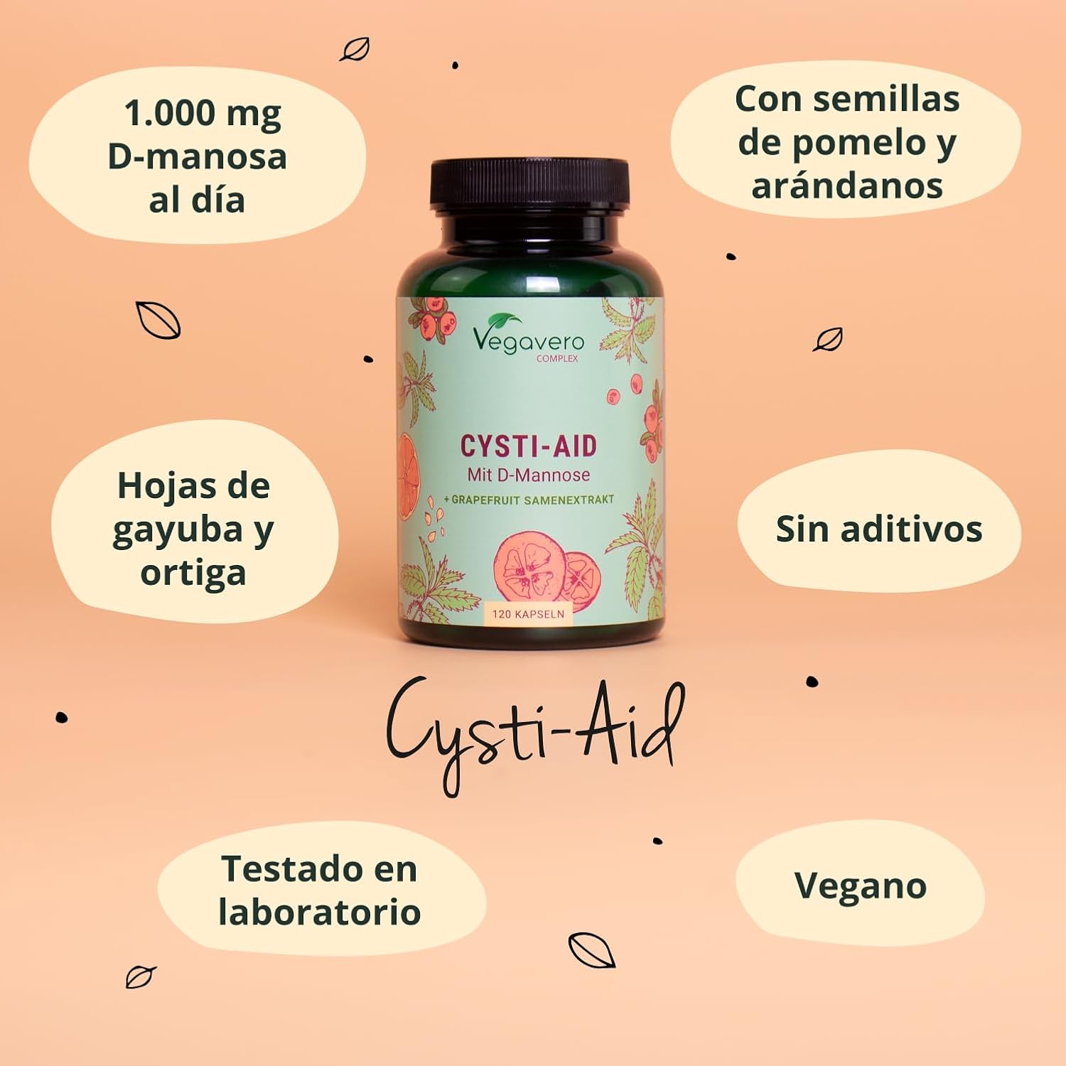 Cystitis Relief Vegavero® | 100% Natural UTI Support | NO Additives, Lab-Tested | with D-Mannose, Grapefruit Seed, Cranberry, Stinging Nettle, and Bearberry Extracts | 120 Capsules | Vegan