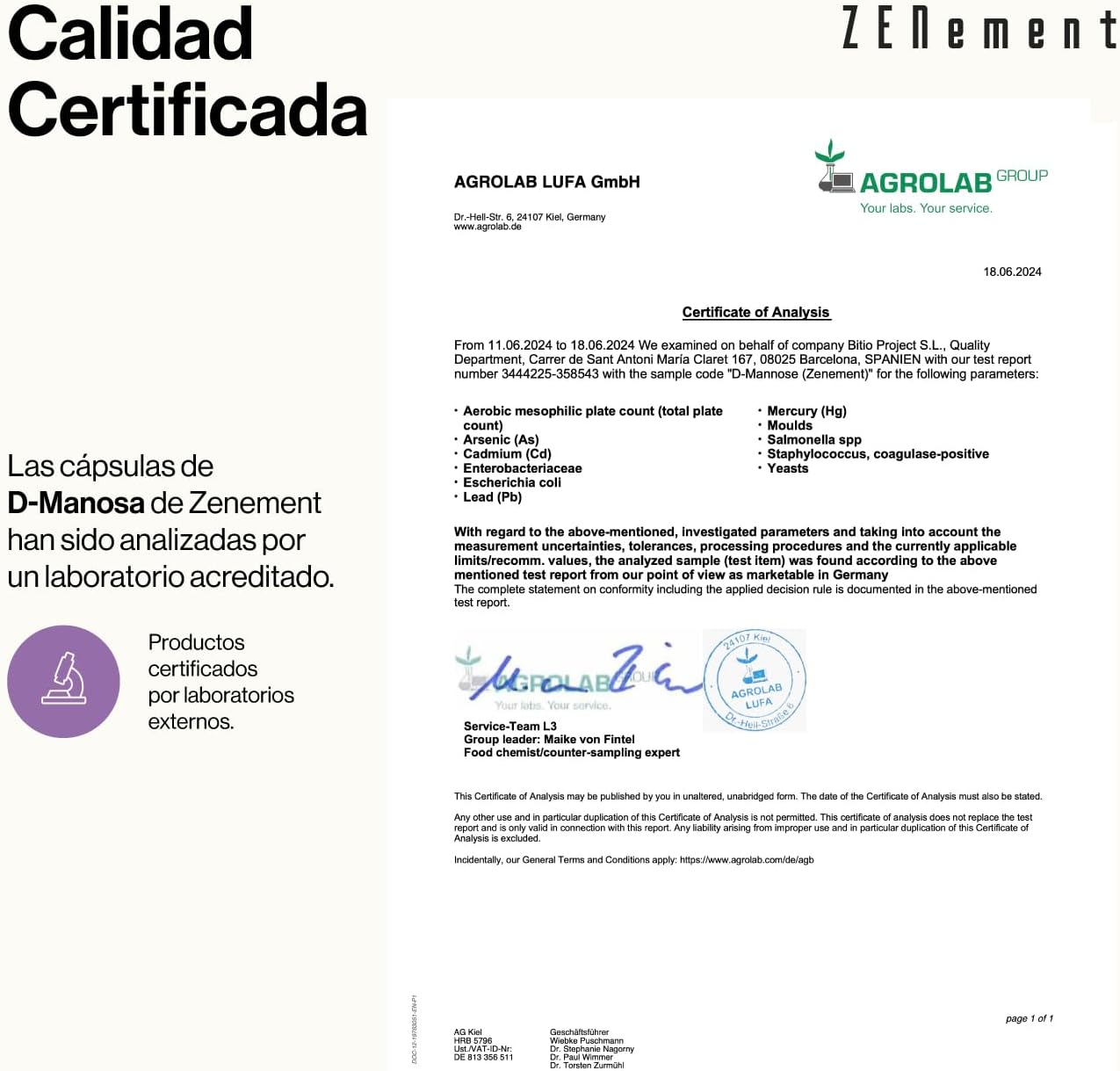 - Analizado por laboratorios externos.