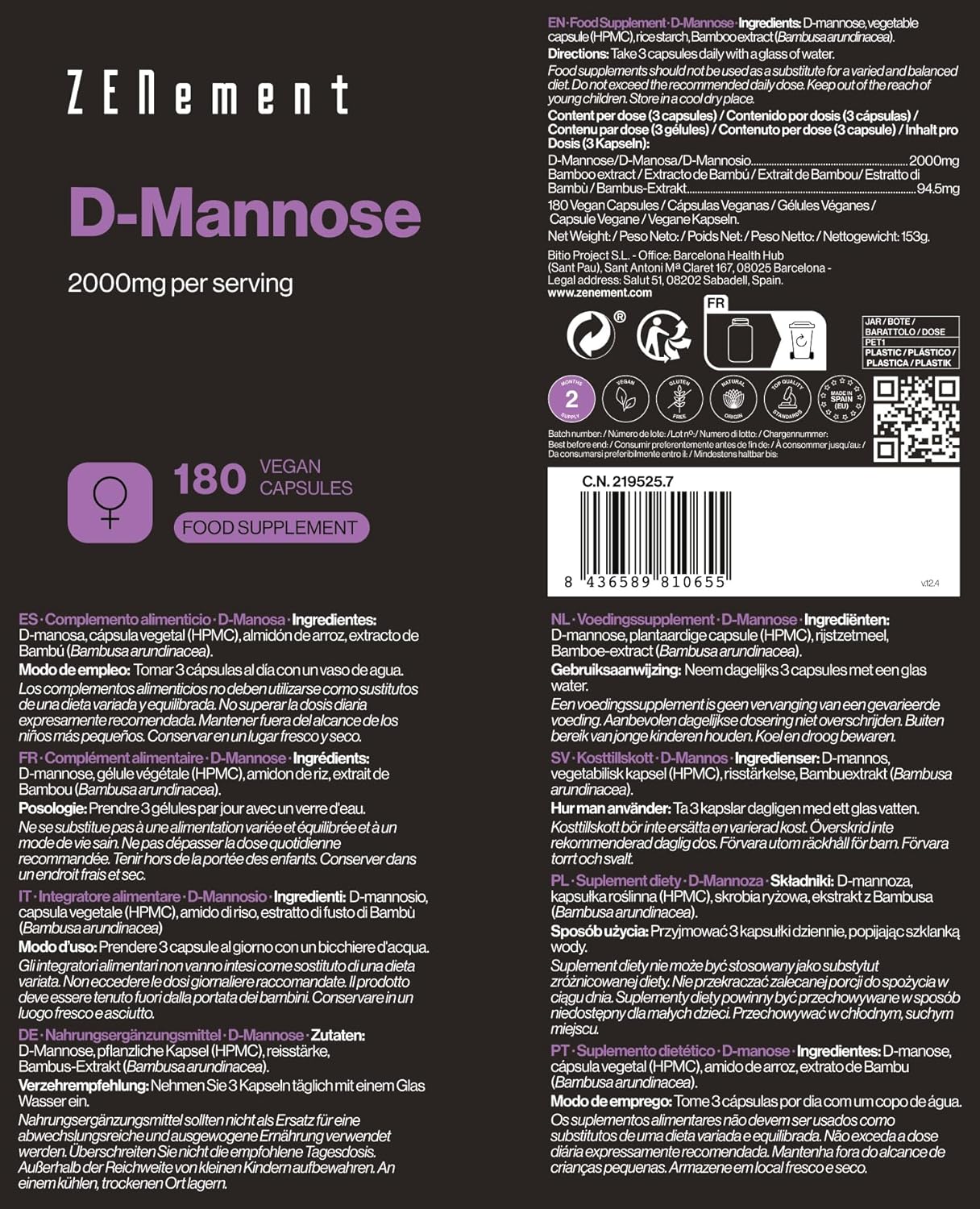 D-Mannose es un suplemento en cápsulas veganas que ofrece una dosis alta de 2000 mg por día, lo que lo convierte en una opción efectiva para quienes buscan mantener su bienestar. Este producto, inspirado en la filosofía Zen, busca equilibrar el bienestar físico y mental. Además, es elaborado con fórmulas propias y ingredientes seleccionados, garantizando una alta calidad. Los productos son analizados por laboratorios externos registrados, asegurando su pureza y eficacia.