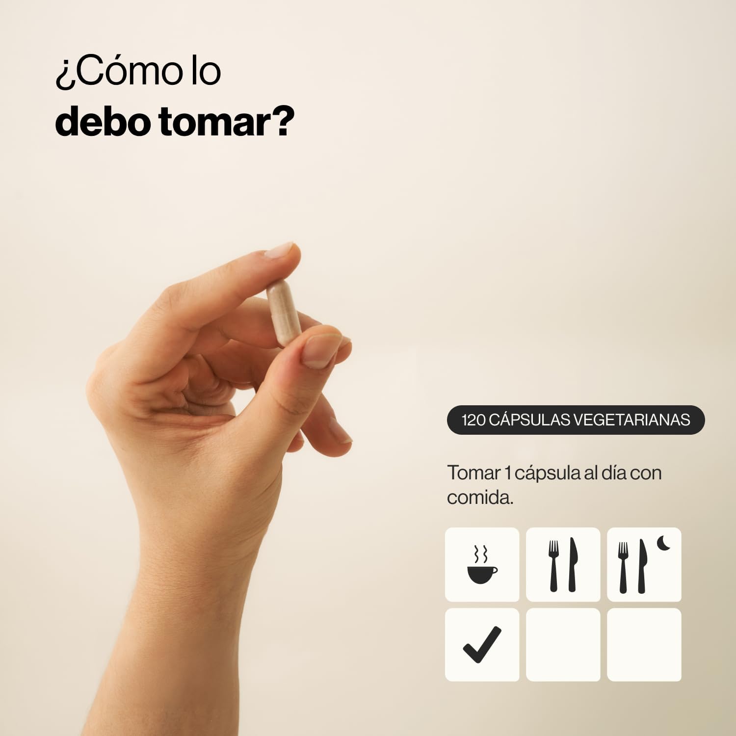 Este suplemento viene en cápsulas, lo que facilita su consumo diario.