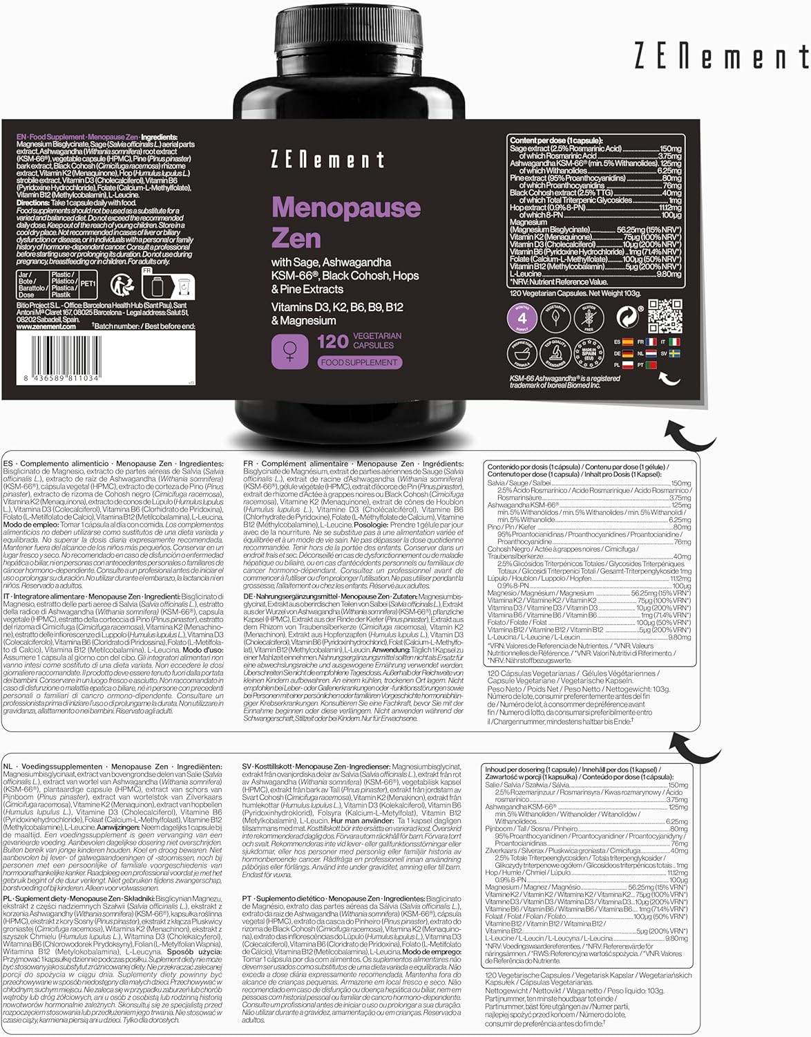 Day & Night Menopause Formula – 11 Active Ingredients: Sage, Ashwagandha KSM-66, Hops, Pine, Black Cohosh, Vitamins D3 K2 B6 B9 B12 and Magnesium – 120 Capsules, Soy Free – Zen Menopause
