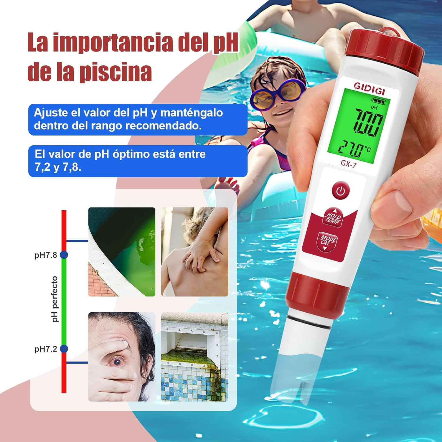 Con este medidor, usted y su familia podrán disfrutar de una piscina limpia y segura.