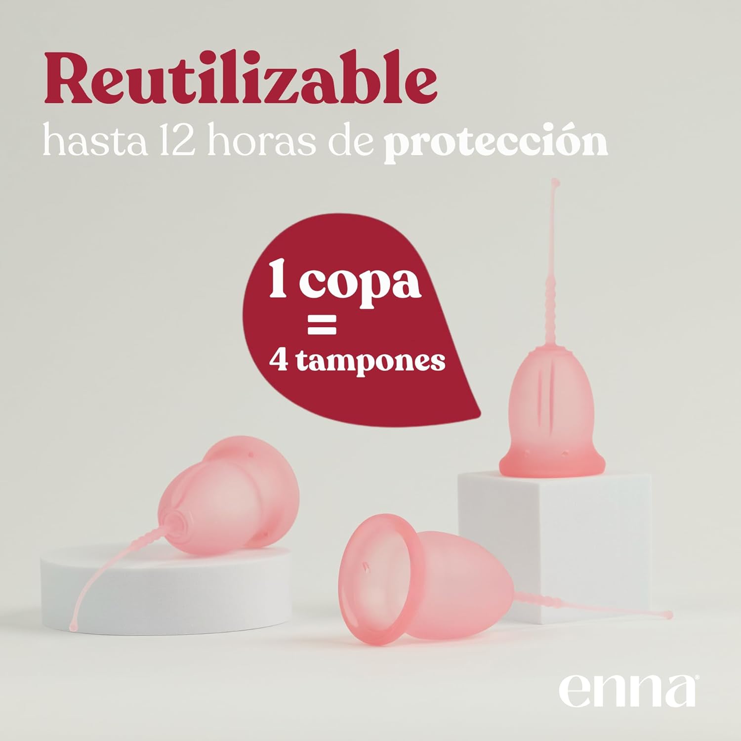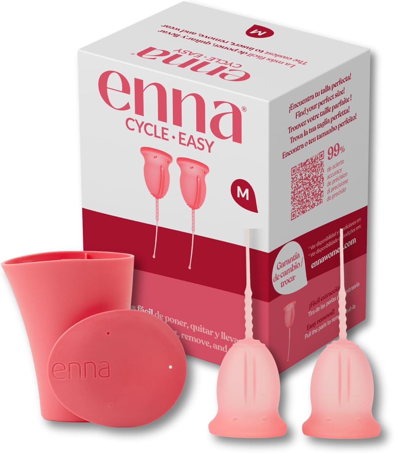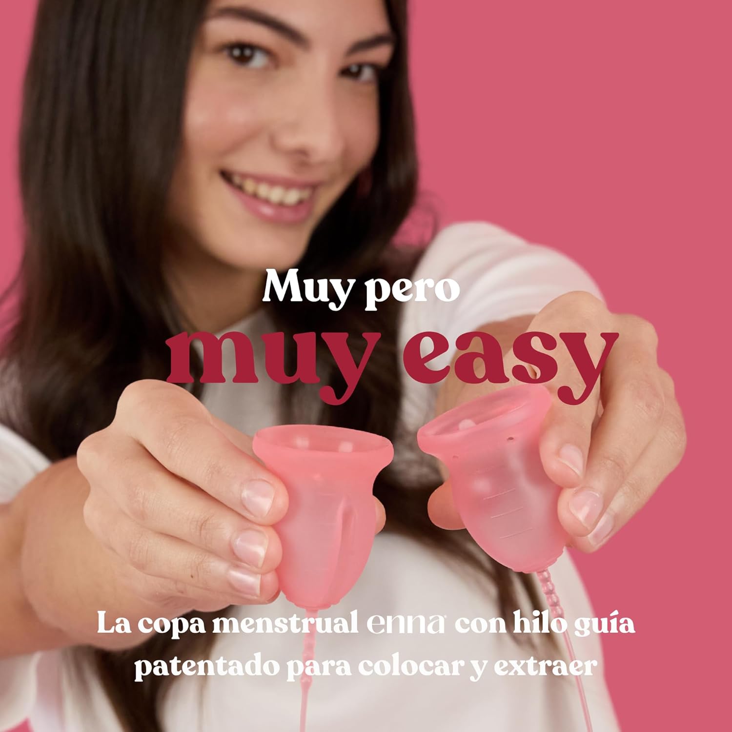 La Enna Cycle Easy Menstrual Cup Size M es ideal para quienes están comenzando a utilizar copas menstruales. Este paquete incluye dos copas y una caja esterilizadora, lo que facilita su limpieza y almacenamiento. La copa está diseñada con tecnología de fácil extracción, que incluye 6 bolas para un mejor agarre y control al retirarla. Está fabricada en silicona médica, un material seguro y biocompatible, que evita la acumulación de bacterias y respeta el equilibrio natural del cuerpo. Además, puede usarse hasta 12 horas seguidas, lo que la convierte en una opción conveniente para el día a día. Algunas características adicionales son: