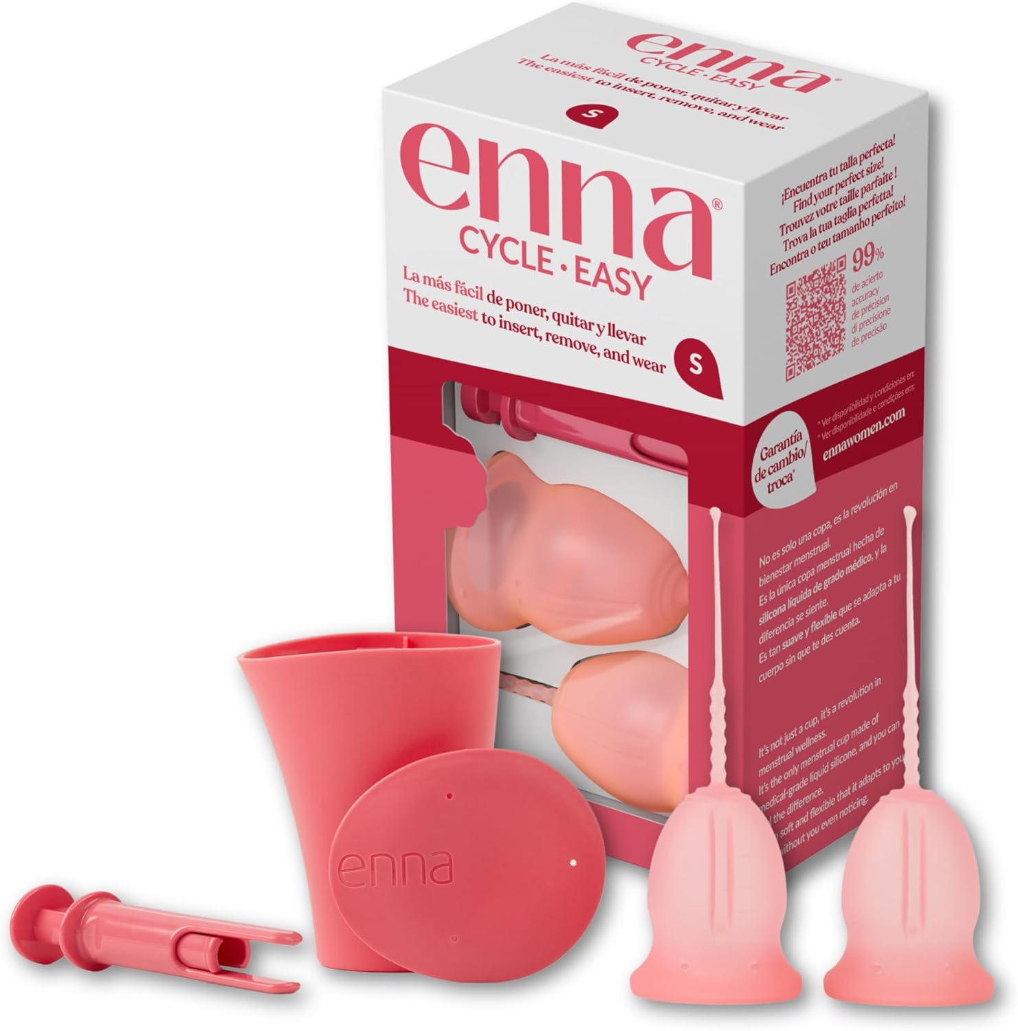 Enna Cycle Easy Menstrual Cup with Applicator Size S – Pack of 2 Cups + Sterilizer Box + Applicator | Medical Silicone | Made in Spain | Reusable | Up to 12 Hours of Protection