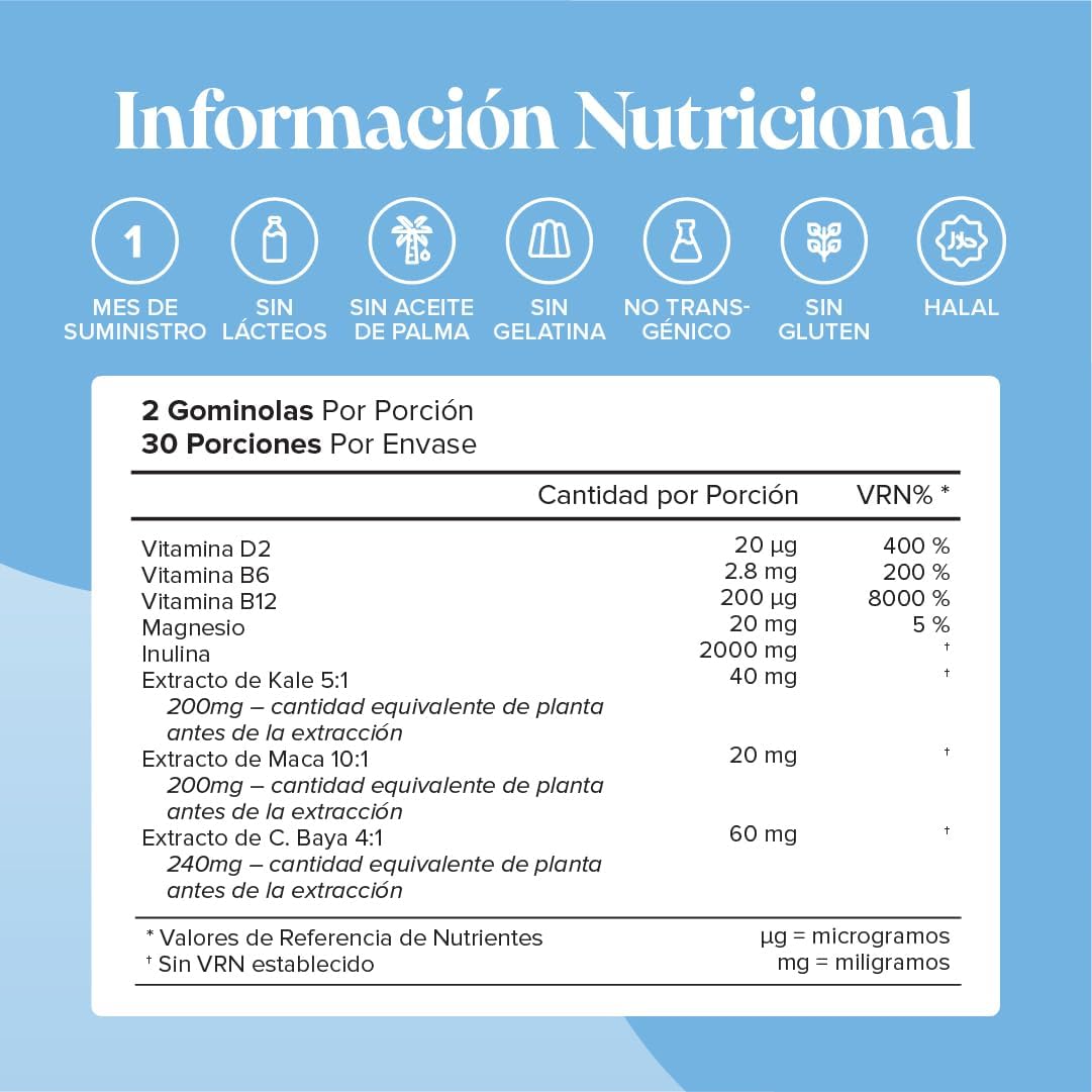 • Contiene ingredientes naturales como maca y repollo