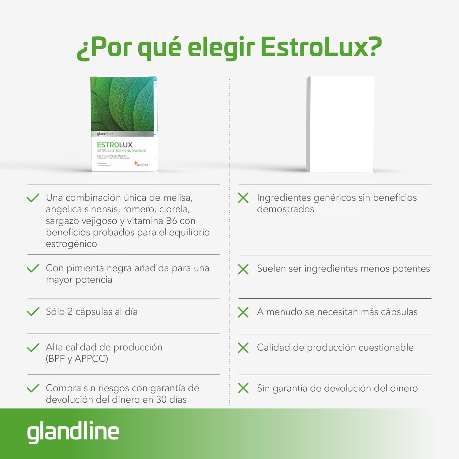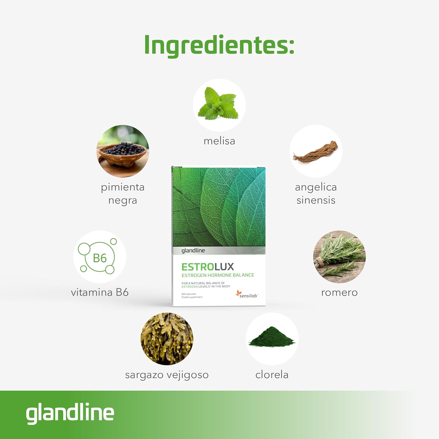 Estrolux Sensilab es un suplemento natural diseñado para ayudar a equilibrar los niveles de estrógeno en mujeres durante la menopausia. Este producto contiene ingredientes como yodo, chlorella, vitamina B6, romero y melisa, que pueden contribuir al bienestar hormonal. Cada frasco contiene 120 cápsulas, suficientes para un suministro de 60 días. Es ideal para quienes buscan un enfoque natural para manejar los síntomas de la menopausia.