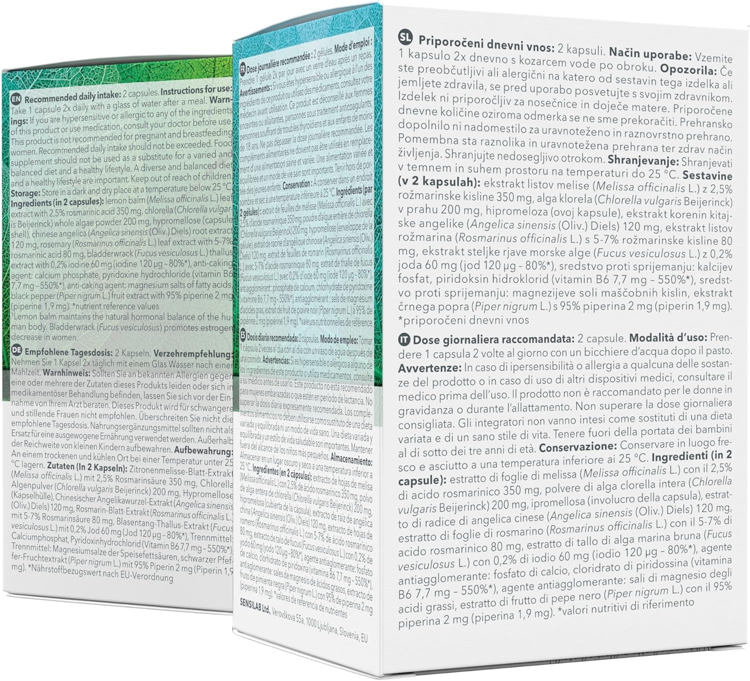 Female Estrogens – Iodine, Chlorella, Vitamin B6, Rosemary, Melissa – Menopause – 120 Capsules for 60 Days – Natural Product that Balances Estrogen Levels – Estrolux Sensilab