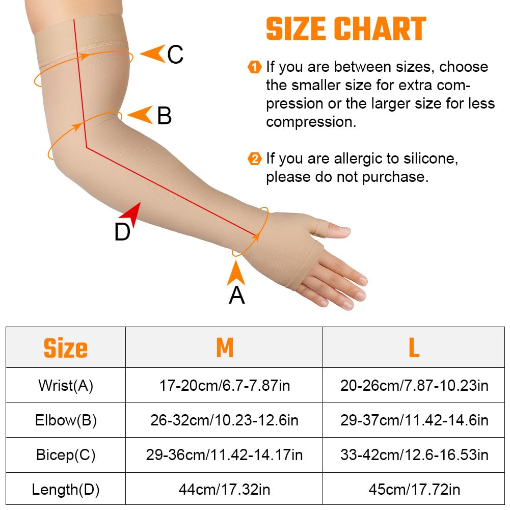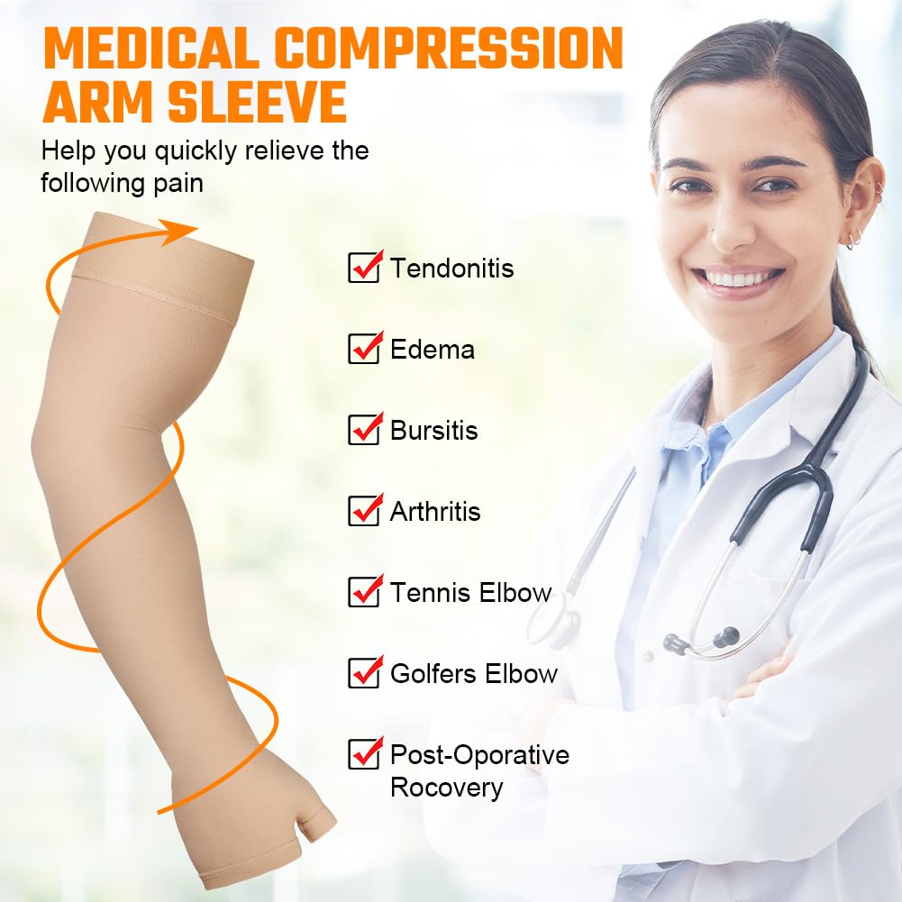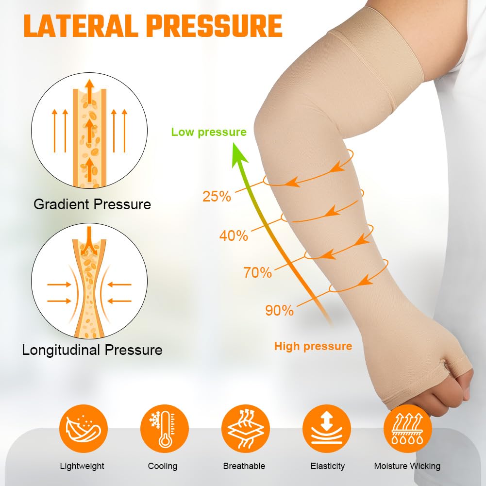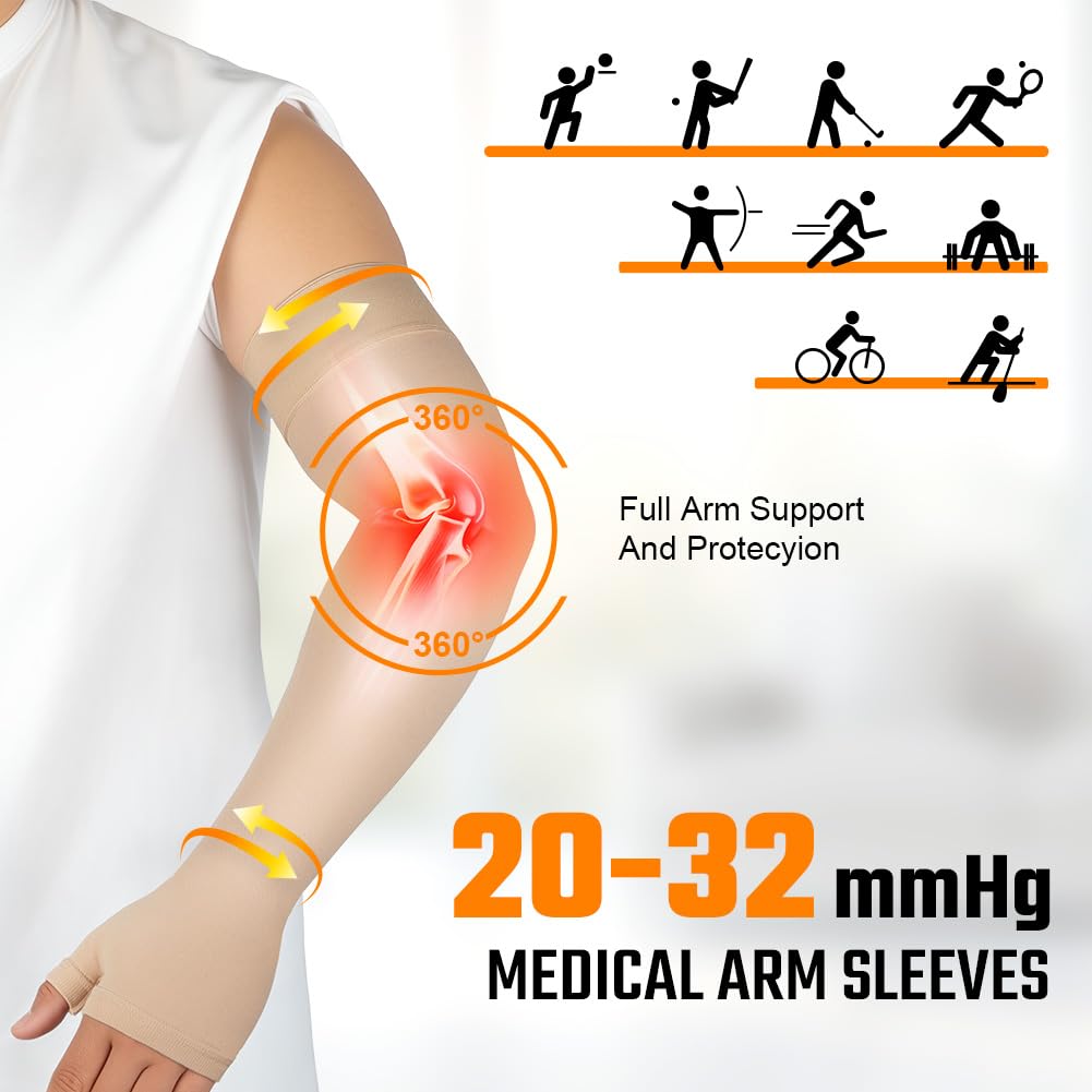 Flintronic Medical Compression Sleeves for Men & Women, Slings & Arm Support, Lymphedema Compression Sleeve 20-30mmHg, for Arm Injuries, Sports (Skin L)
