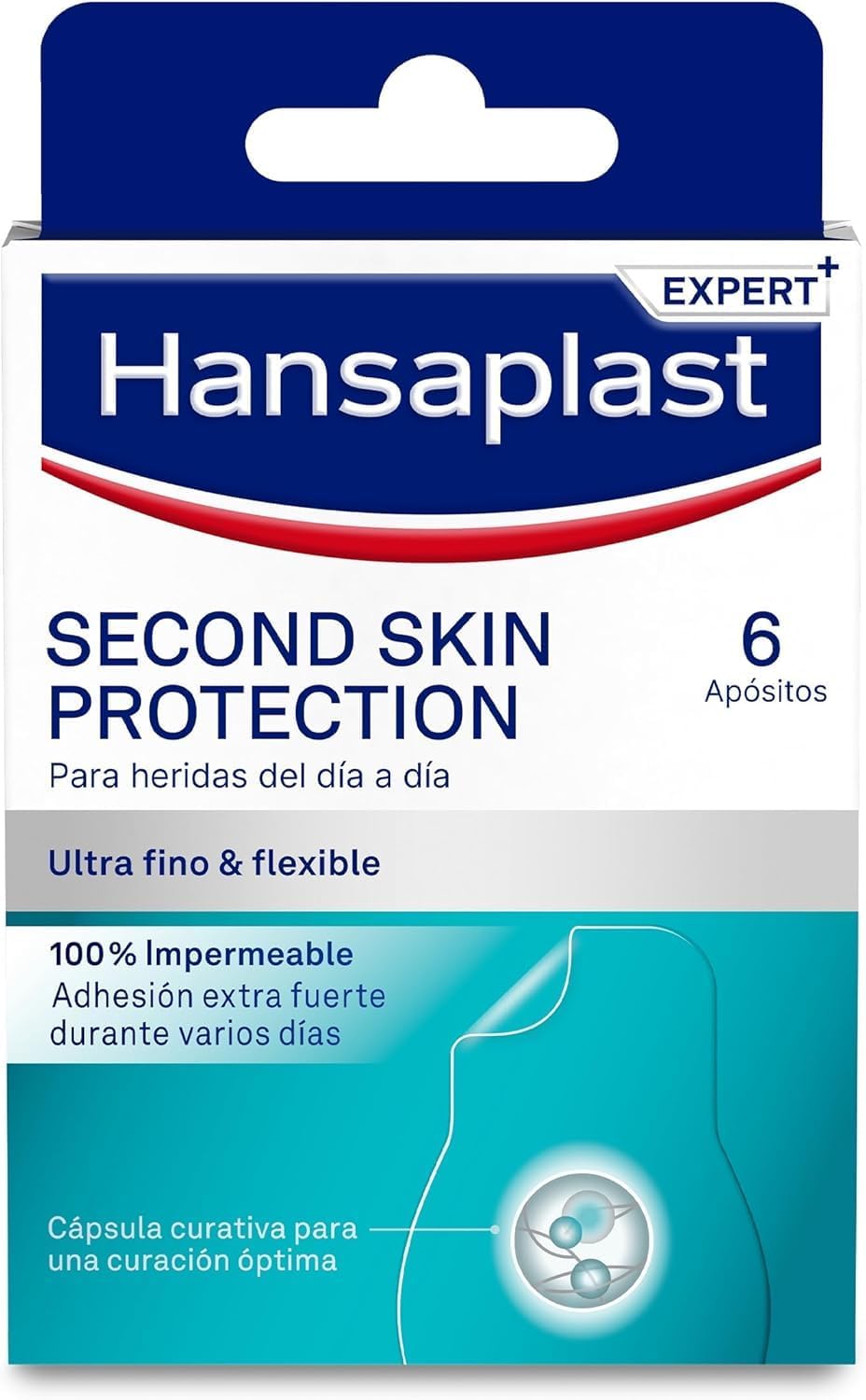 Hansaplast Second Skin Protection Advanced Dressing, Waterproof Dressing, Ultra Thin and Flexible, Strong Adhesion, for Pain Relief and Wound Healing, 6 Pcs
