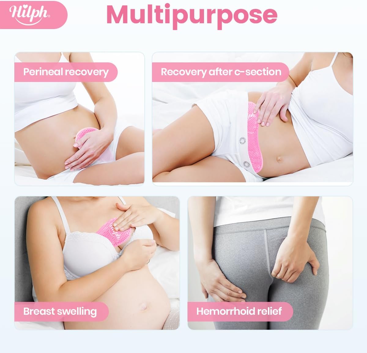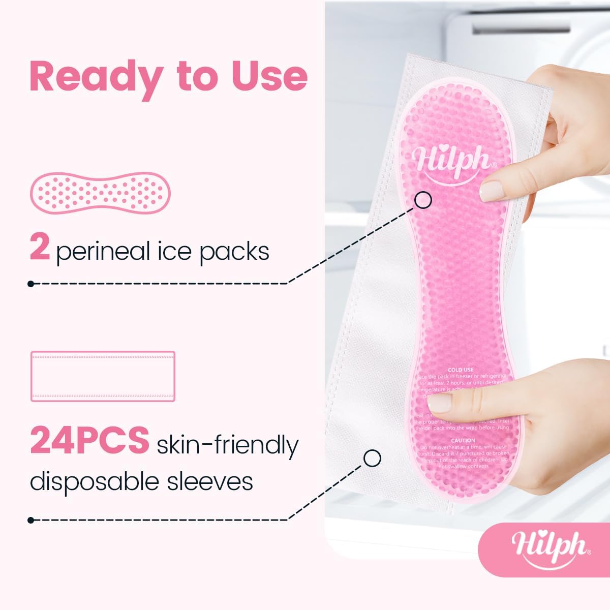 Hilph Cooling Compress for Postpartum Childbirth, 2 Pack Perineal Cooling Pads with 24 Disposable Covers, Vaginal Care, Relieve Pain and Discomfort Postpartum, Pink