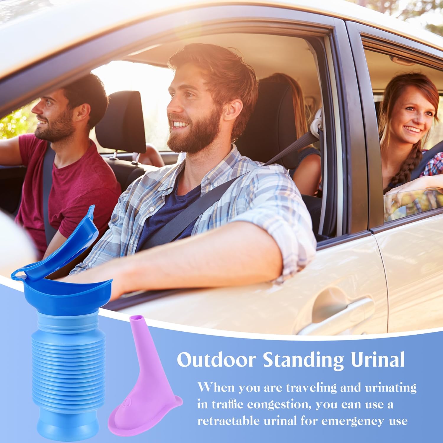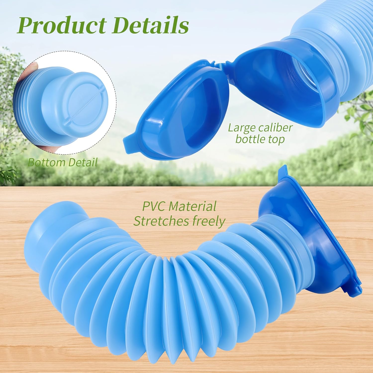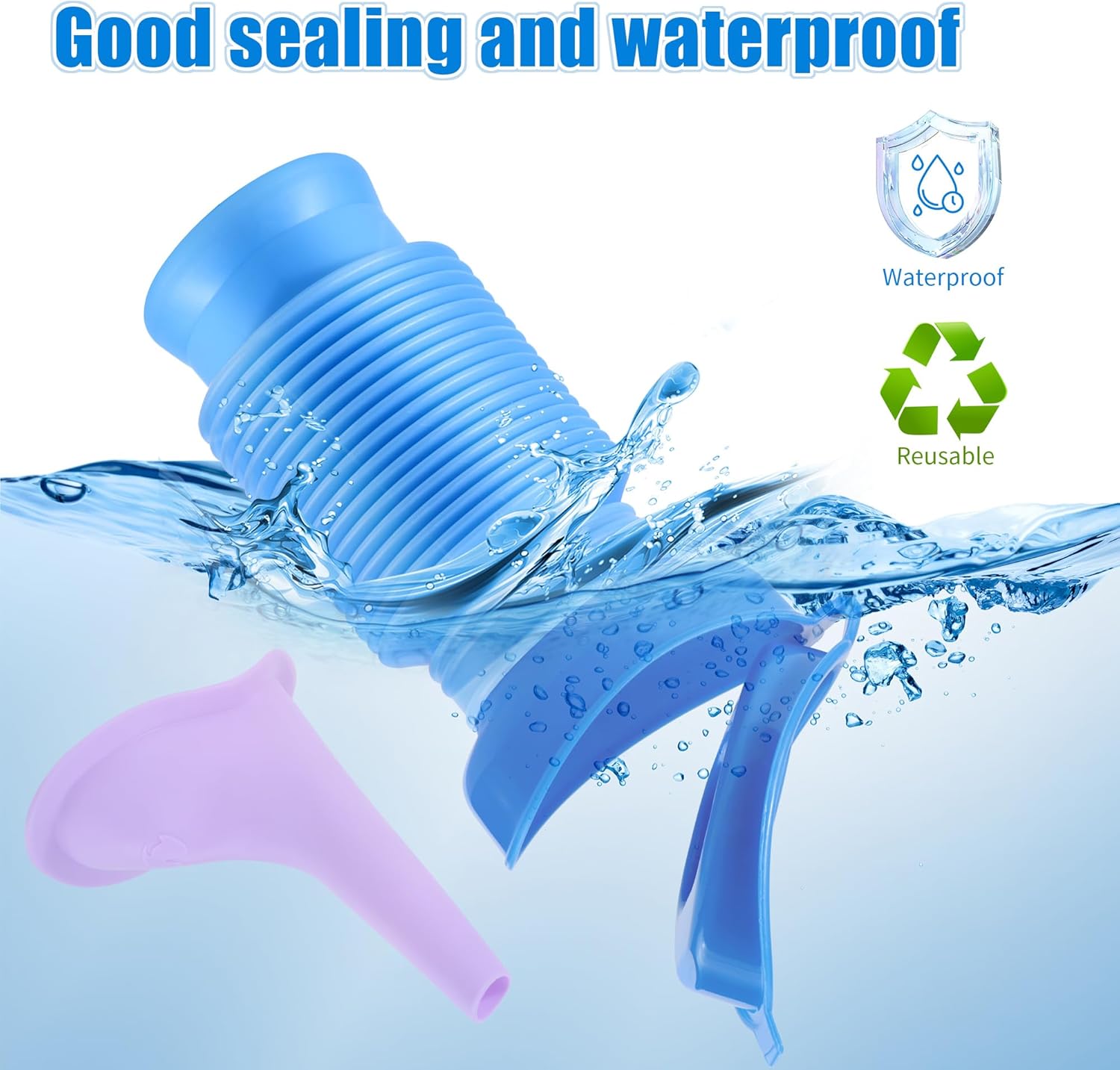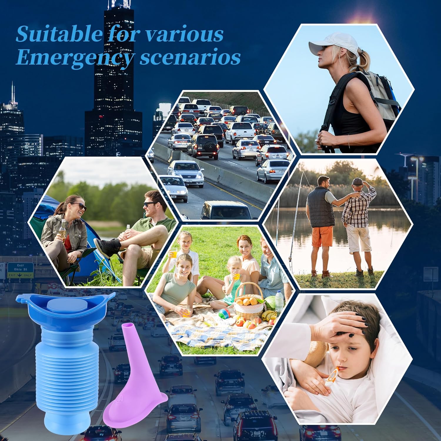 Además, incluye un embudo urinario para facilitar su uso. Es un artículo útil para situaciones de emergencia, especialmente en atascos de tráfico o lugares remotos.