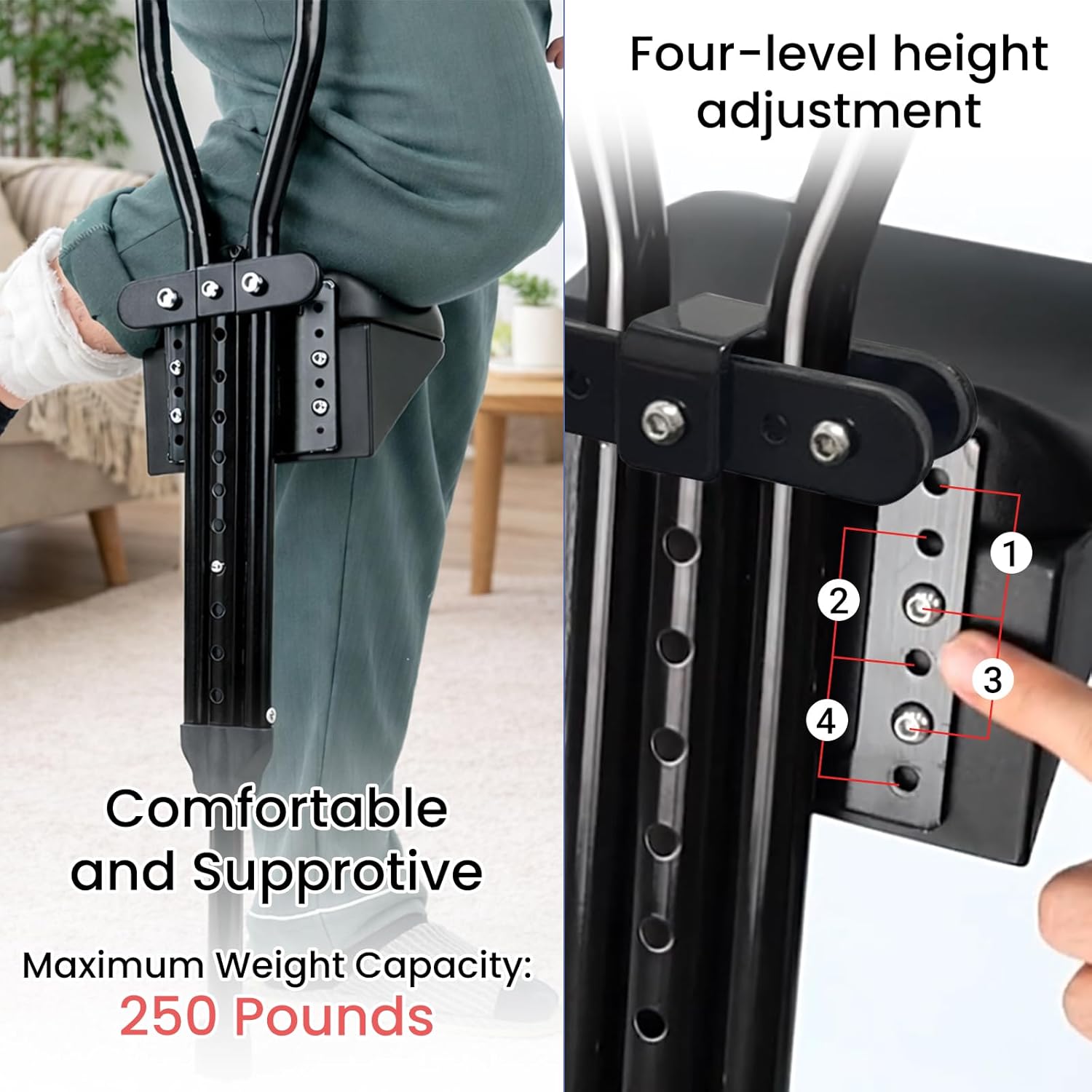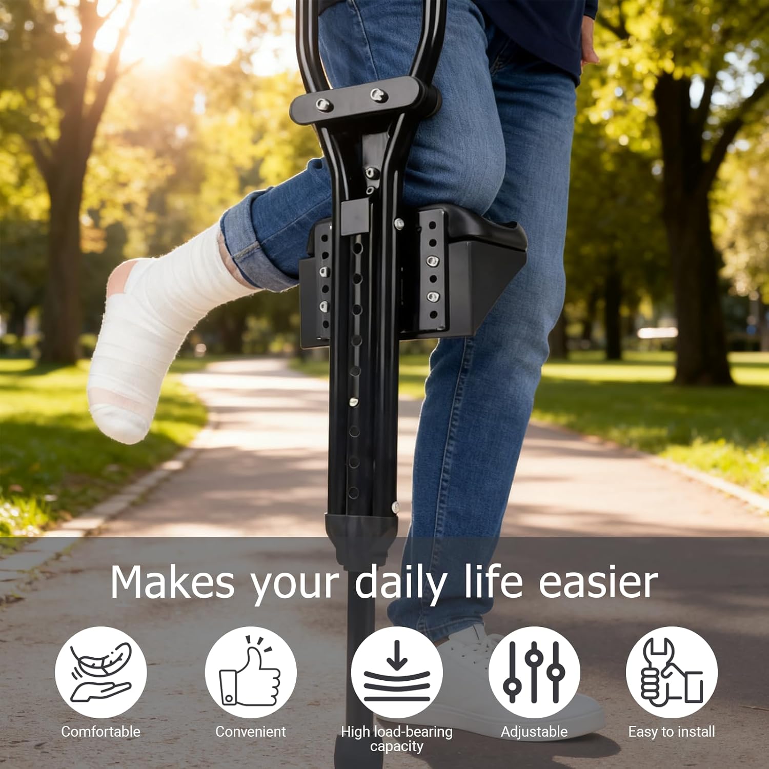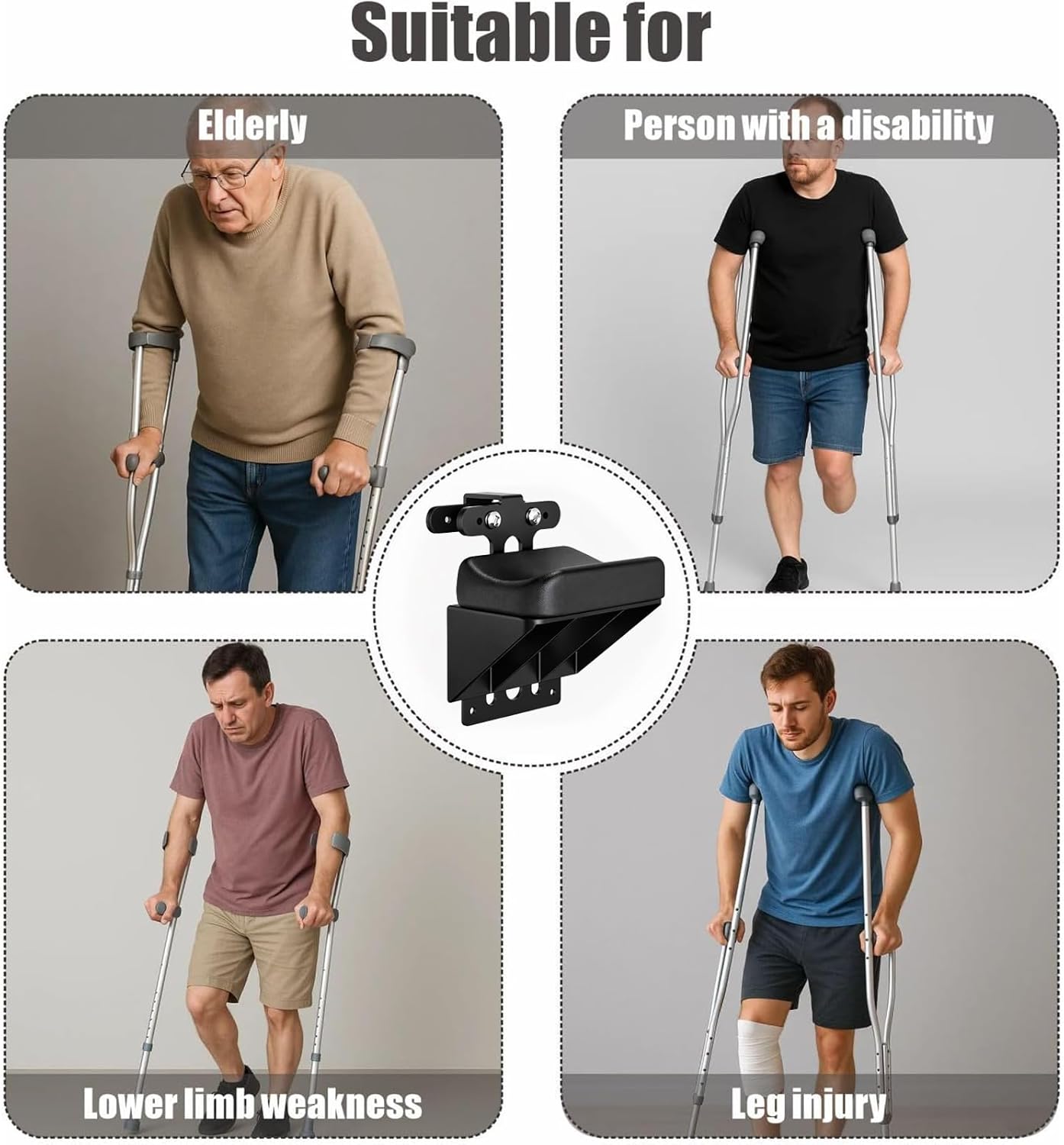 Knee Support for Crutches, Adjustable Leg Support for Post-Surgery Recovery, Comfortable Cushion for Injuries and Fractures