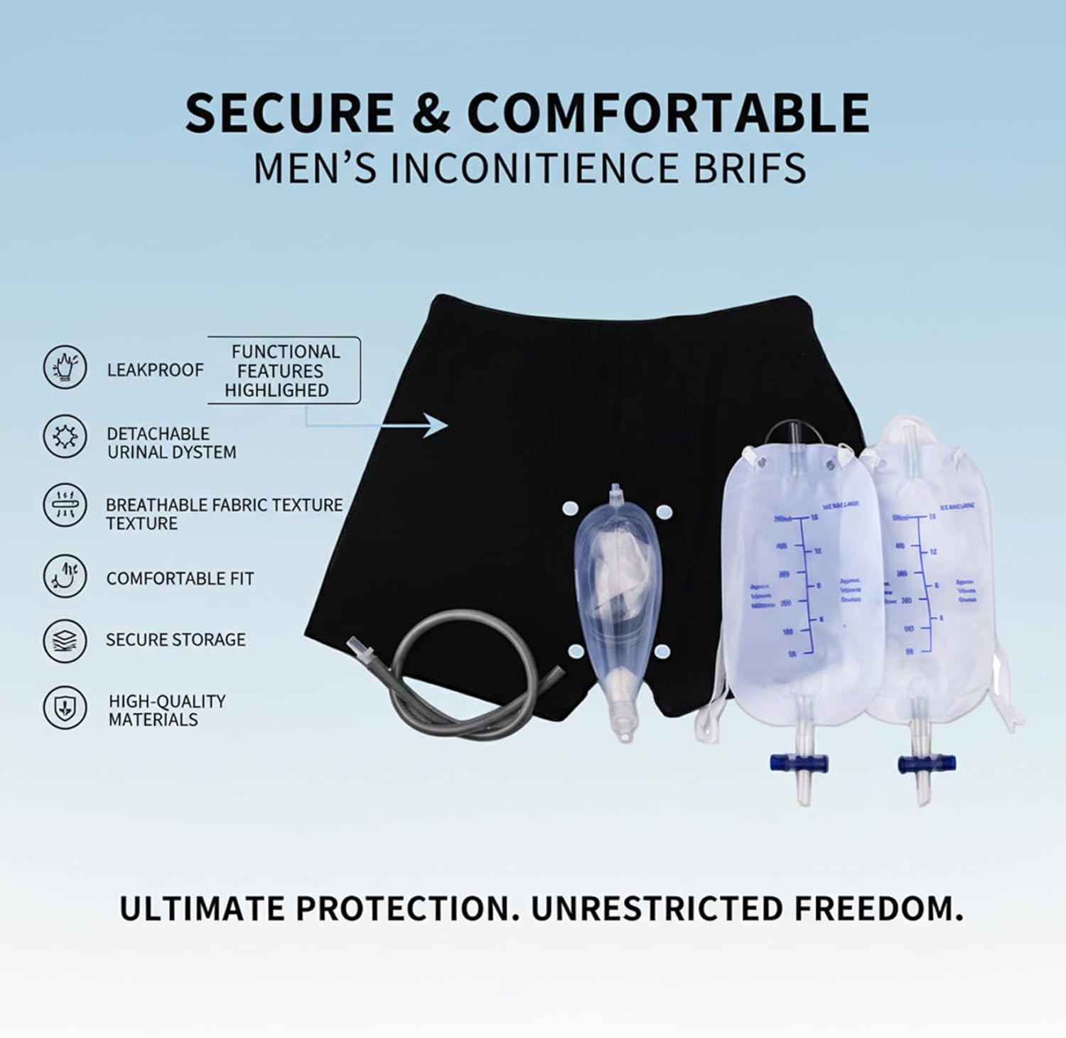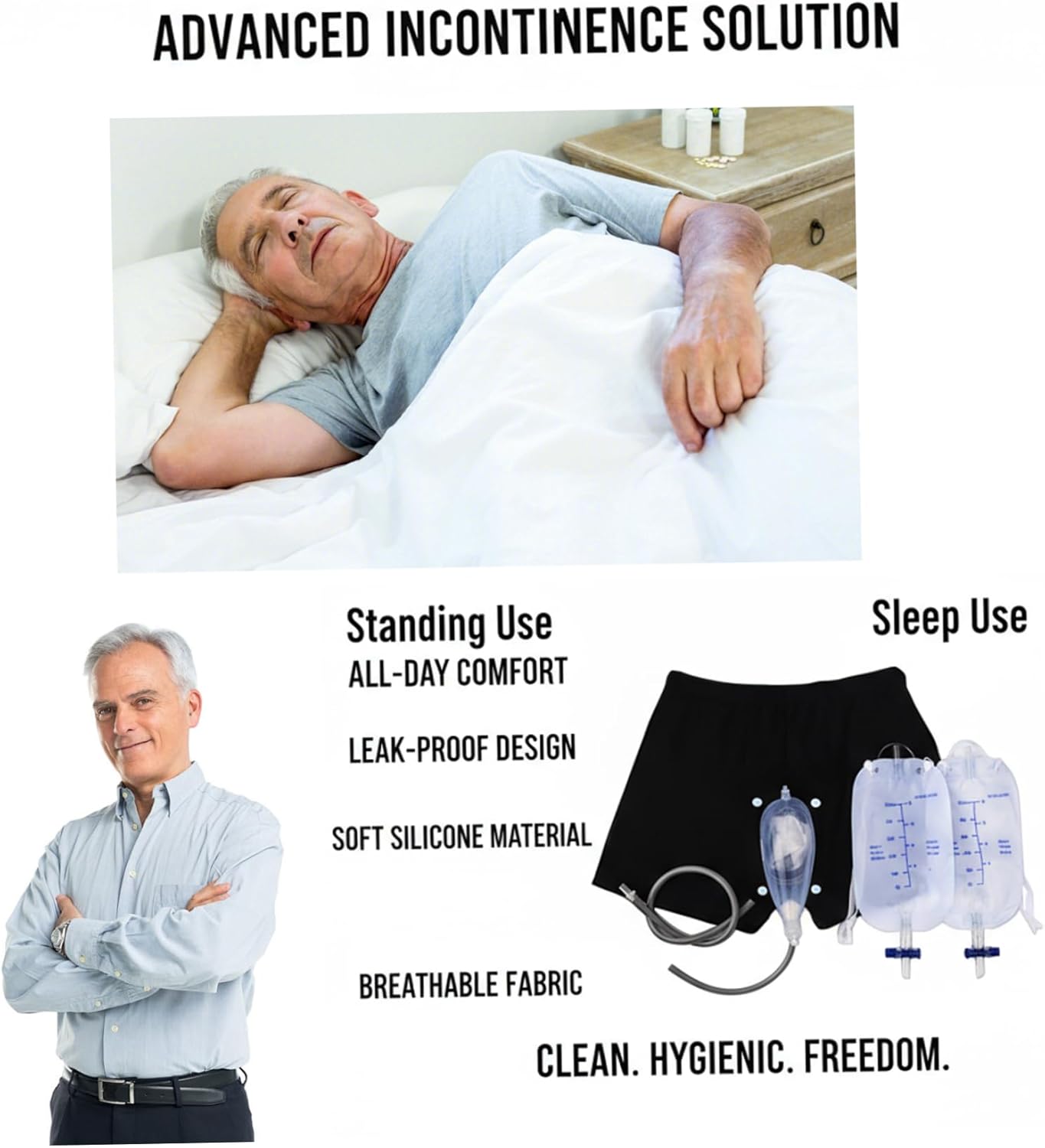 Regain confidence and comfort with this carefully designed male urinal system. It combines a soft silicone outer catheter that fits smoothly with a breathable, supportive undergarment and a convenient leg pouch. This system is designed to provide reliable leak protection, allowing greater freedom of movement and participation in daily life.