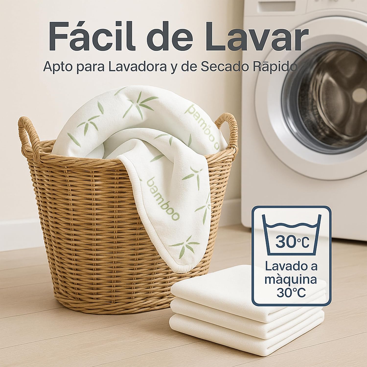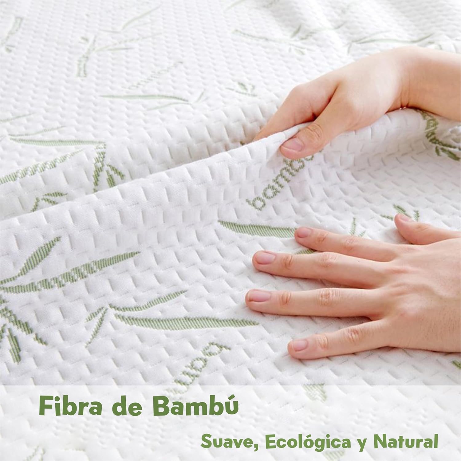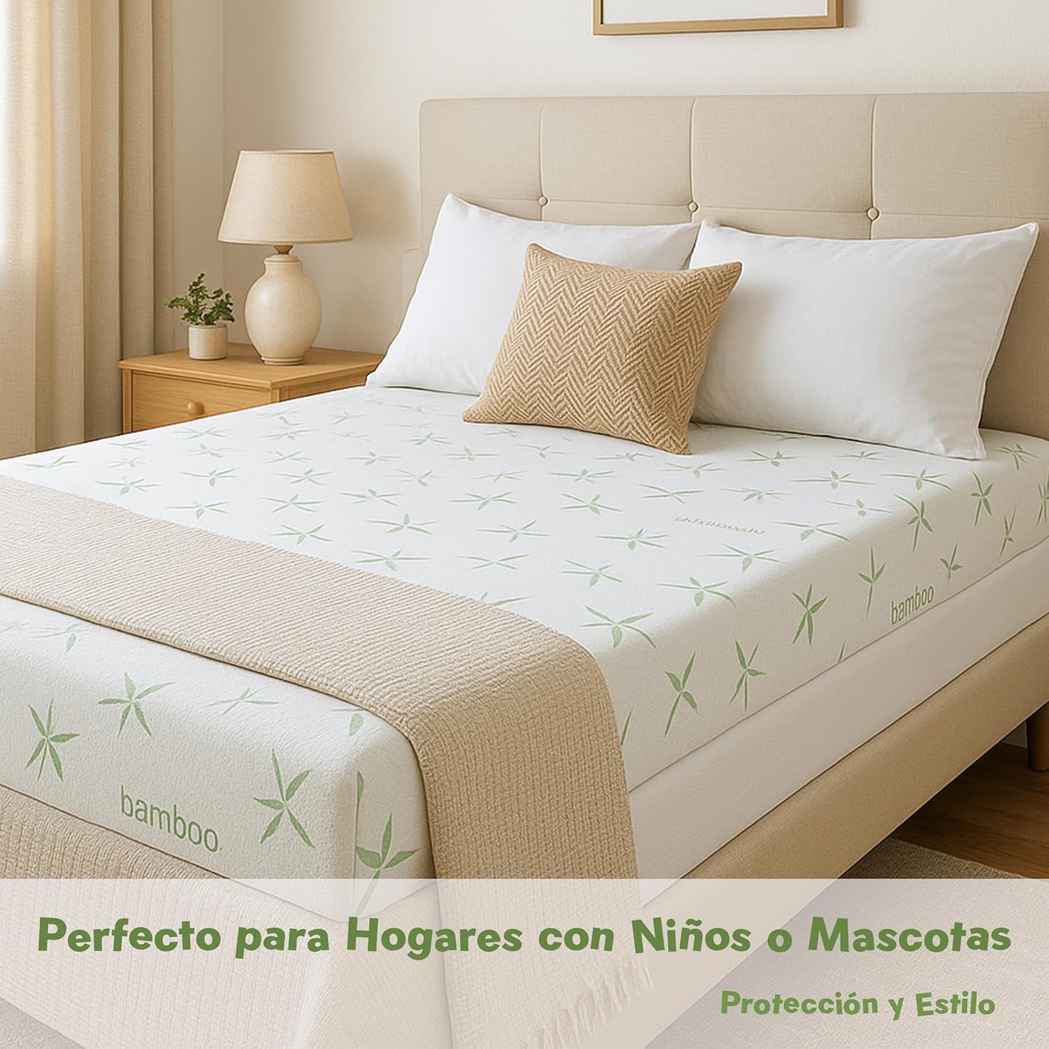 El material está compuesto por un 80% de poliéster y fibra de bambú, lo que lo hace suave y transpirable. Además, es anti-alérgico y anti-ácaros, lo que lo convierte en una excelente opción para quienes sufren de alergias. Su diseño elástico asegura un ajuste perfecto en el colchón.