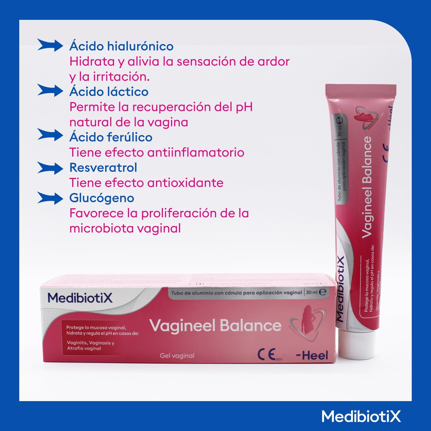 MedibiotiX – Vagineel Balance, with hyaluronic acid, glycogen and lactic acid – Protects, moisturizes and regulates vaginal pH – Vaginal Microbiota Balance and Daily Comfort – Gel with cannula