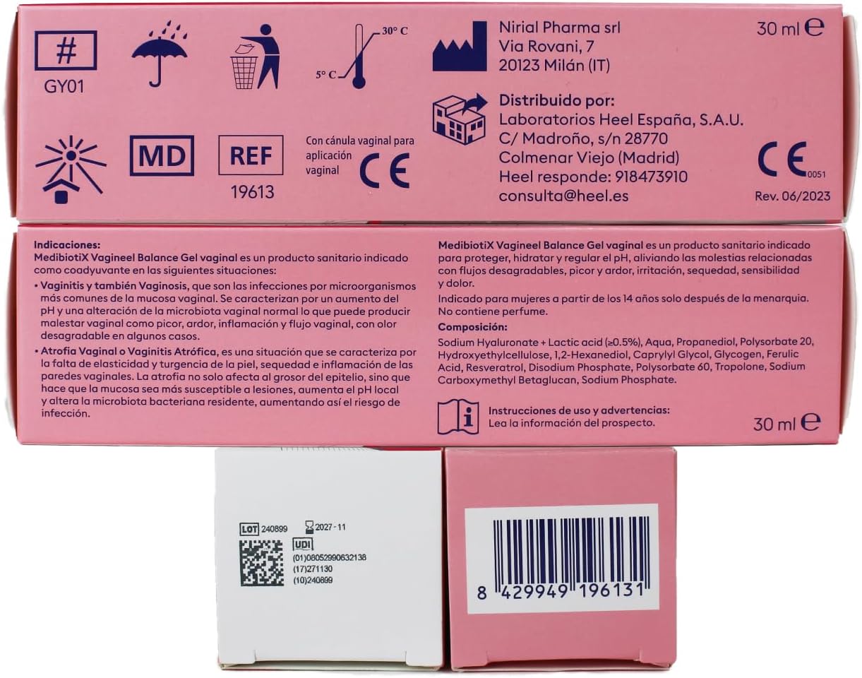 The MedibiotiX Vagineel Balance Gel is designed to protect and moisturize the vaginal area while regulating pH levels. This gel is particularly beneficial for those experiencing discomfort due to conditions such as vaginitis or vaginal atrophy. It contains hyaluronic acid, glycogen, and lactic acid, all of which contribute to maintaining a healthy vaginal microbiota. The product is unscented and comes in a convenient 30ml size, making it easy to use.