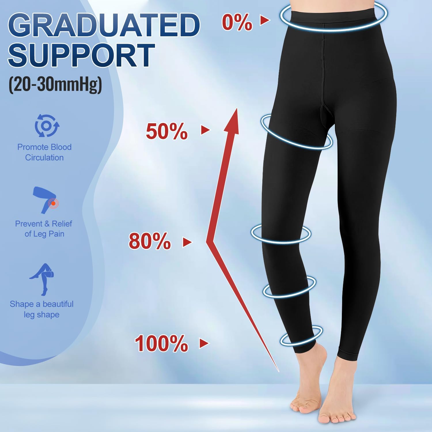 Medical Compression Stockings Women Men Long 20-30 mmHg, Graduated Support Compression Tights, Fingerless Support Stockings Panty Compression for Varicose Veins Edema Flight