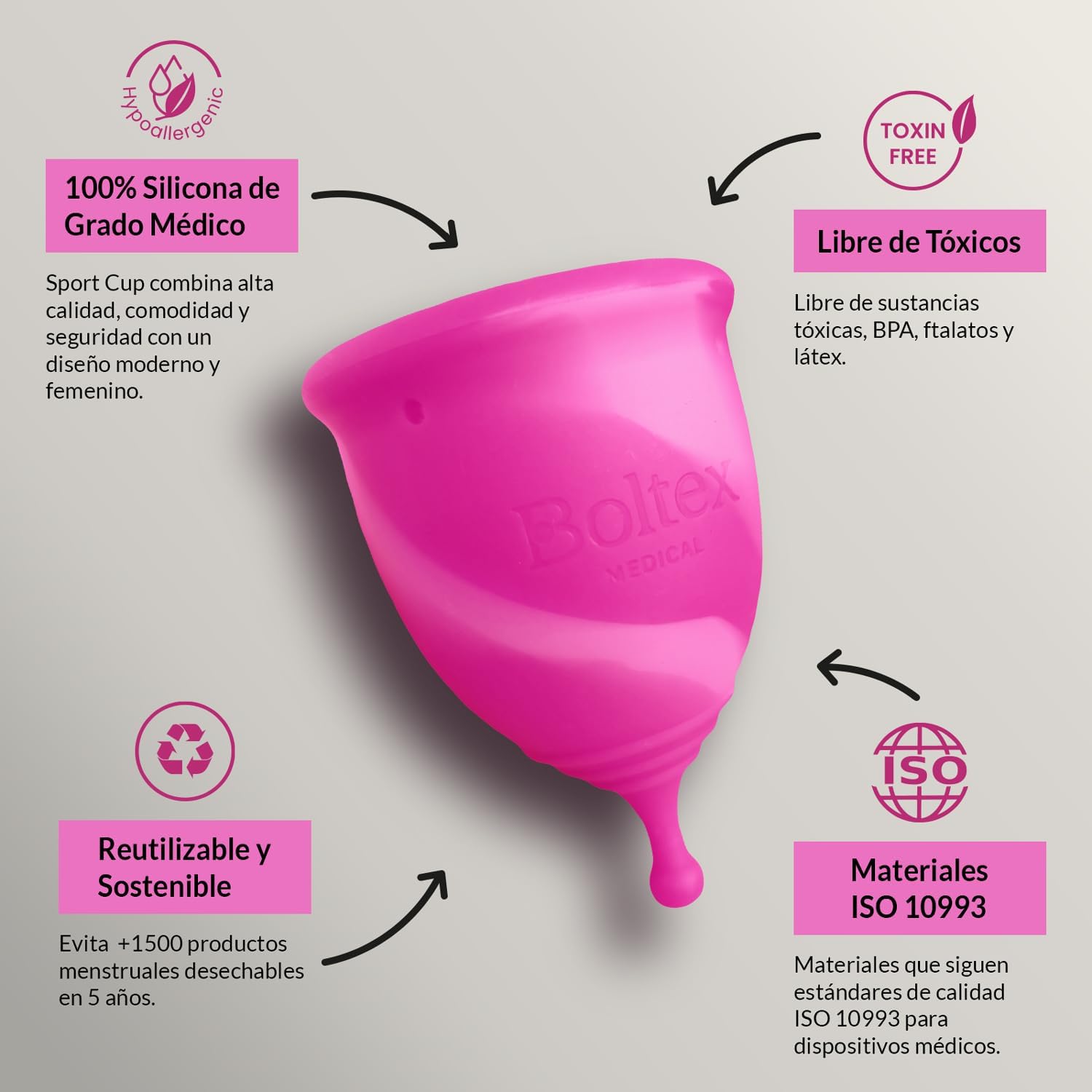 - Contribuye a la reducción de residuos menstruales.