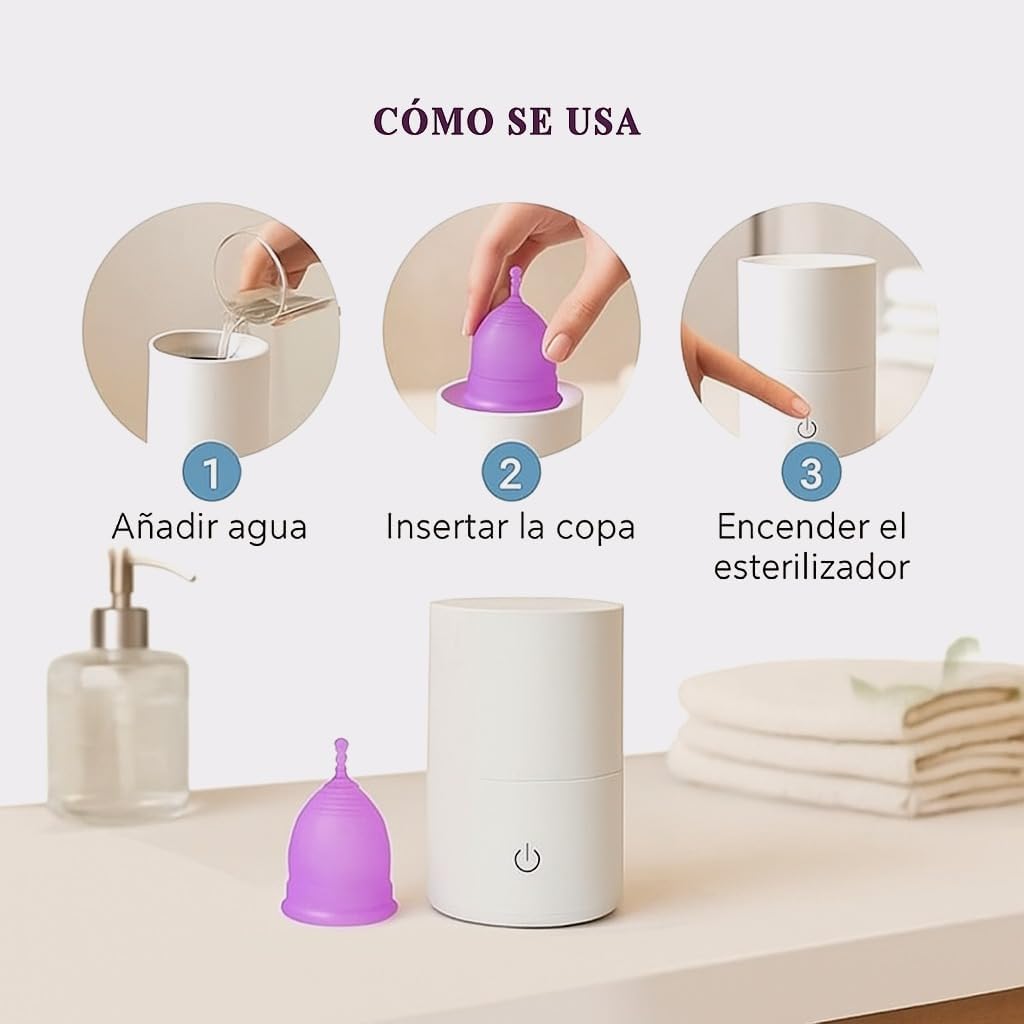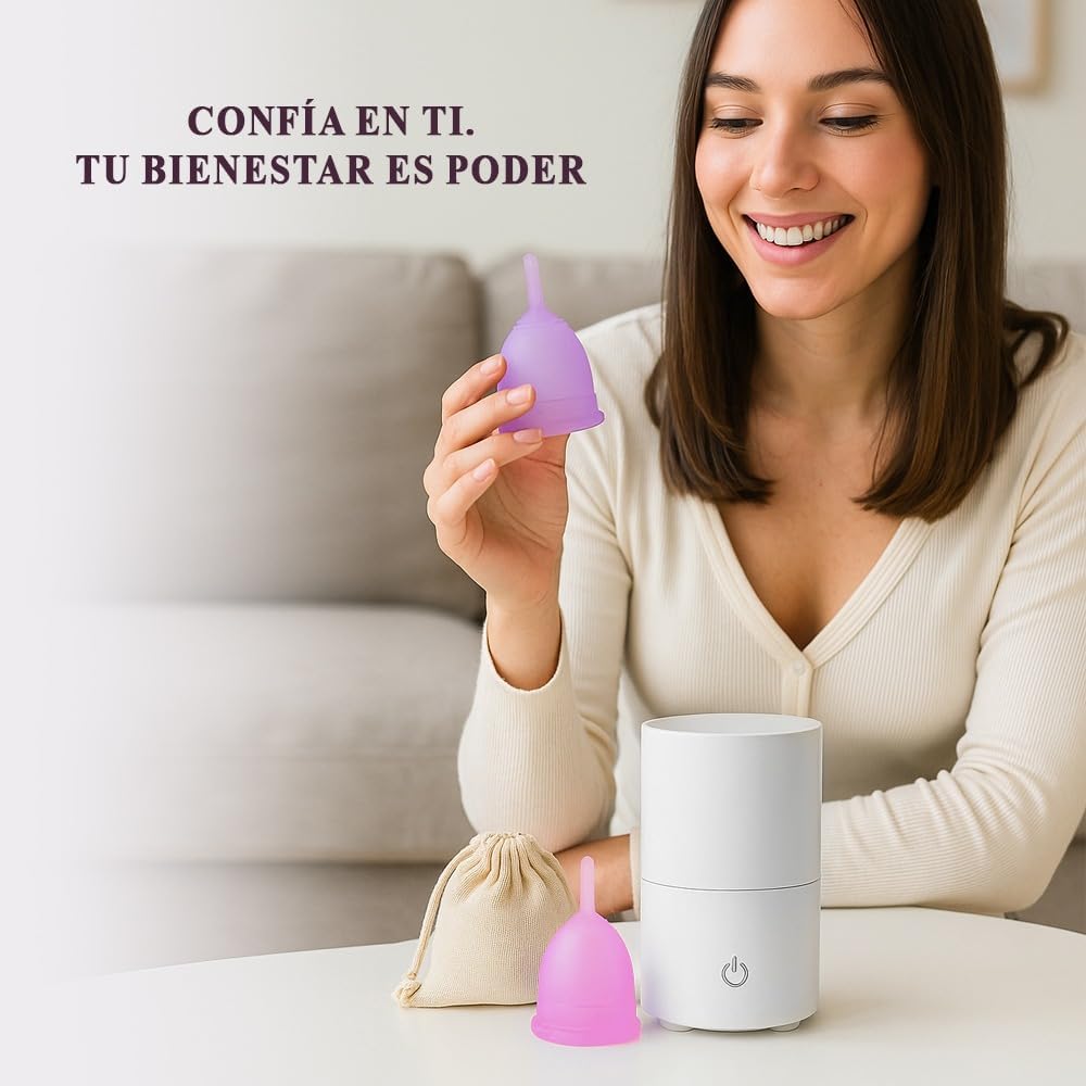 La copa menstrual con esterilizador de vapor es una solución conveniente y ecológica para la higiene menstrual. Este kit incluye dos copas de silicona médica reutilizables, diseñadas para adaptarse cómodamente a tu cuerpo. Con un tamaño compacto de 8 x 8 x 16 cm y un peso de 300 g, es ideal para llevar de viaje. El esterilizador permite una rápida desinfección, asegurando que tus copas estén siempre limpias y listas para usar. Además, son libres de BPA y fáciles de utilizar, lo que las convierte en una opción práctica y segura.