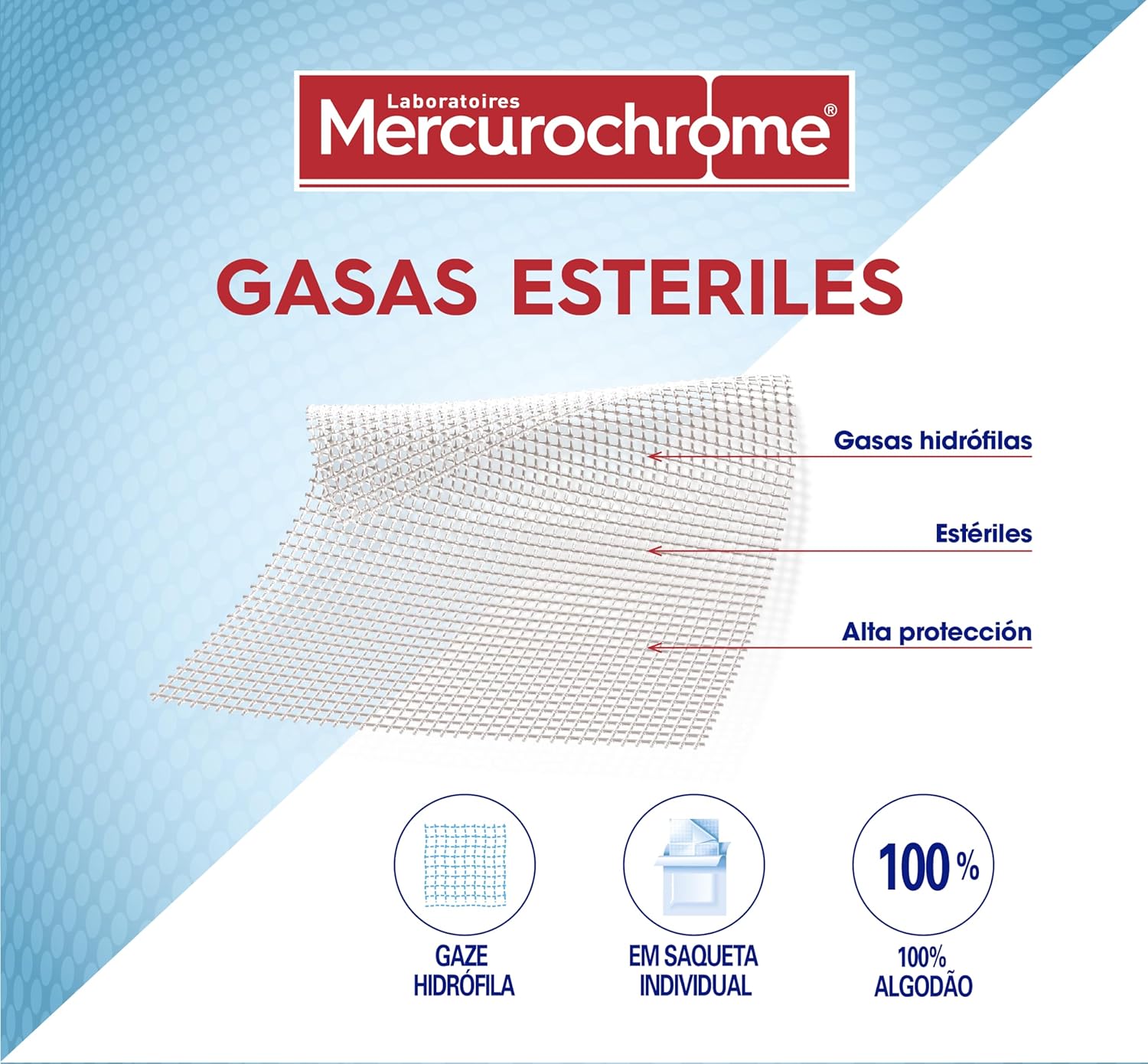 MERCUROCHROME – Sterile Gauze – 60 Gases – 100% Cotton – Individual Envelopes – Hygiene and Wound Care – Protection and Sterility – Breathable – Economy Format – First Aid