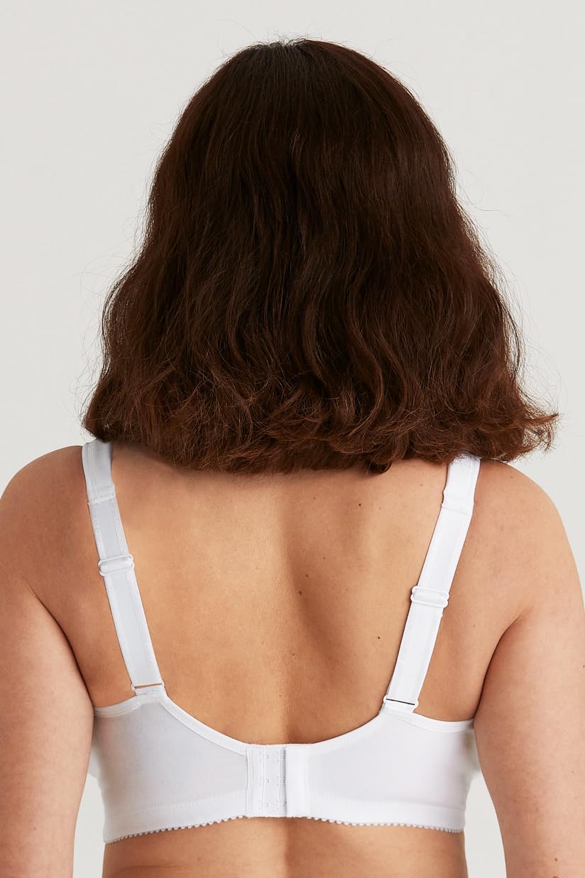 Descubre la comodidad y el estilo con el sujetador de copa completa sin aros Broderie Anglaise de Miss Mary. Este sujetador está diseñado para ofrecer soporte y forma a tus pechos sin la incomodidad de los aros tradicionales. Con un escote alto y copas completas, proporciona una excelente cobertura. Las características incluyen: