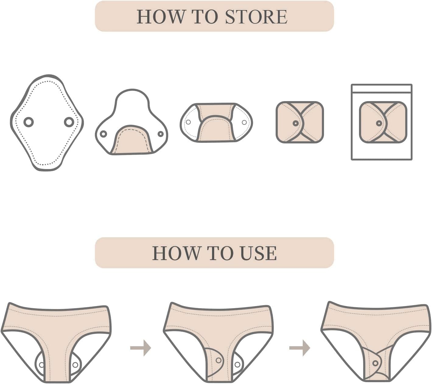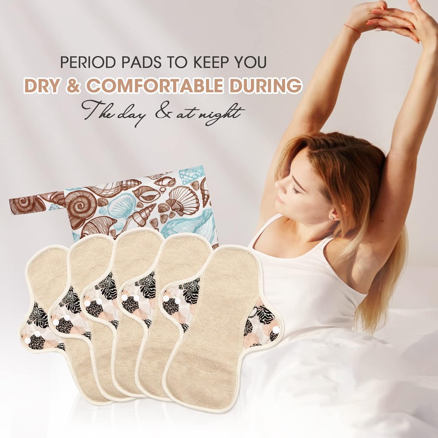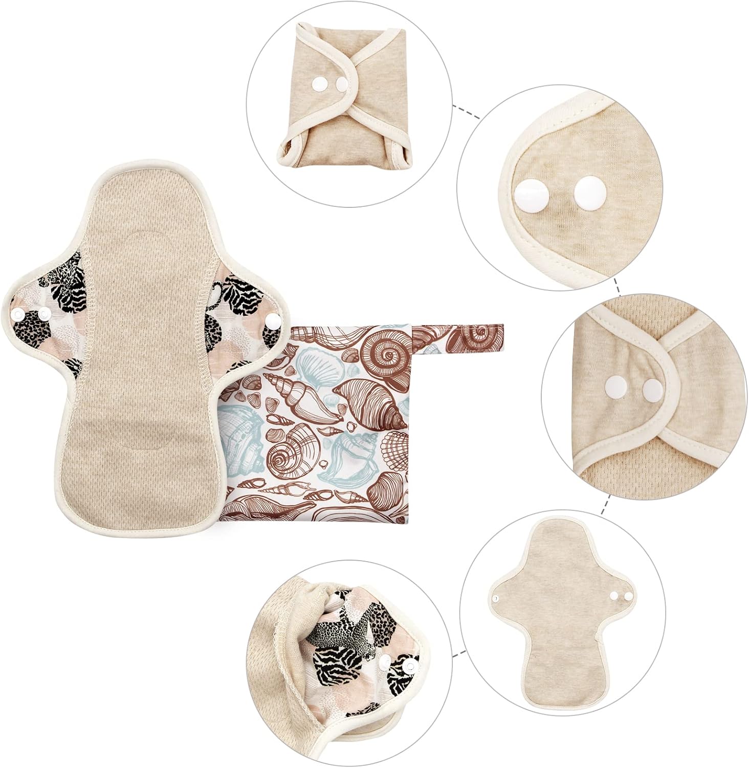 MQUPIN Reusable Sanitary Towels, 5pcs Washable Cloth Pads Sanitary Towel Organic Cotton, Sanitary Pads Cotton Period Pads Pantiprotectores Design Anti-Leak Women