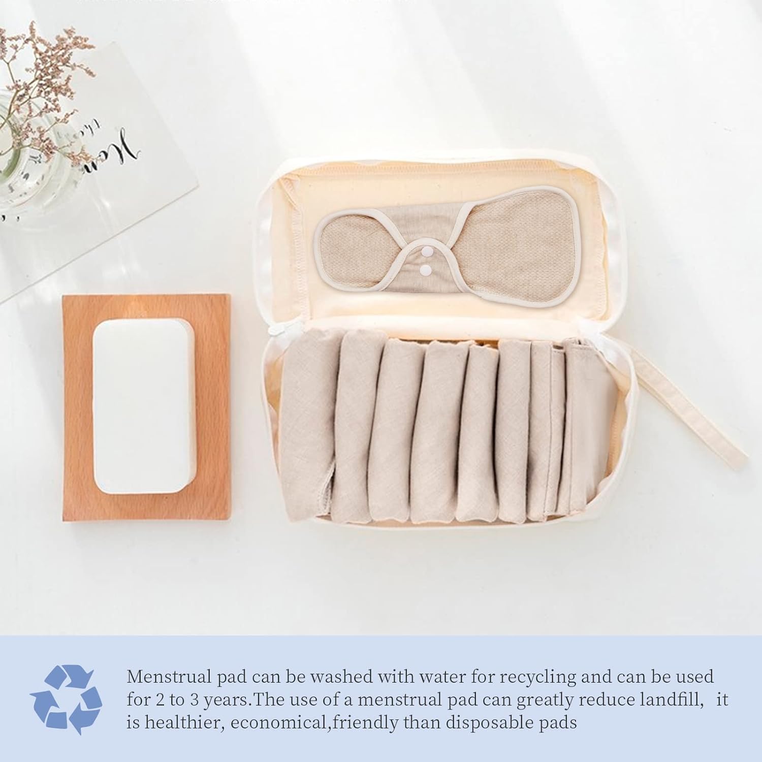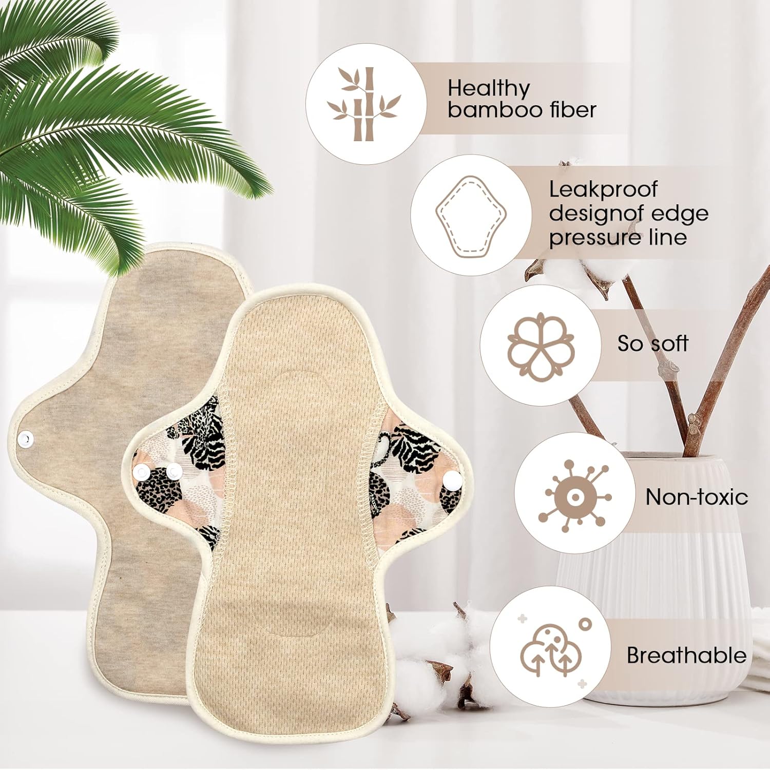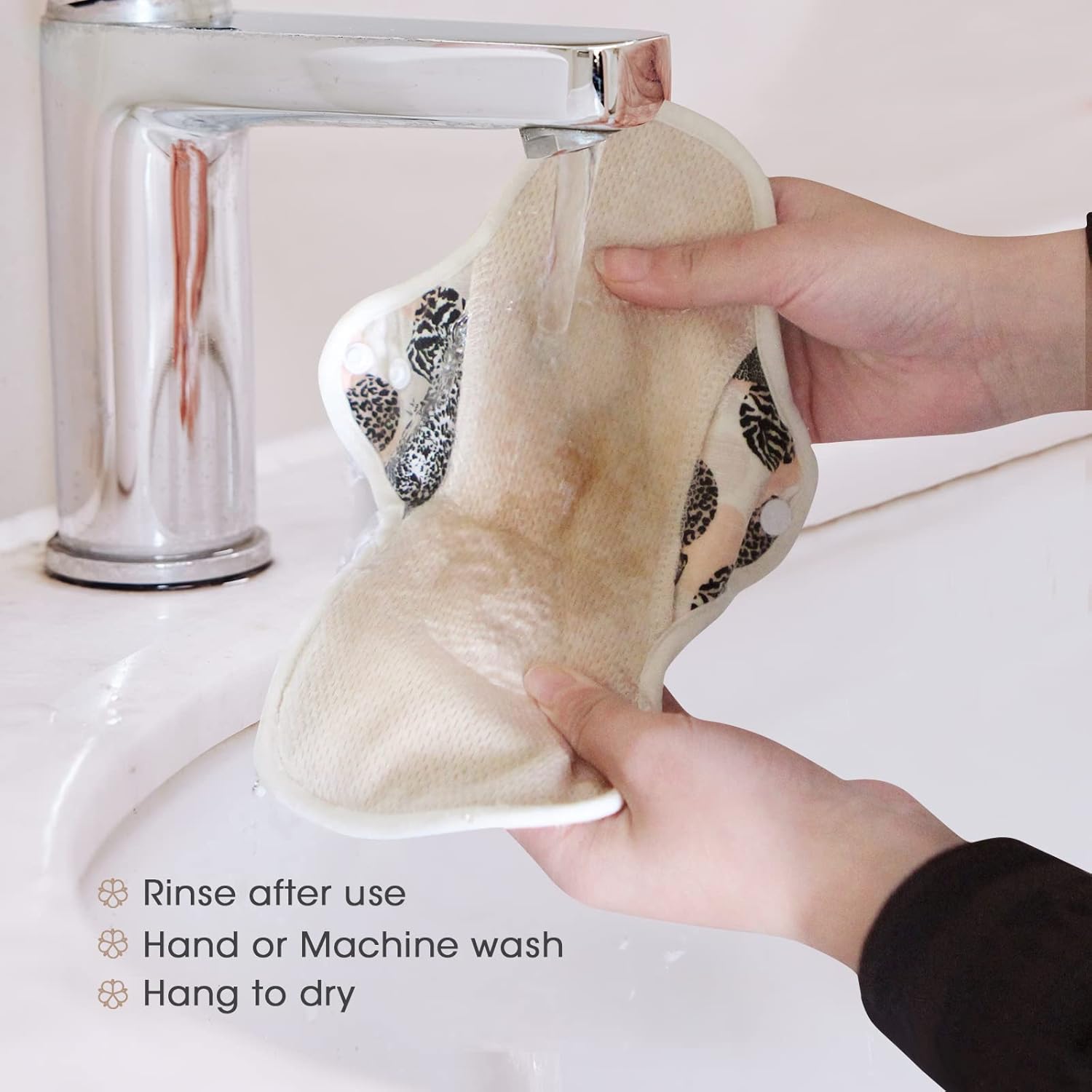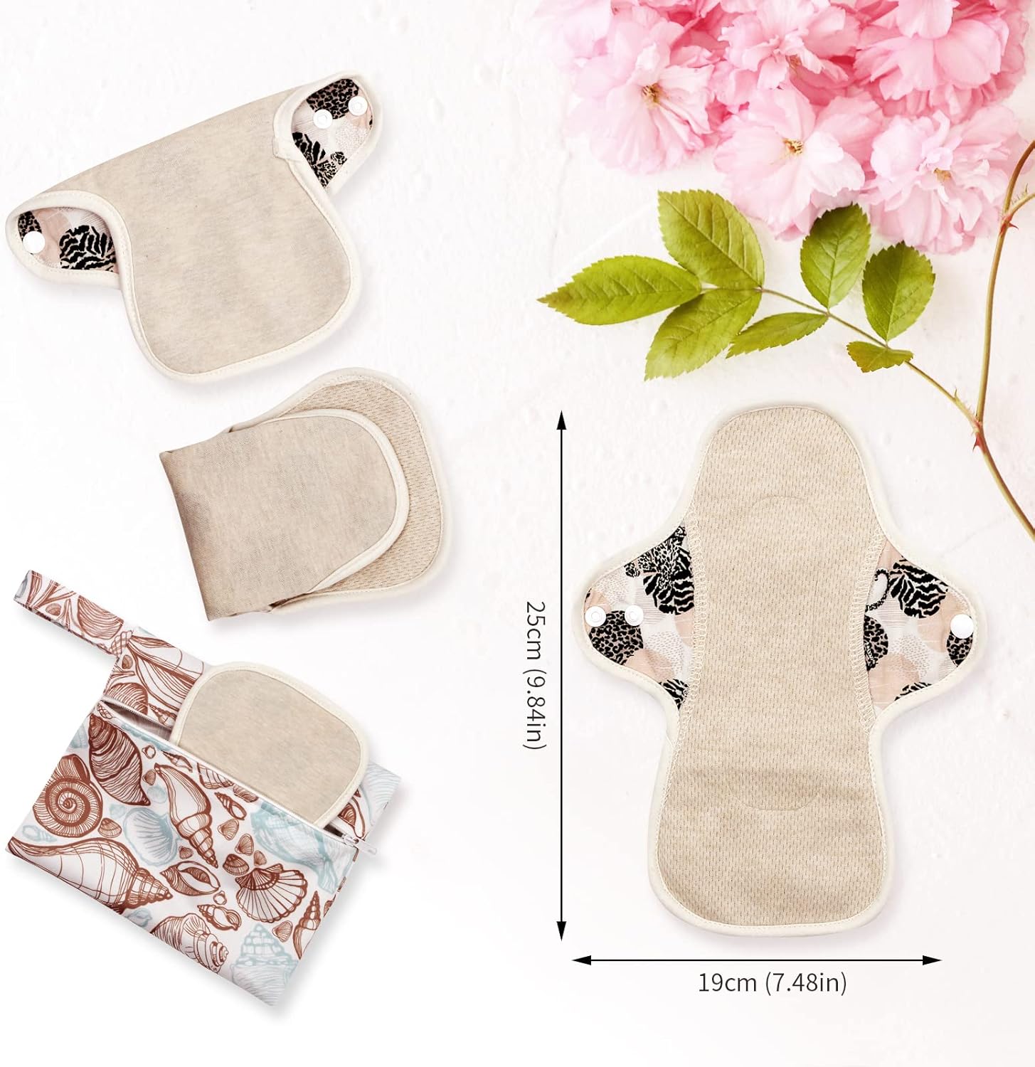 MQUPIN Reusable Sanitary Towels, 5pcs Washable Cloth Pads Sanitary Towel Organic Cotton, Sanitary Pads Cotton Period Pads Pantiprotectores Design Anti-Leak Women
