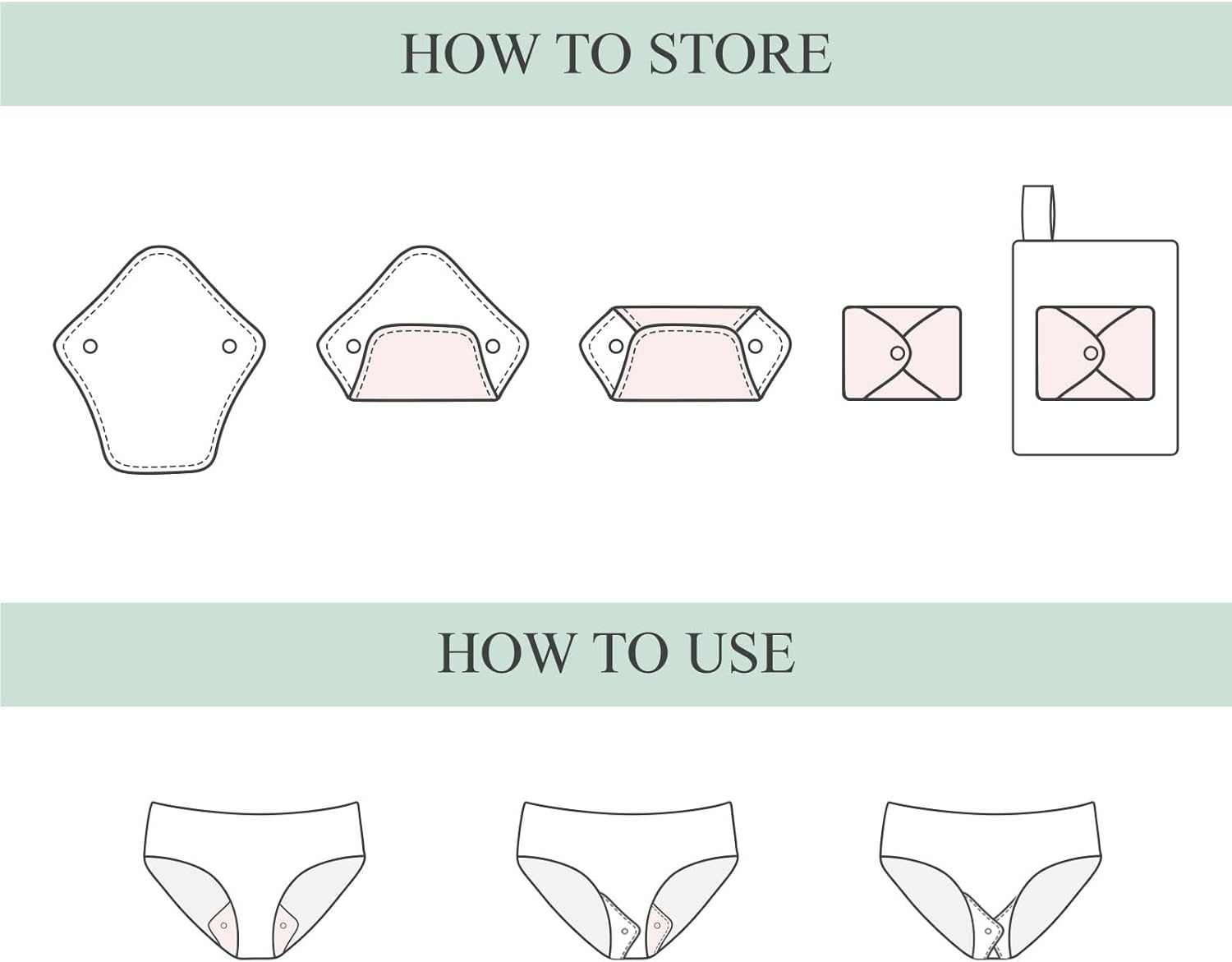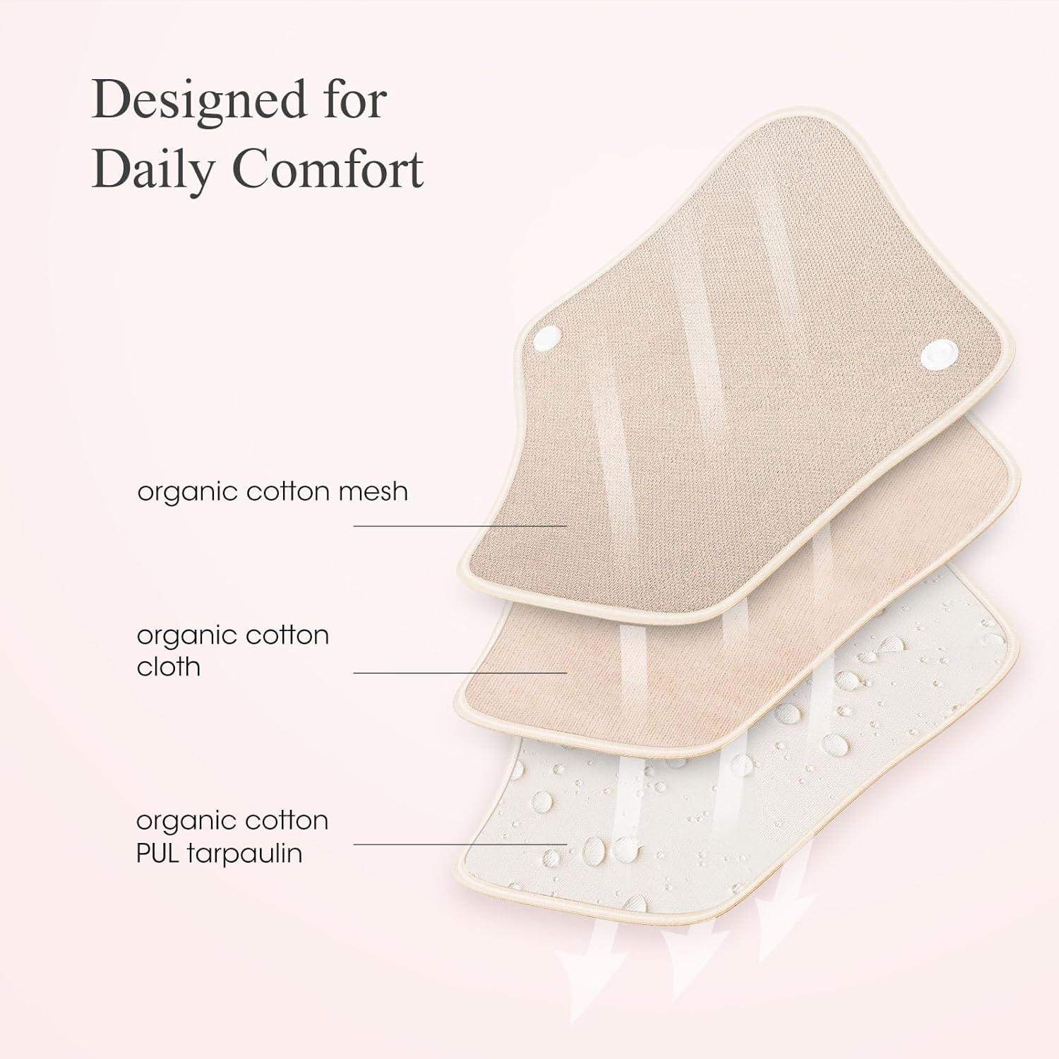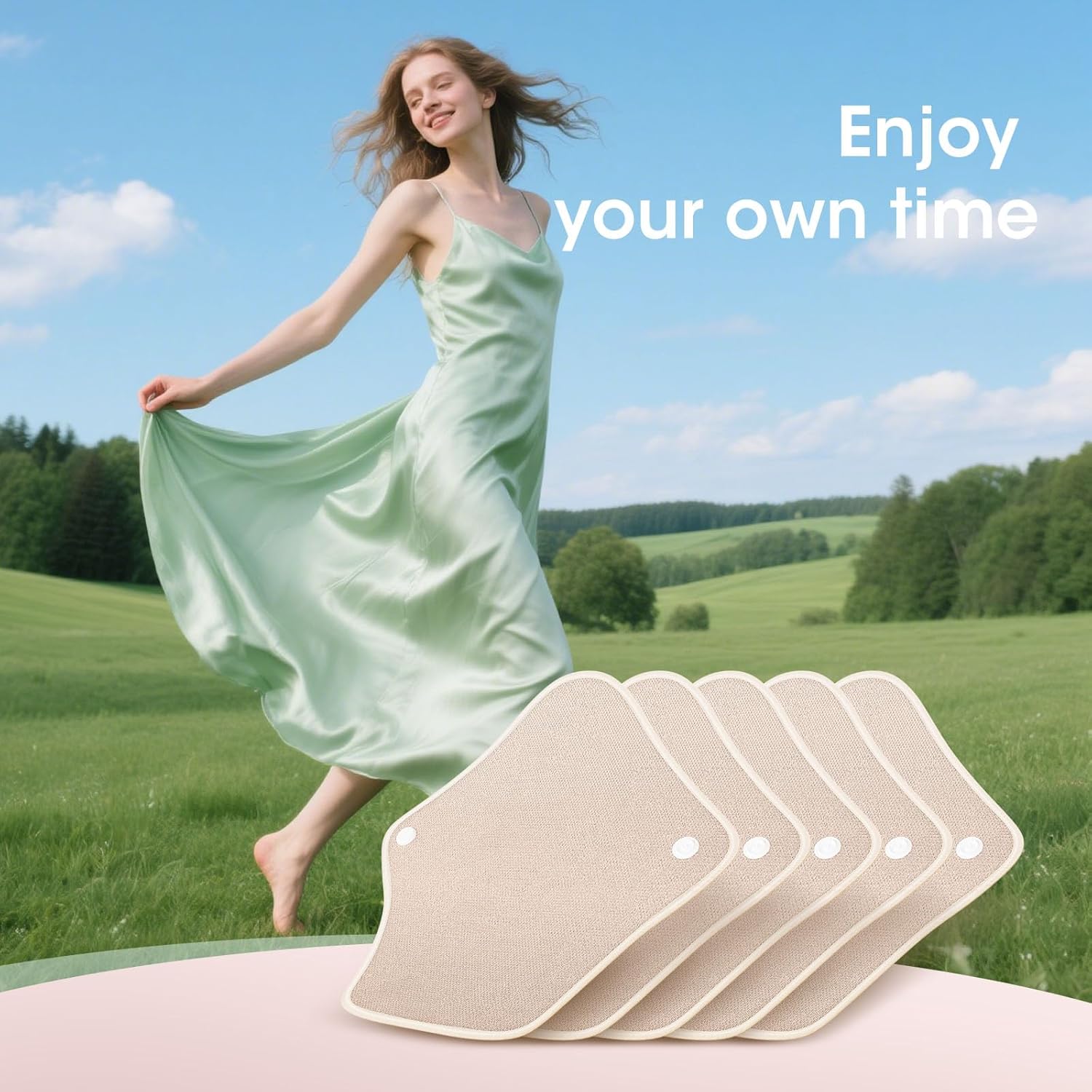 MQUPIN Reusable Sanitary Towels, 5pcs Washable Cloth Pads Sanitary Towel Organic Cotton, Sanitary Pads Cotton Period Pads Pantiprotectores Design Anti-Leak Women