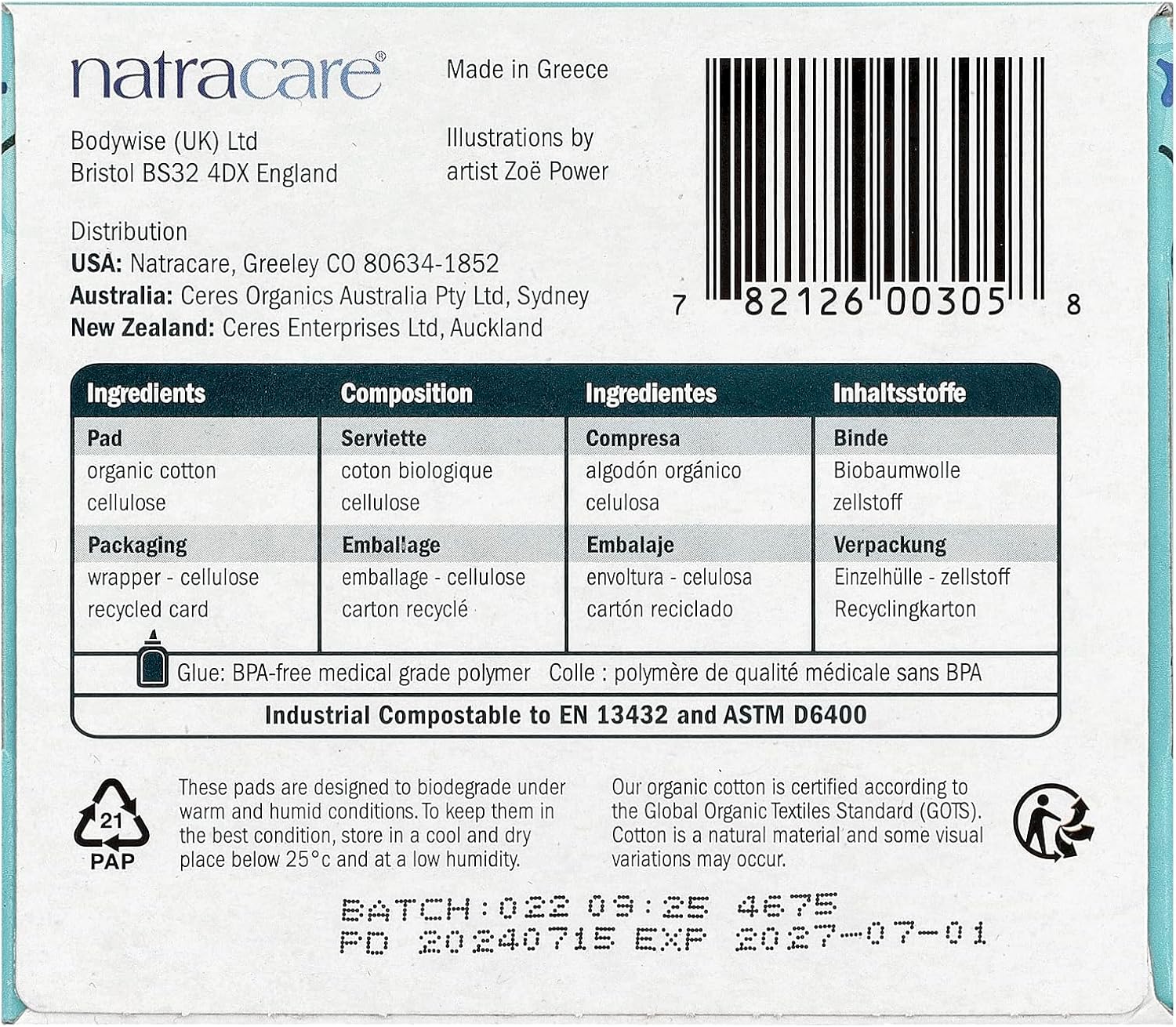 Natracare - Ultra Regular Pads with Wings son una opción natural y segura para el cuidado menstrual. Diseñadas especialmente para flujos menstruales bajos, estas compresas son ideales para quienes buscan productos sin plásticos ni químicos. Hechas con materiales suaves y transpirables, ofrecen comodidad y protección. Algunas características destacadas son:
