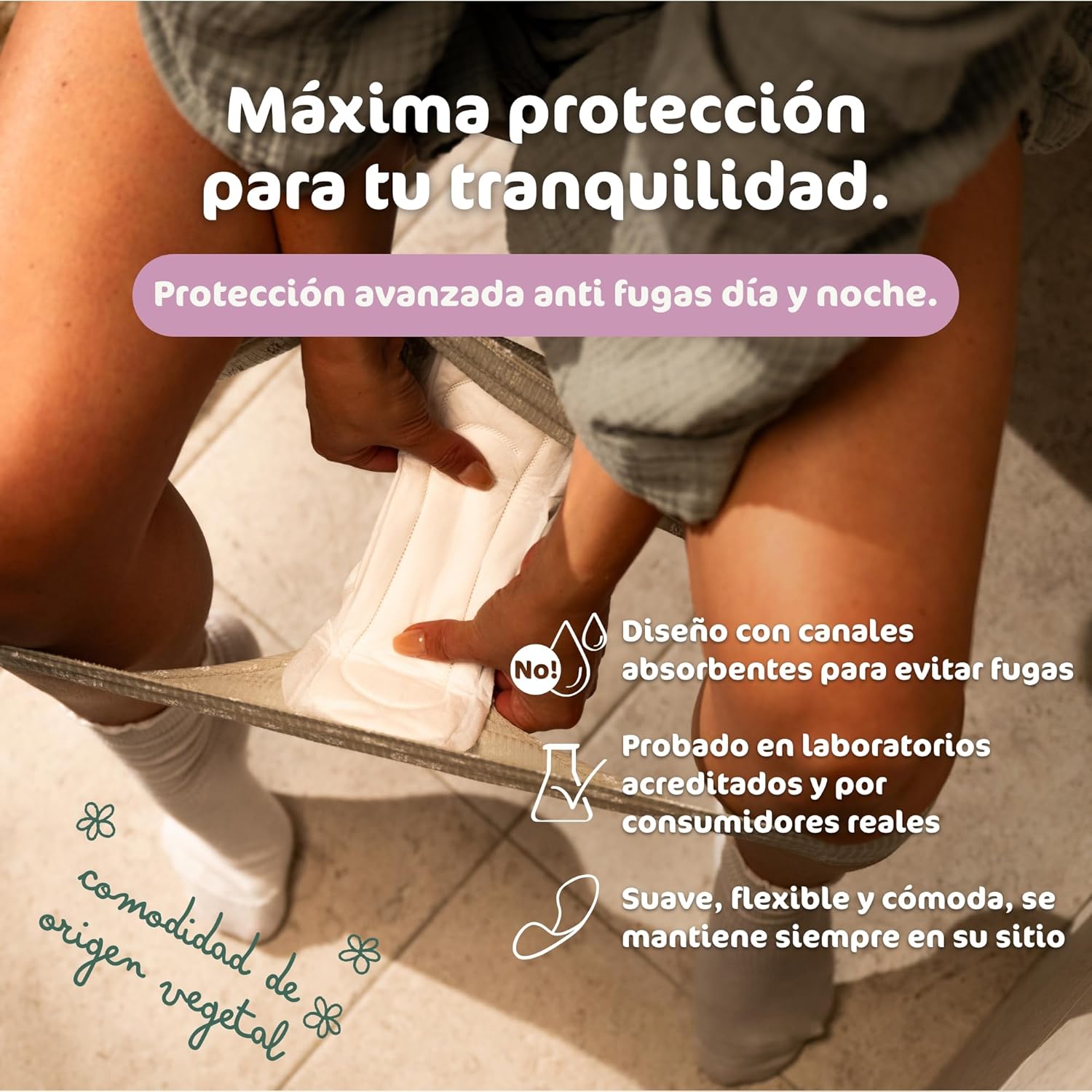 Naty ofrece protección efectiva con materiales de origen vegetal.