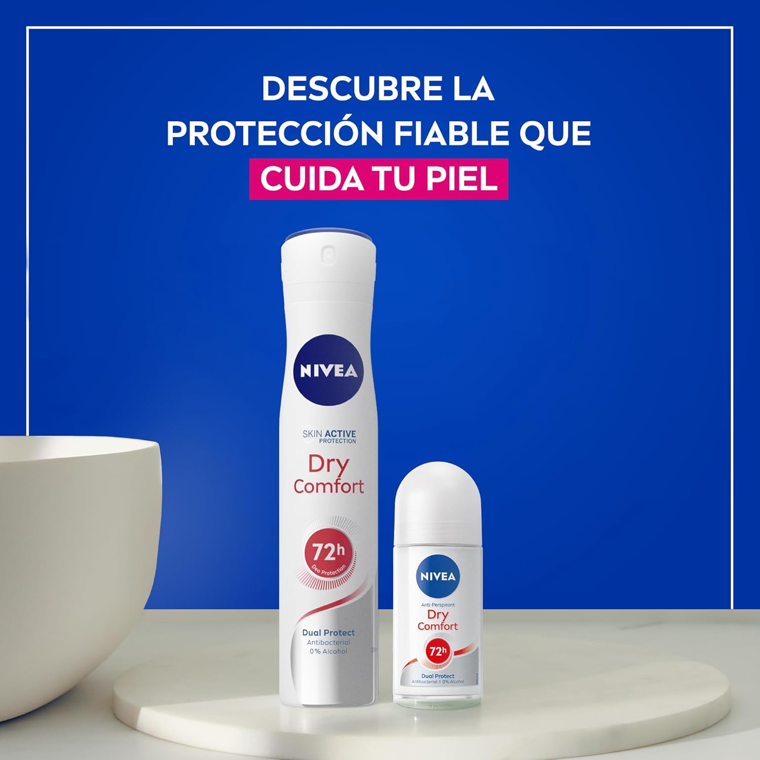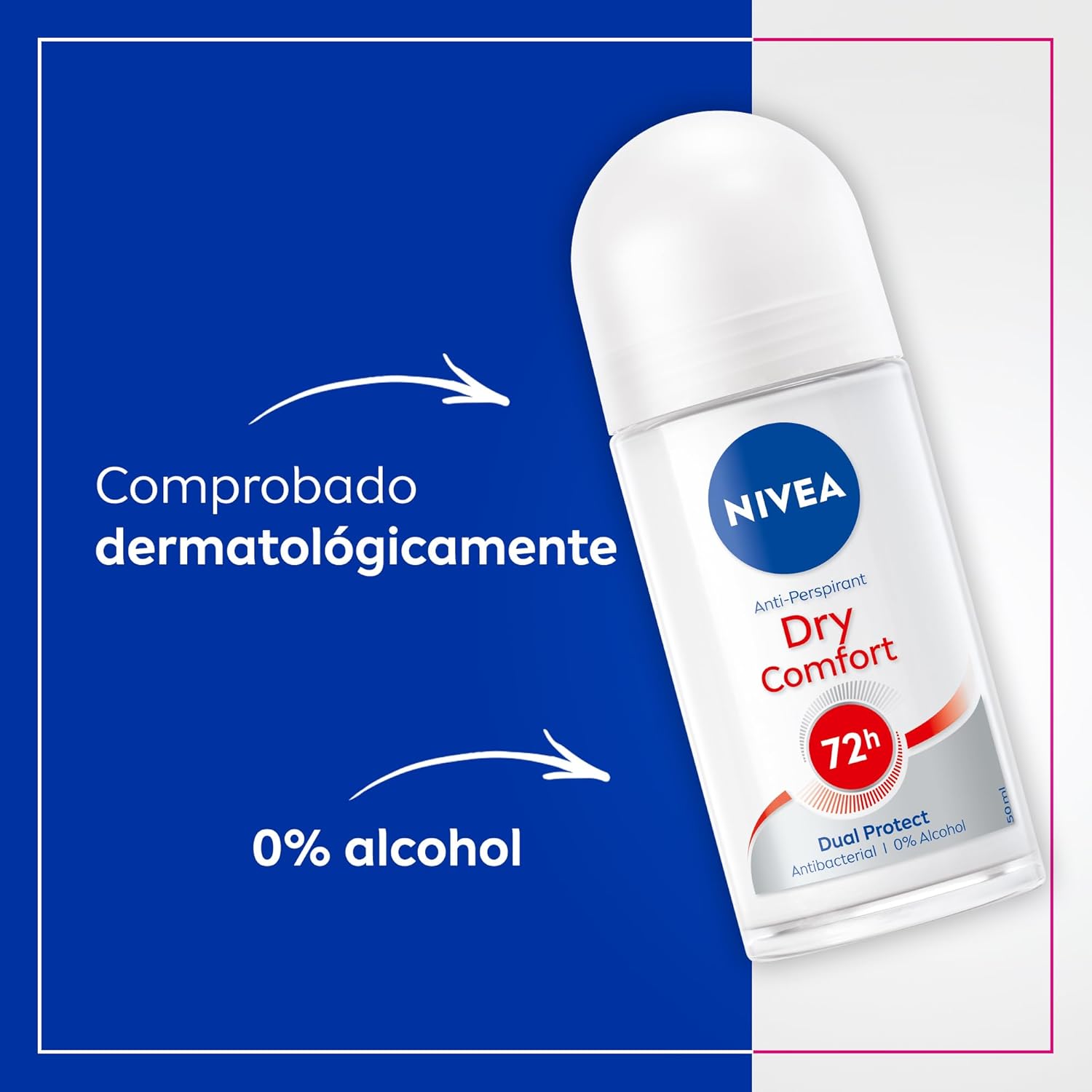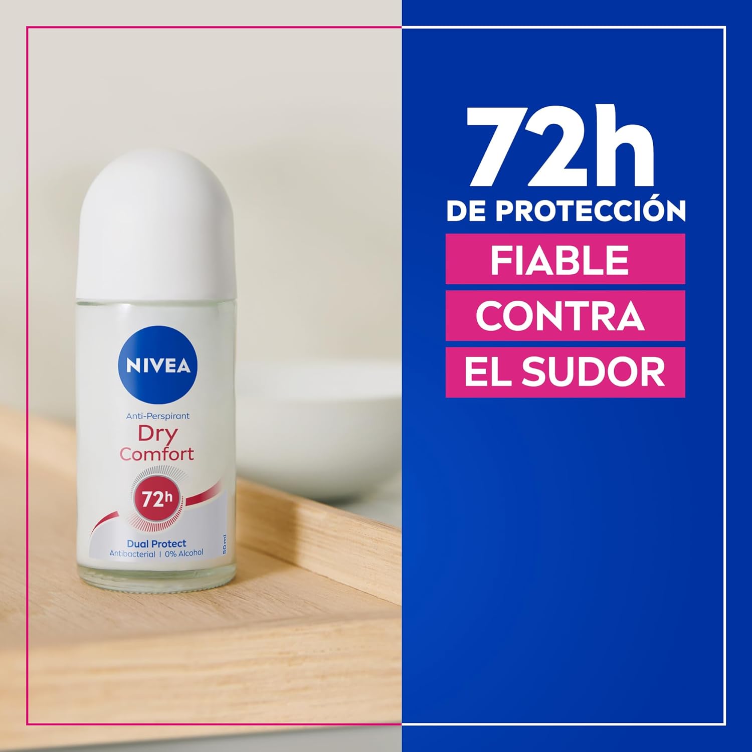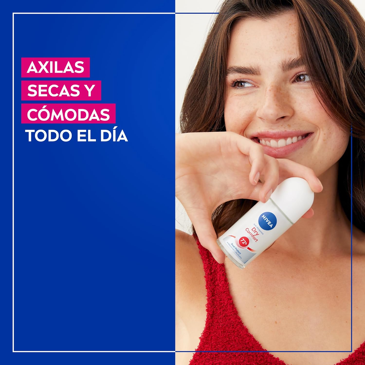NIVEA Dry Comfort Roll-on 6 Pack (6 x 50ml), Antiperspirant Deodorant with 72 Hour Protection, Real Life Tested Feminine Care Roll On Deodorant