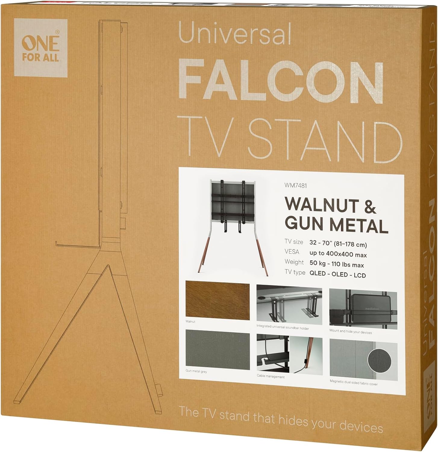 One For All Universal TV Stand – Screens from 32 to 70 Inches – LCD/LED/Plasma/OLED/QLED TVs – VESA 400×400 – Built-in Soundbar Mount – Elegant Design – WM7481